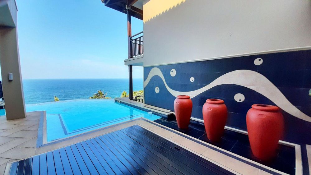 A great investment opportunity to run as a guest house or perfect for the extended family. The house of 725m2 is built on a 1434m2 piece of land, perfectly designed to take advantage of the beautiful sea and surrounding views. Modern and upmarket, featuring an open plan lounge area leading out to a wooden deck with a stunning rim-flow pool overlooking the ocean. The well-designed kitchen has ample cupboard space and has easy access to all the bedrooms.