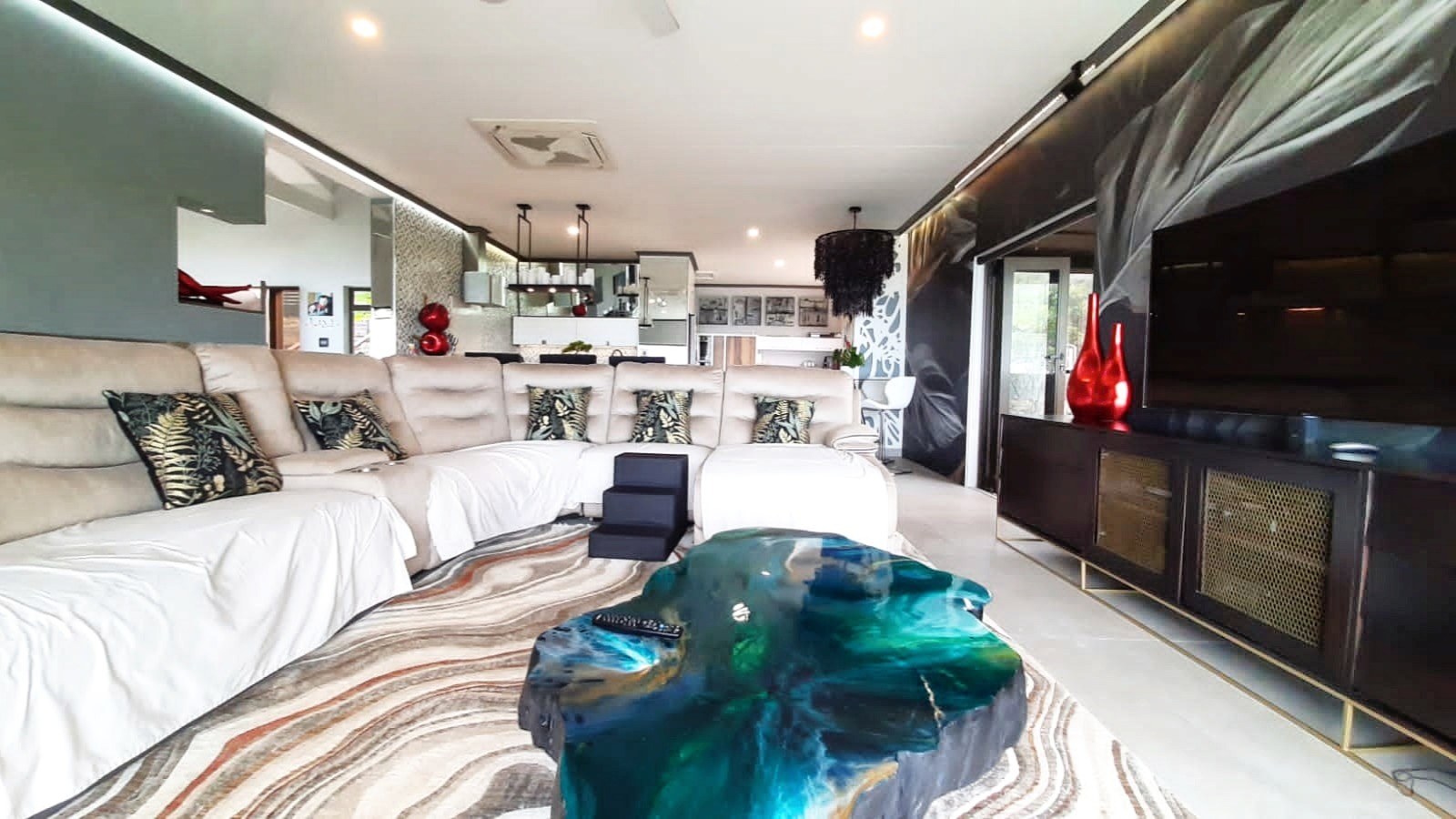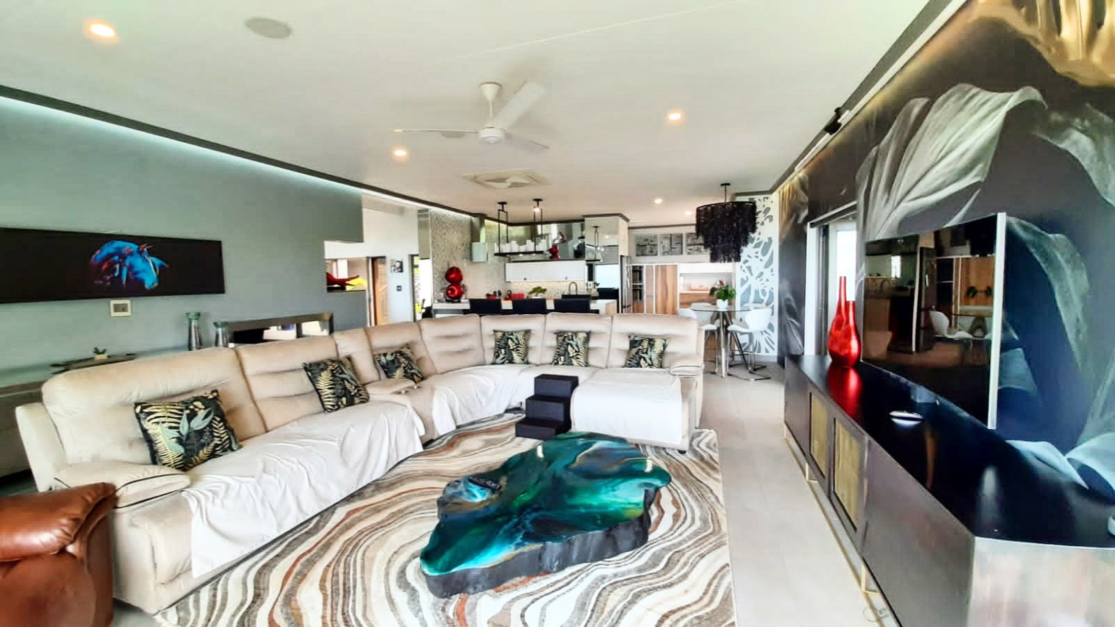 The open-plan living areas seamlessly combine modern sophistication with expansive sea views. The ultra-modern and spacious kitchen flows effortlessly into both formal and informal lounging areas and the dining room. High ceilings and expansive glass windows frame the most spectacular entertainer's balcony, offering a stunning ocean backdrop that changes with the light.