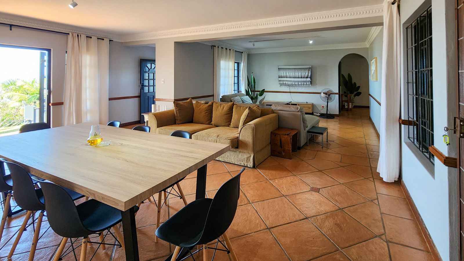 Upstairs, you’ll discover five generous bedrooms and four bathrooms. Three of the bedrooms are en-suite, and most open right onto a balcony with ocean views! One special bedroom even has its entrance and a separate lounge or work area, making it fantastic for guests or as a holiday rental.