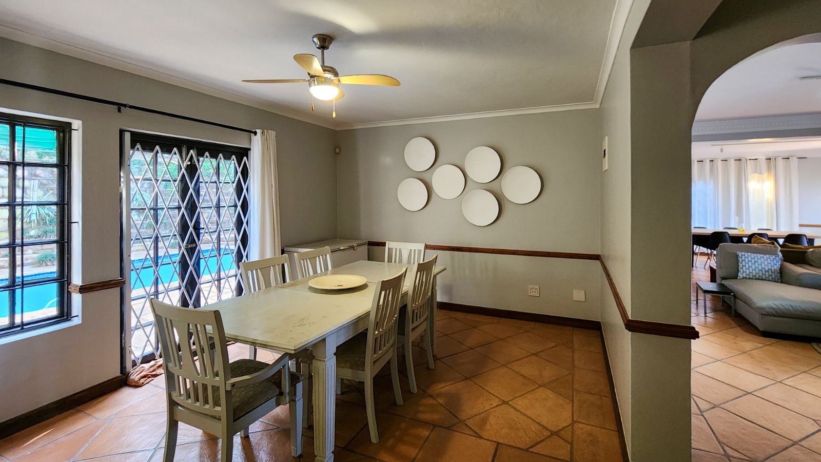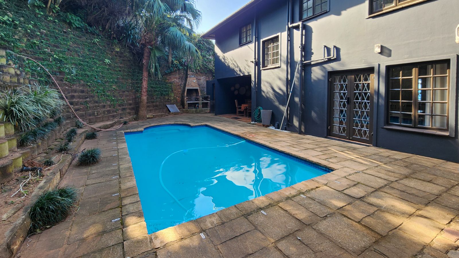 As you step inside, you're greeted by a welcoming open-plan lounge and dining area, perfect for family gatherings or inviting friends over. French doors open to a private back patio, where you’ll find a sparkling blue swimming pool, creating your tranquil oasis to kick back and relax.