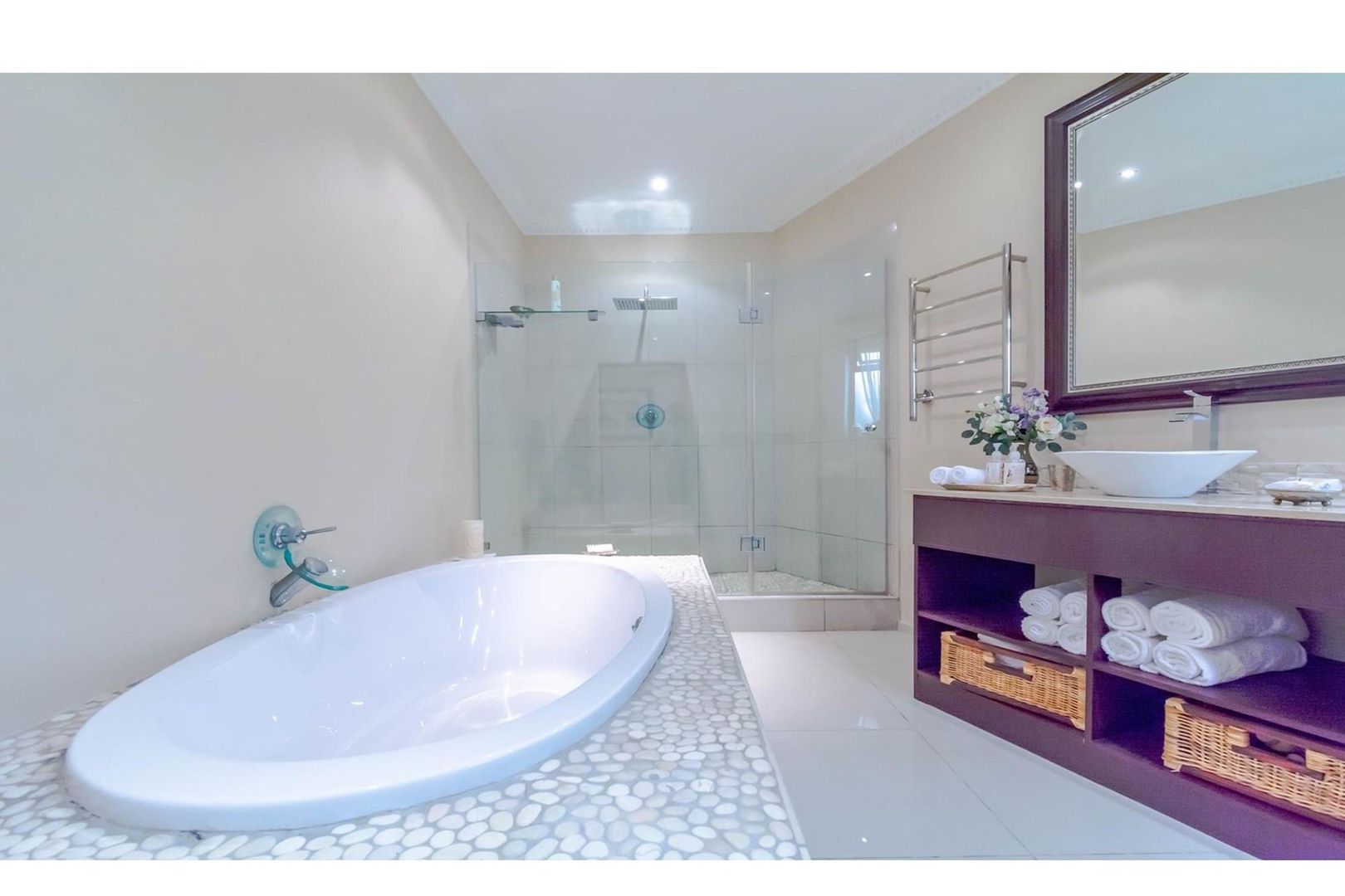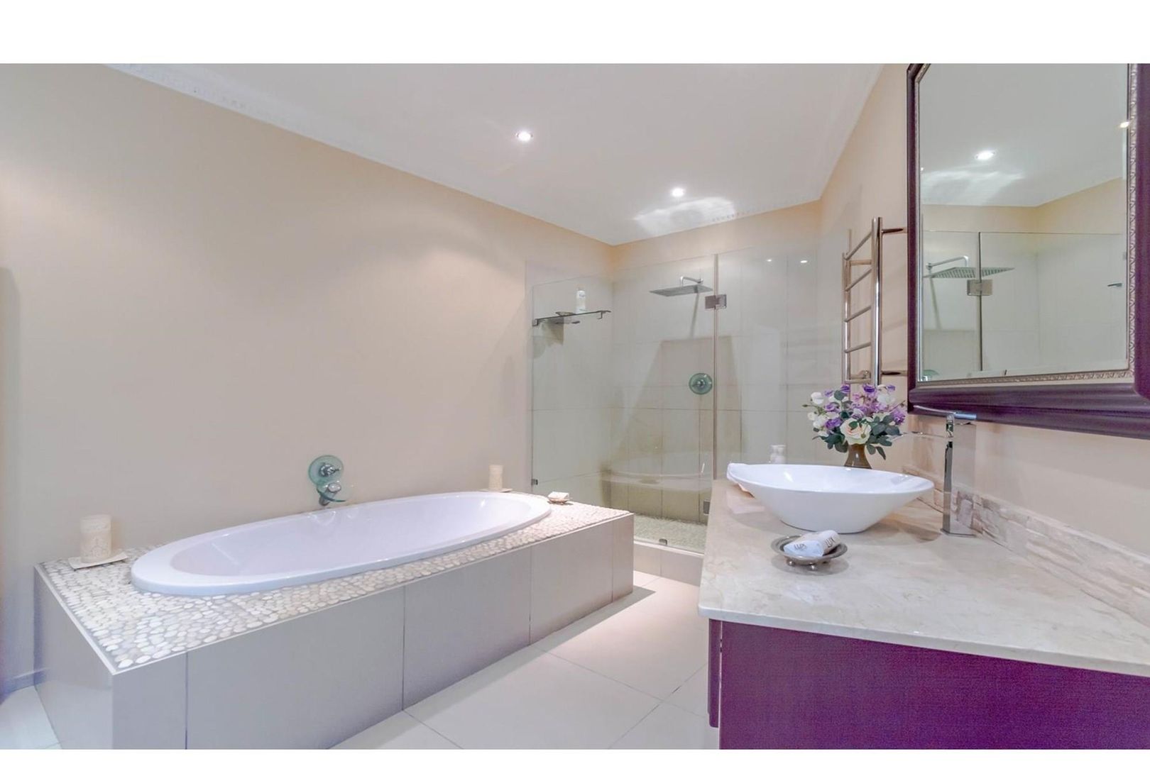 This home is not only stunning, but it also offers you an array of living options to cater for your lifestyle. To the right of the country-style kitchen, you will find a flat that contains a bedroom, bathroom, lounge, and kitchenette, providing a perfect space for a guest or a live-in nanny.