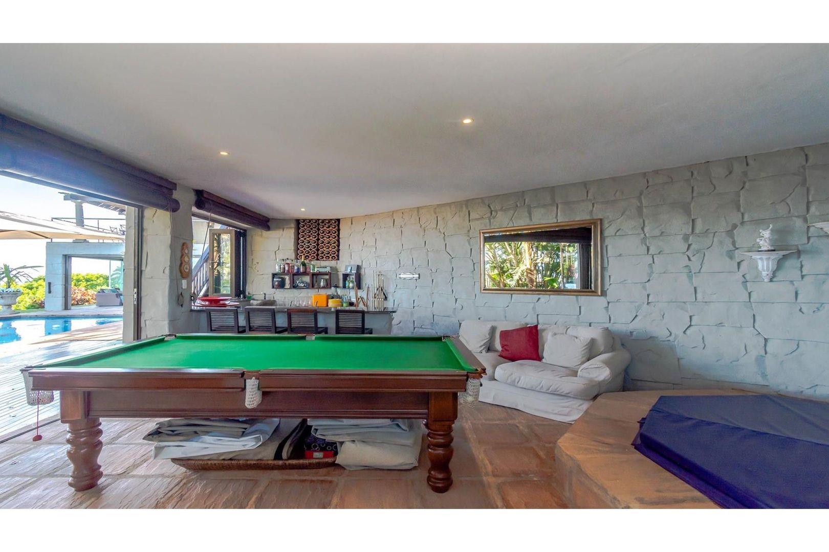 As you explore the lower level, you will find a bedroom, bathroom, and wine tasting room that opens onto a covered veranda, enclosed with seamless glass doors. This veranda leads to the swimming pool deck and a huge timber deck, providing panoramic views of the breaker sea views. Additionally, the entertainment room features a pool table, jacuzzi, and a bar, making it the perfect spot for hosting memorable events with your friends and family.