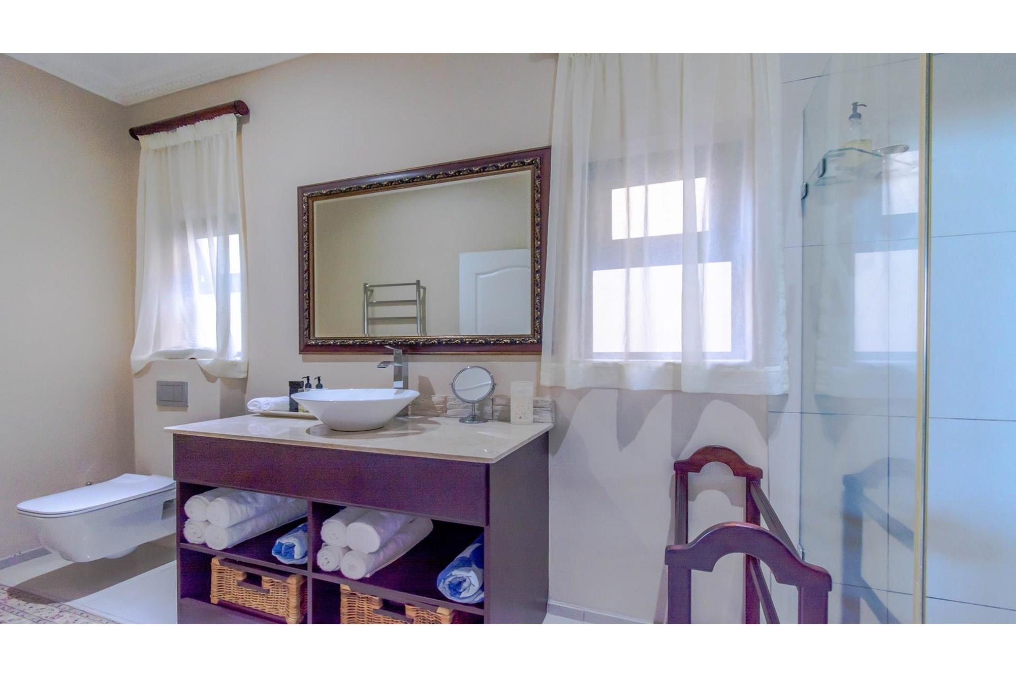 Moving on from the entrance hall, you enter a formal lounge, dining room, and country-style fully equipped kitchen that are perfect for hosting memorable dinners and intimate gatherings with your loved ones. The kitchen features top-of-the-line appliances, ample counter space, and ample storage for all your cooking needs.