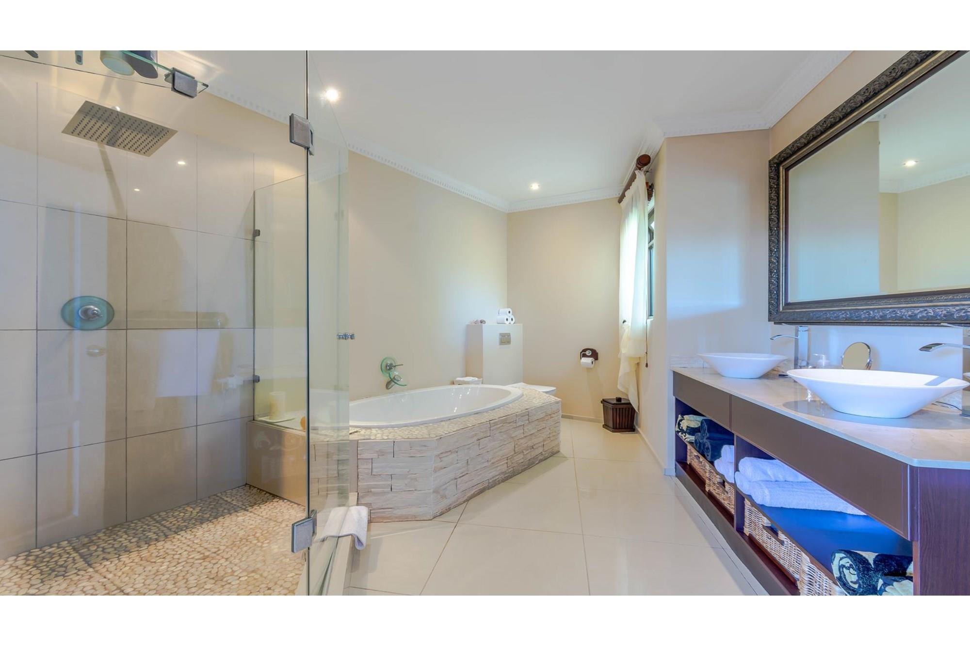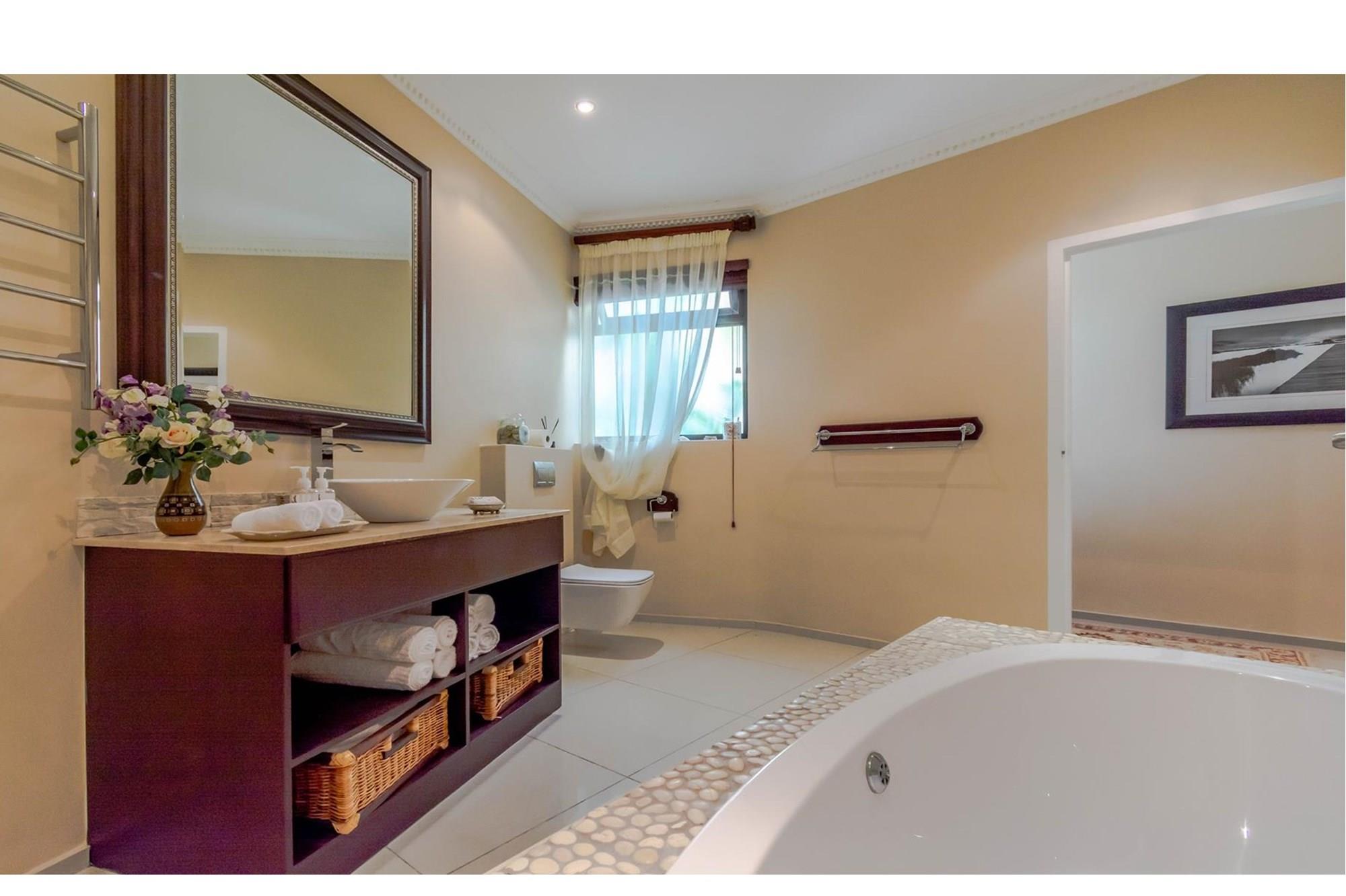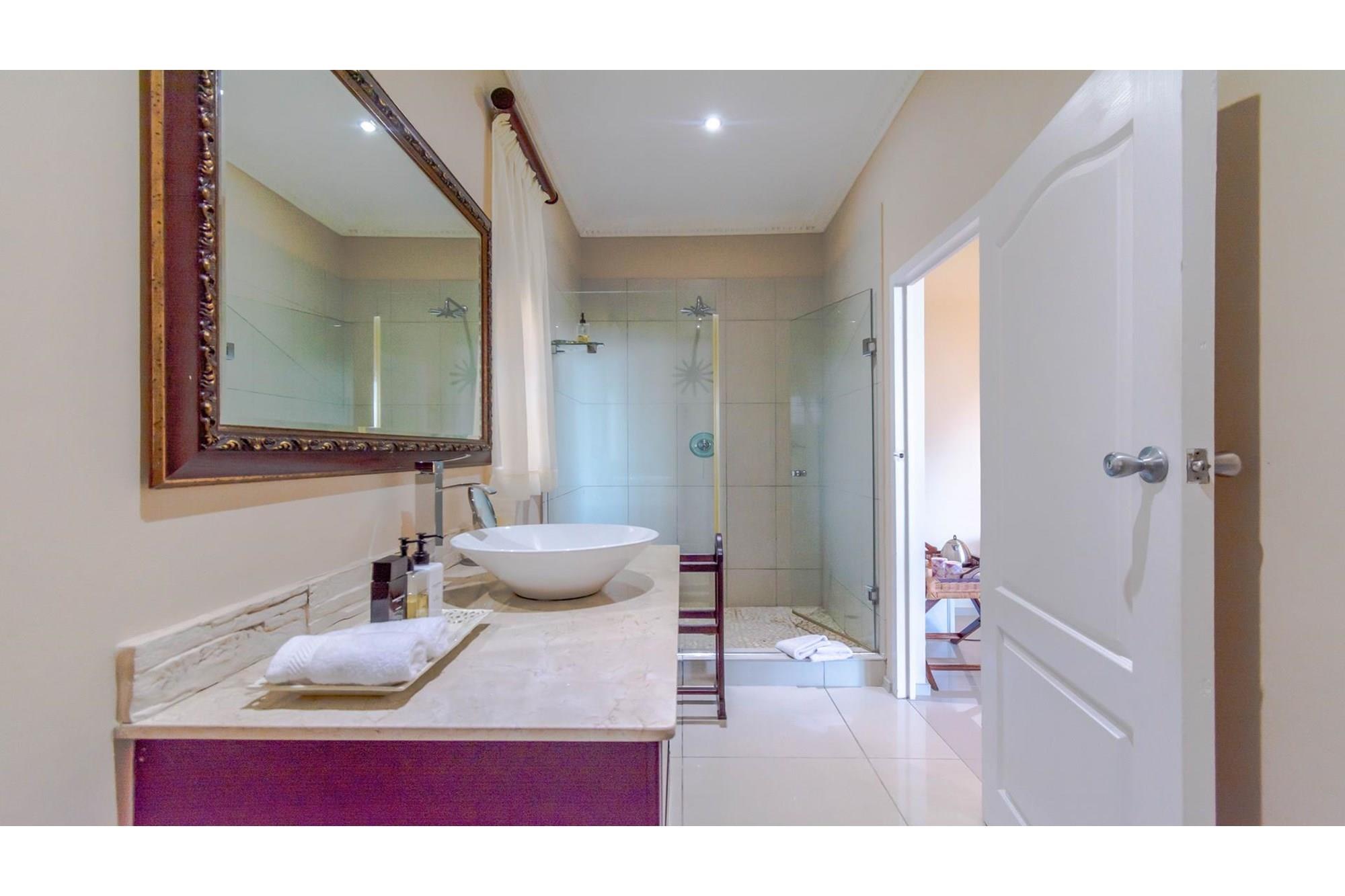This home is not only stunning, but it also offers you an array of living options to cater for your lifestyle. To the right of the country-style kitchen, you will find a flat that contains a bedroom, bathroom, lounge, and kitchenette, providing a perfect space for a guest or a live-in nanny.