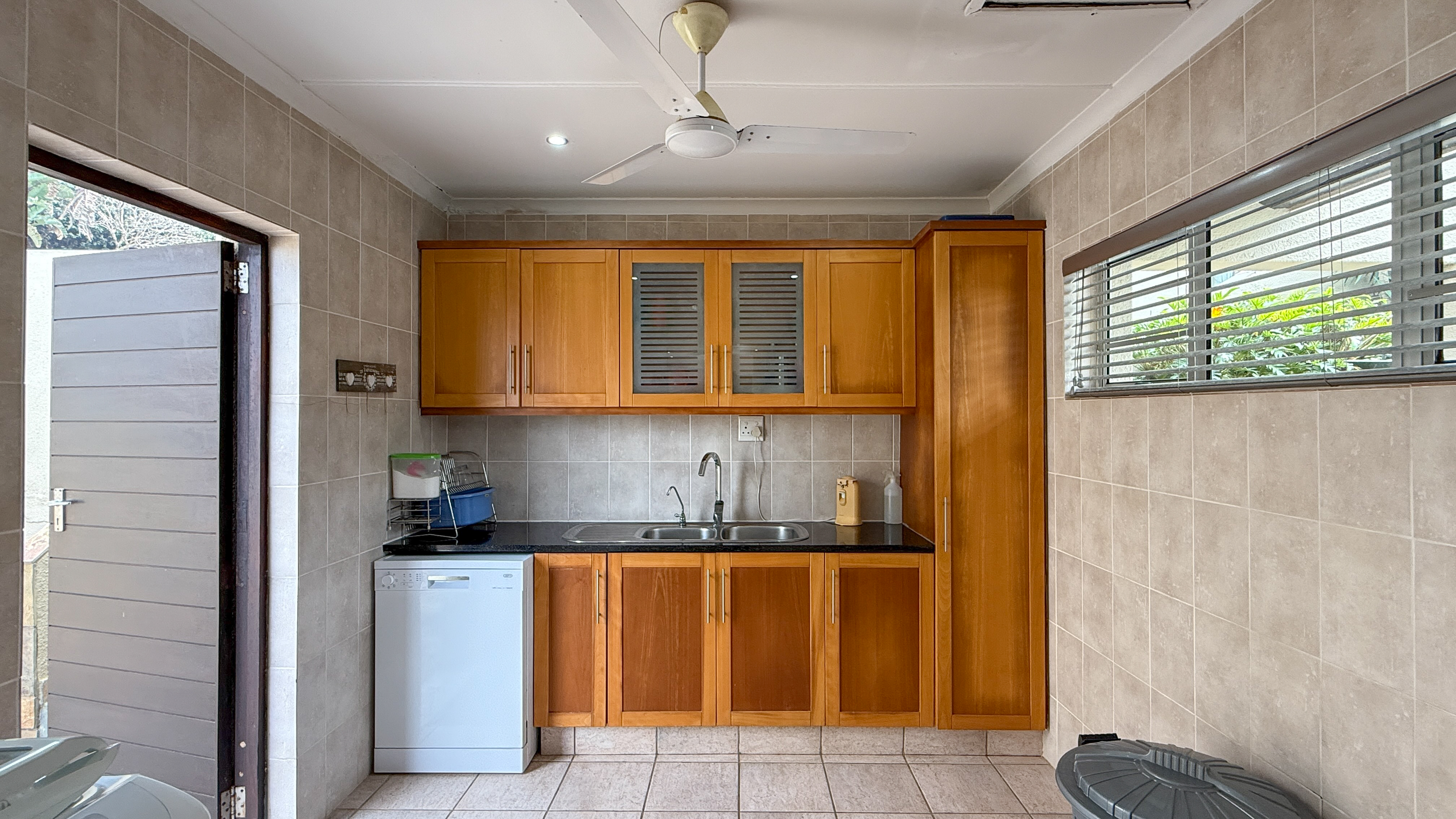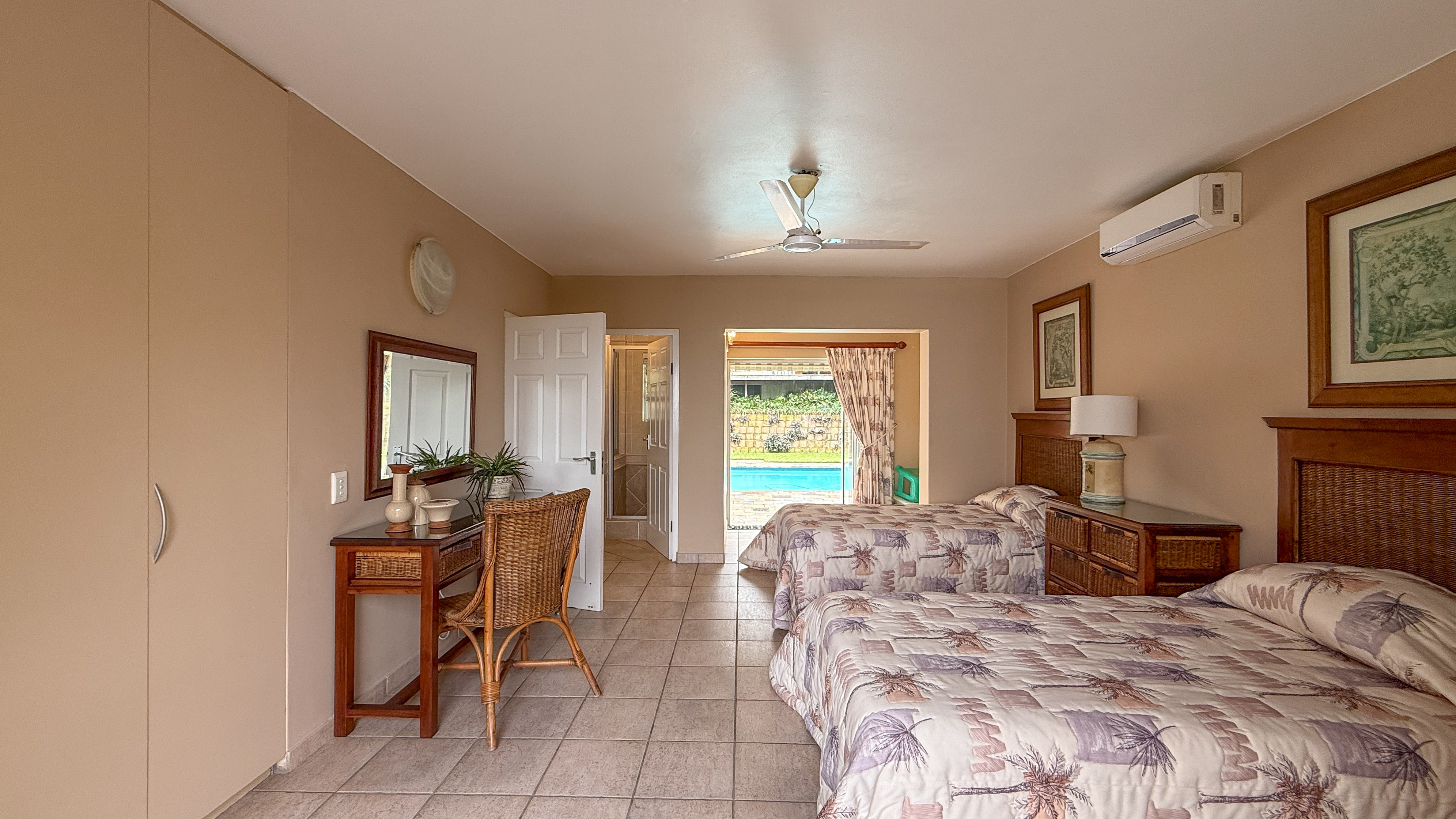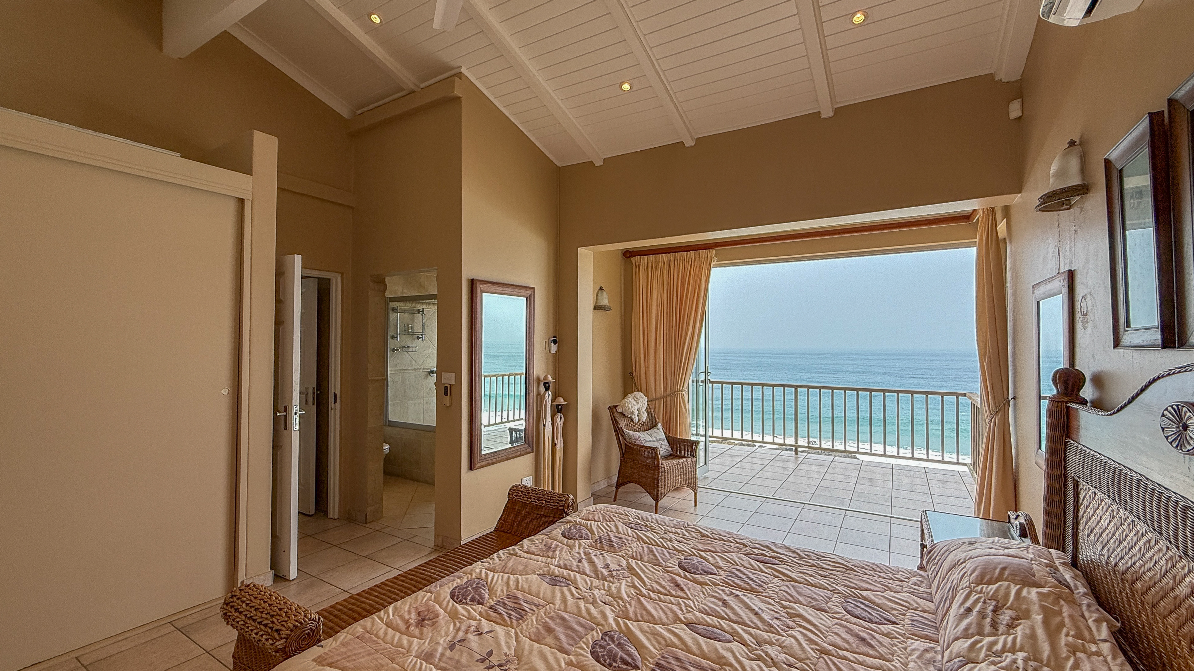 Adding to the appeal is a separate one-bedroom flatlet, ideal for guests, extended family, or as an income-generating rental opportunity. A double garage provides secure parking, while the landscaped garden leads directly to the beach, allowing you to dip your toes in the sand whenever you please. As a unique feature, the property even includes a small natural waterfall, enhancing its serene and tranquil atmosphere.