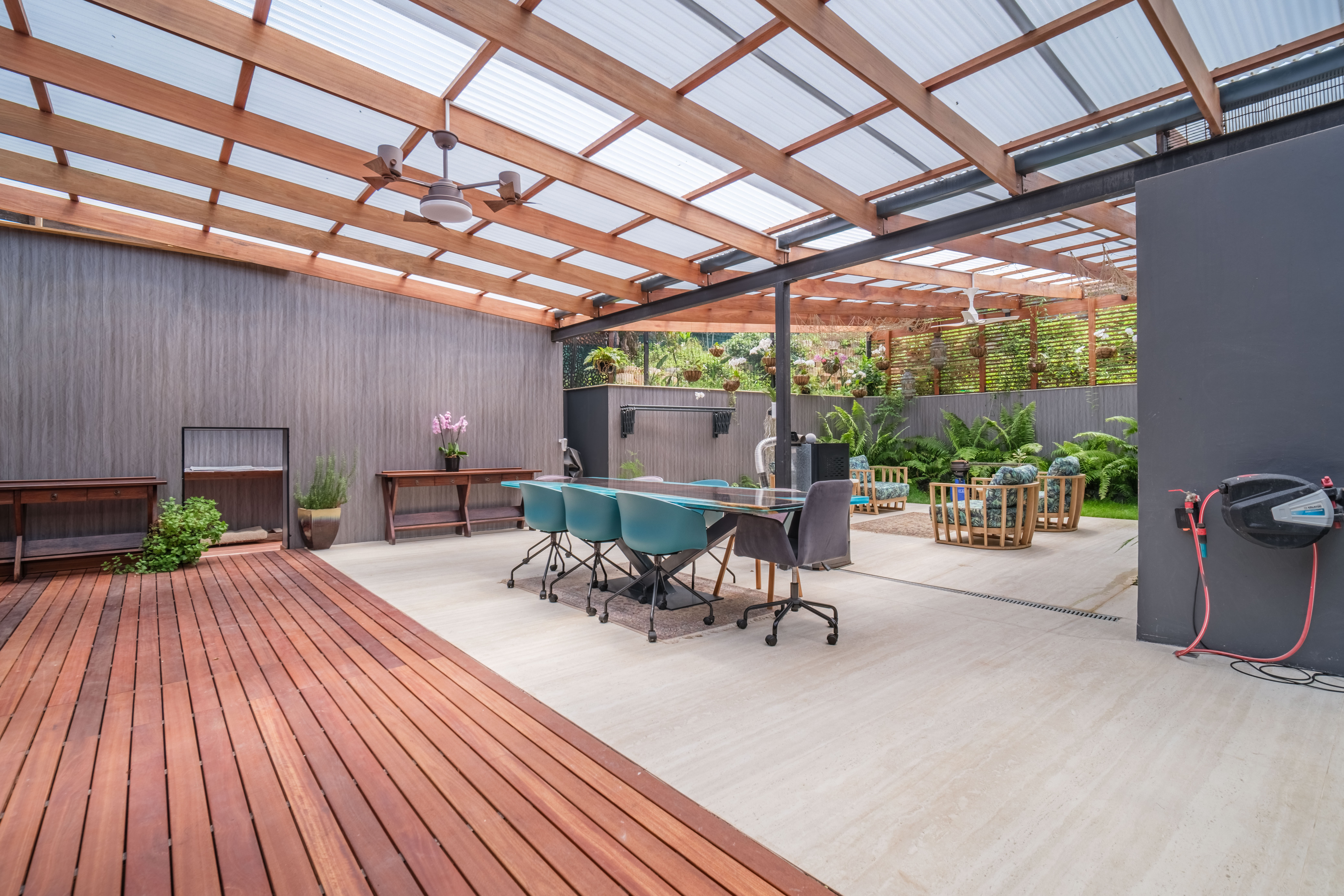 The main residence exudes sophistication and comfort, with elegant finishes throughout. Designed to capture the sea breeze and natural light, it seamlessly blends indoor and outdoor living for the ultimate beachside lifestyle. This versatile coastal home is cleverly designed across three levels, offering a flexible layout ideal for extended family living or dual accommodation options. The middle section features 2 beautifully appointed en-suite bedrooms each with its own lounge perfect for guest or family members seeking a sense of independence. This level can be separated from the upper section of the home creating a self contained space if desired. The lower level presents a stylish large one bedroom unit complete with a modern kitchen, open plan lounge and en-suite bedroom, flowing seamlessly out to a private garden, deck and entertainment area creating a tranquil setting to relax or entertain while watching the waves smashing onto the rocks and beach. These two levels have their own entrances and are currently being utilized as an Airbnb as a fabulous income generator. The remainder of the garden presents an exceptional opportunity to add an infinity swimming pool, large deck for entertaining, and a private cottage creating a true coastal retreat or a further income generating haven or granny cottage for parents.