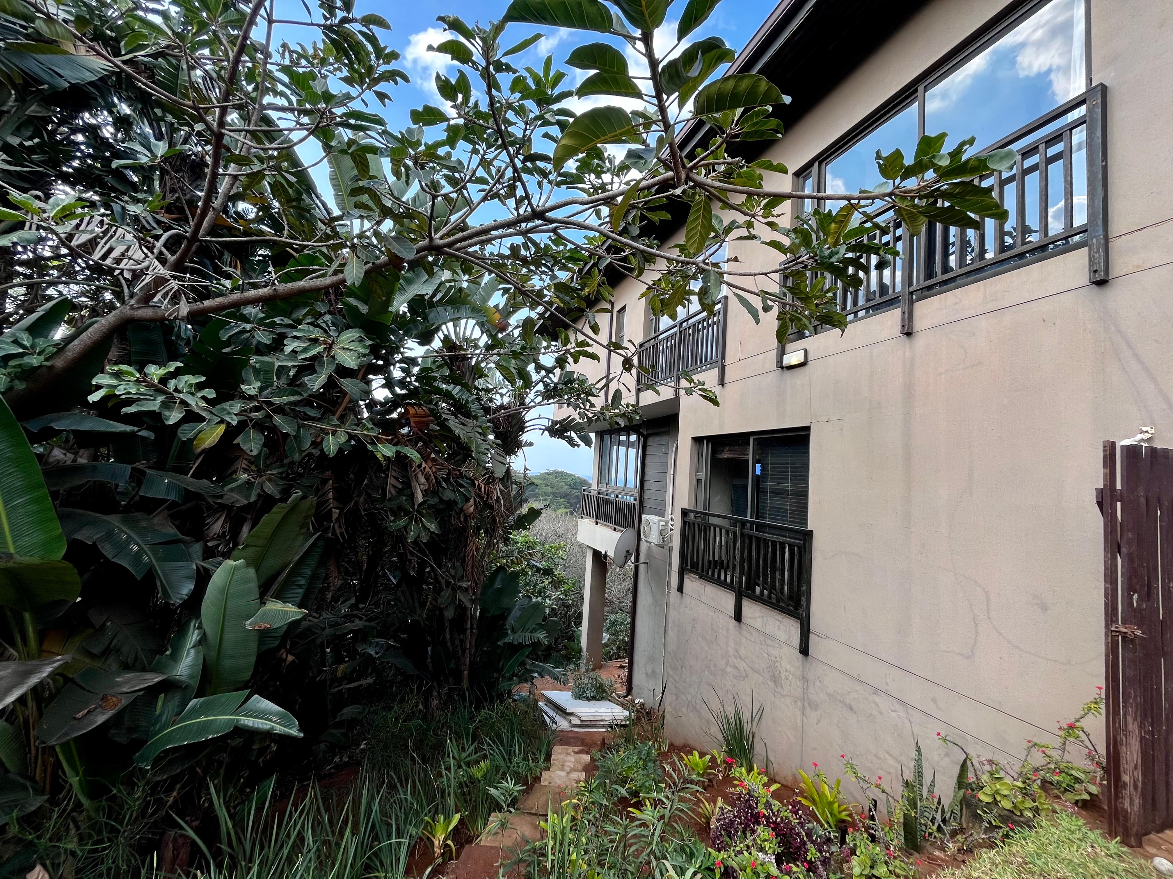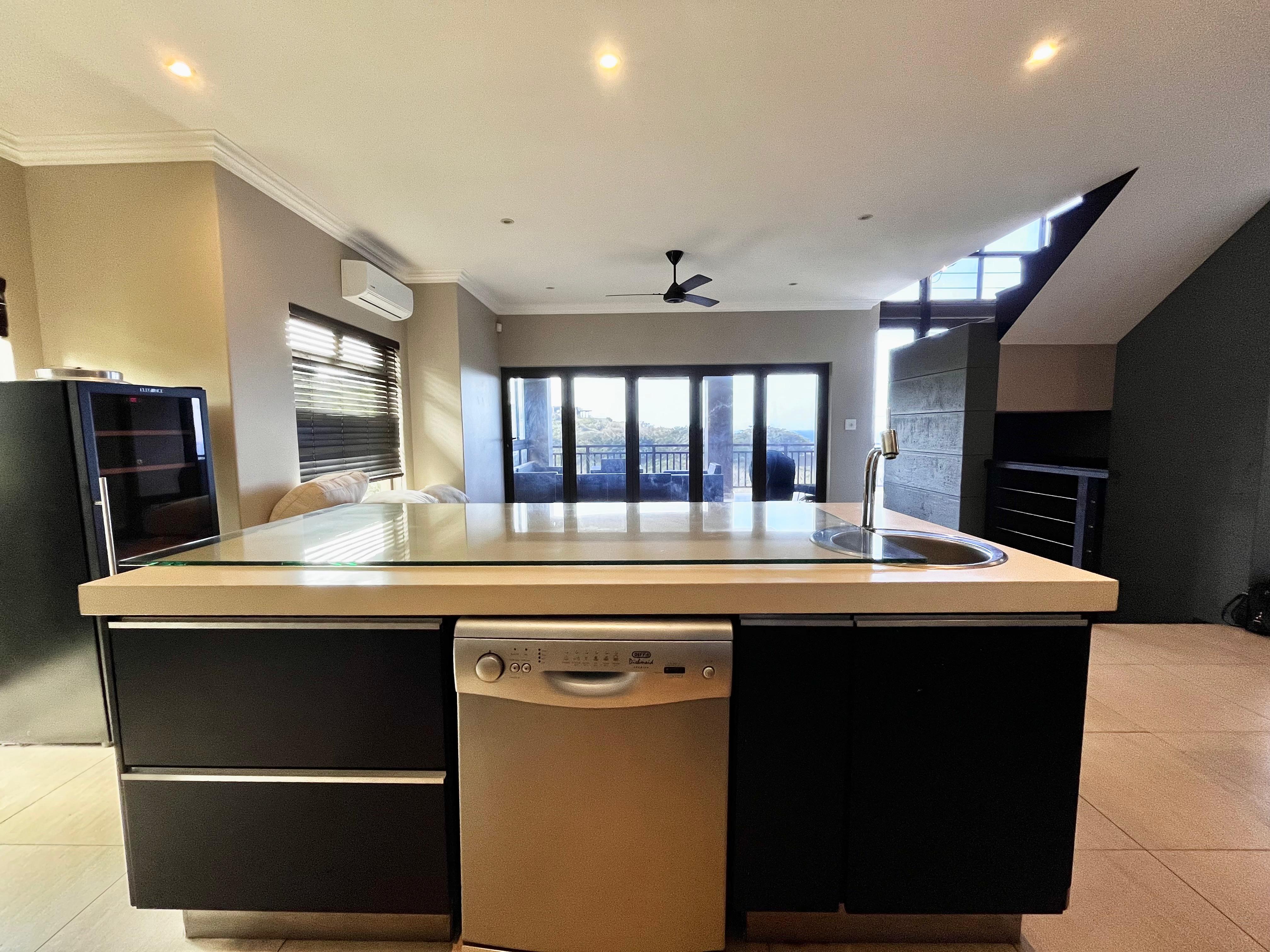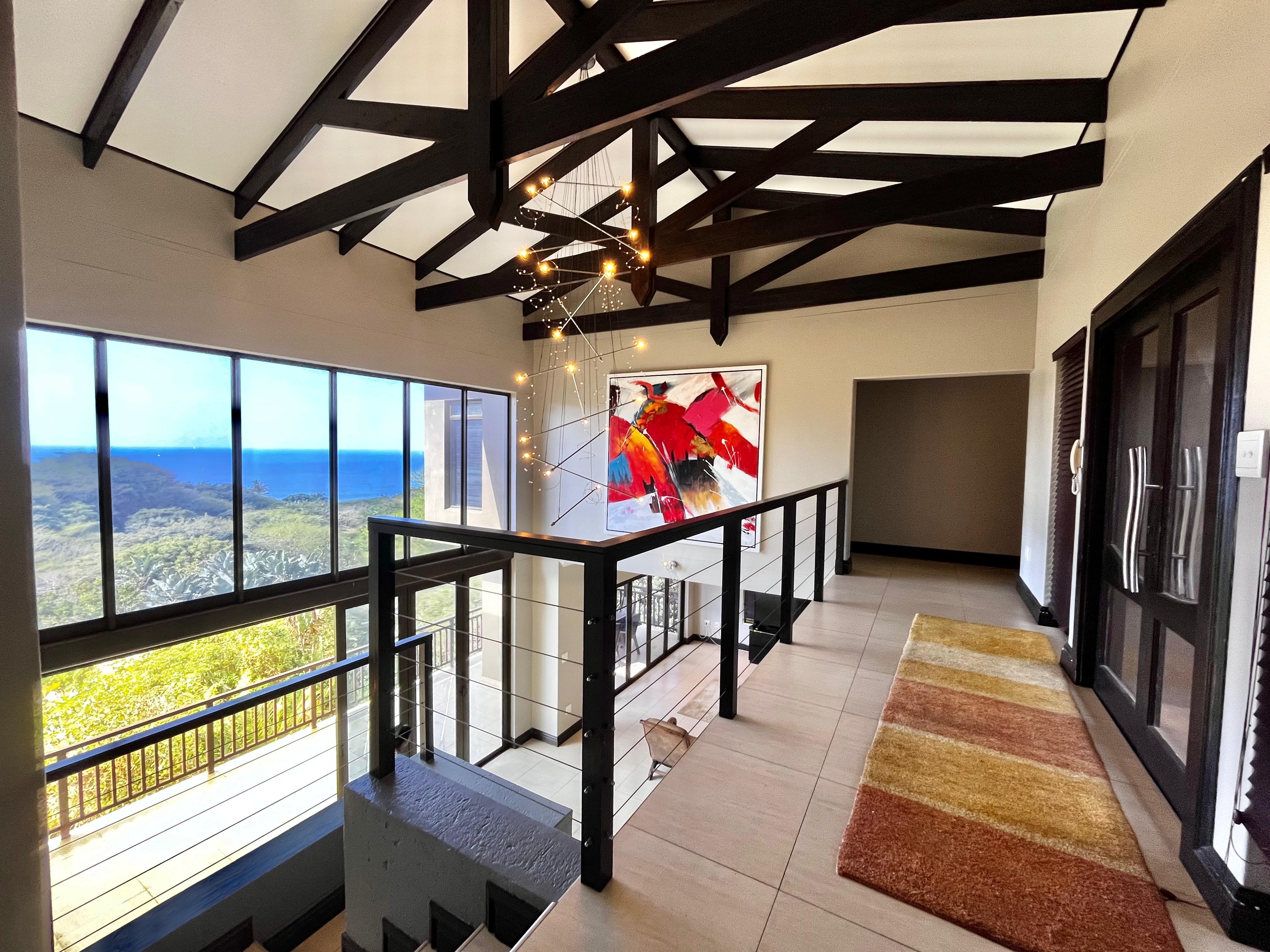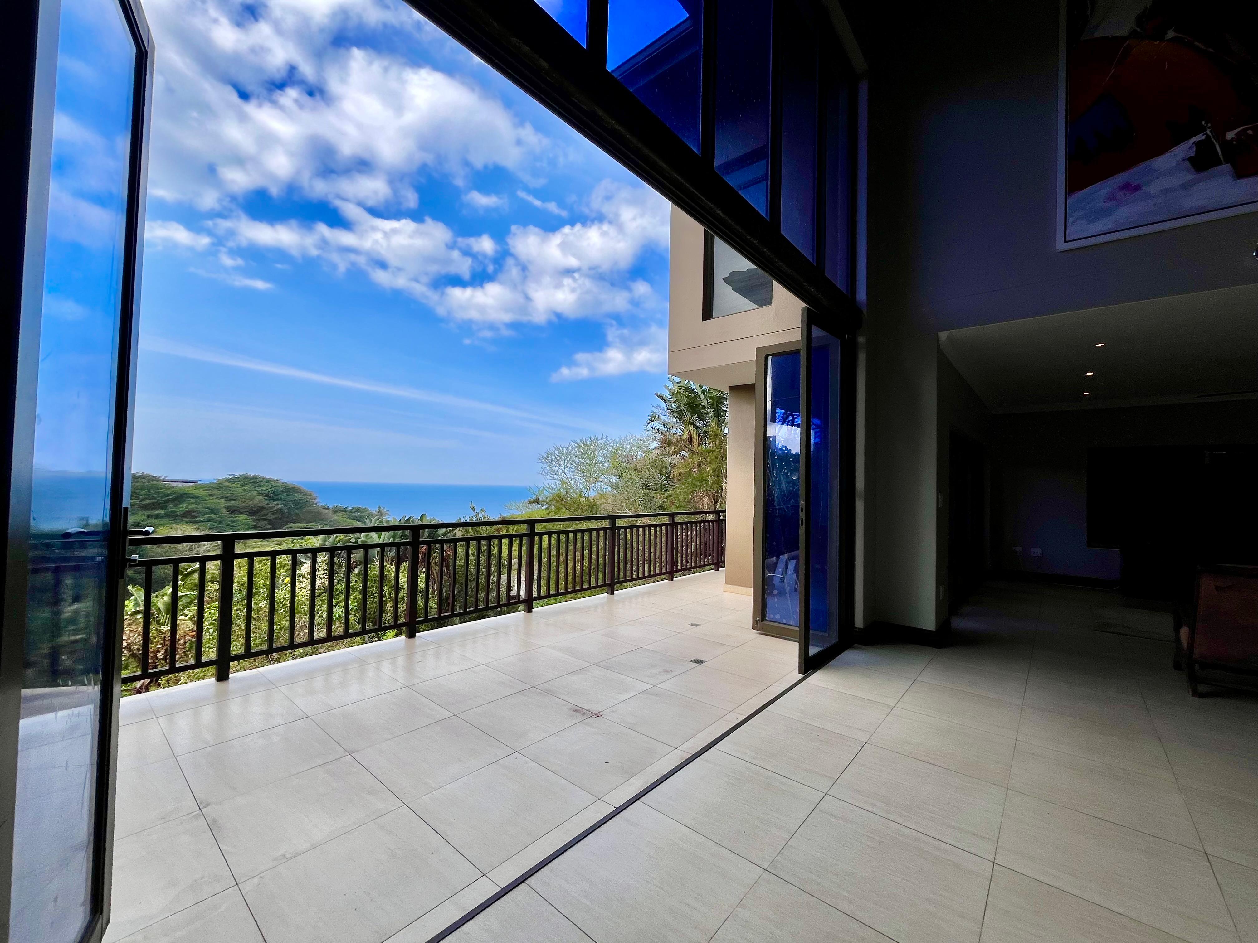 Escape to Coastal Serenity in This Stunning Sheffield Beach Home This expansive 4-bedroom haven in a prestigious Sheffield Beach estate offers breathtaking sea views and a luxurious lifestyle. Picture waking up to the azure ocean stretching before you from most rooms in the house. Upstairs, each bedroom boasts built-in cupboards, with two featuring open-plan en-suite bathrooms. Downstairs, an open-plan living space seamlessly blends lounge, dining, and kitchen areas, with a separate scullery for added convenience. A dedicated cinema/bar area below the living space provides a dedicated entertainment hub for family and friends. Step out onto the spacious covered balcony and be mesmerized by the panoramic views. A small swimming pool and lush greenery ensure privacy and tranquility. A double garage and ample parking space complete the picture. Enjoy peace of mind with 24-hour security and the convenience of being within walking distance to the beach. This is more than a home, it's a lifestyle.
