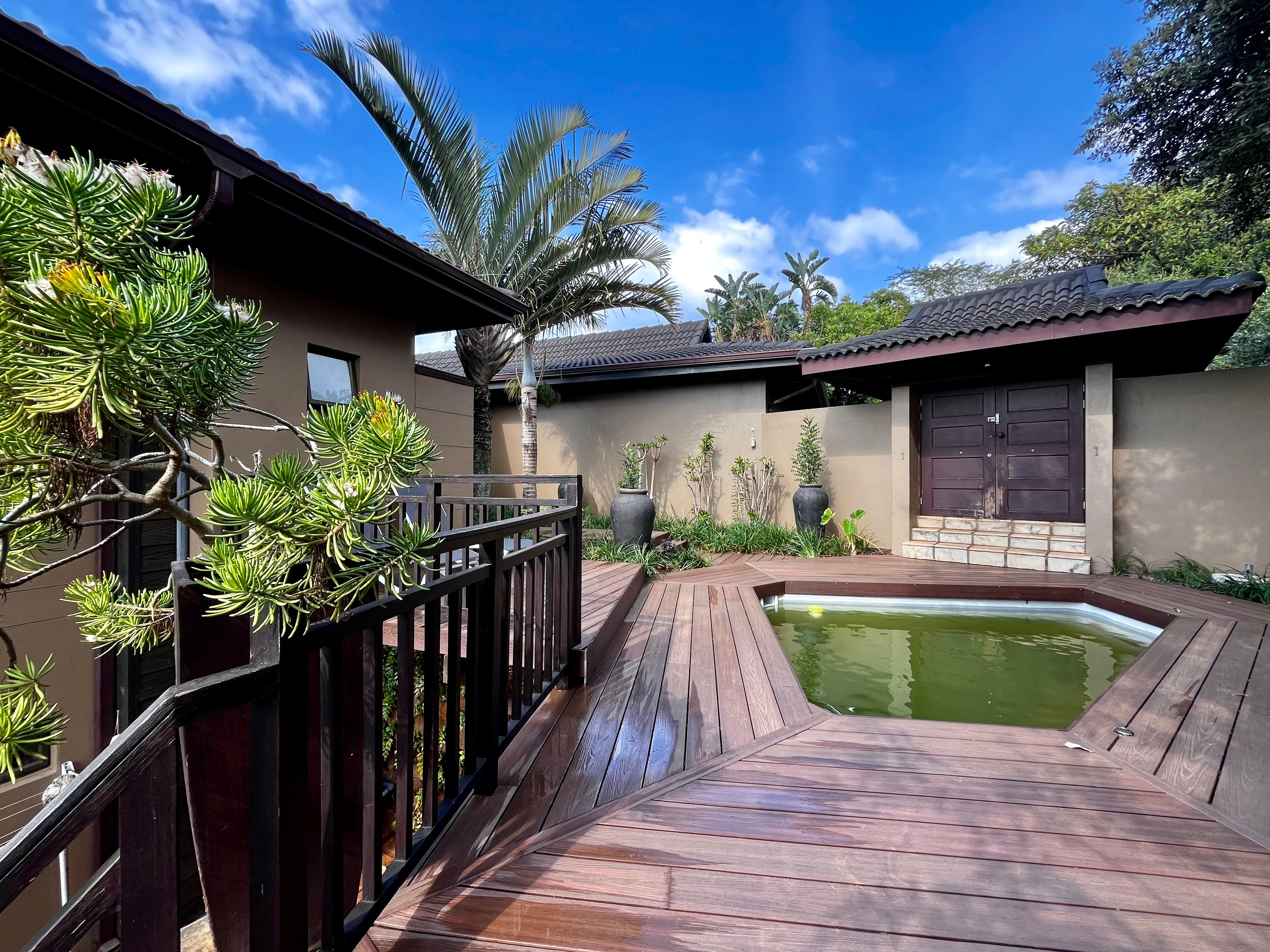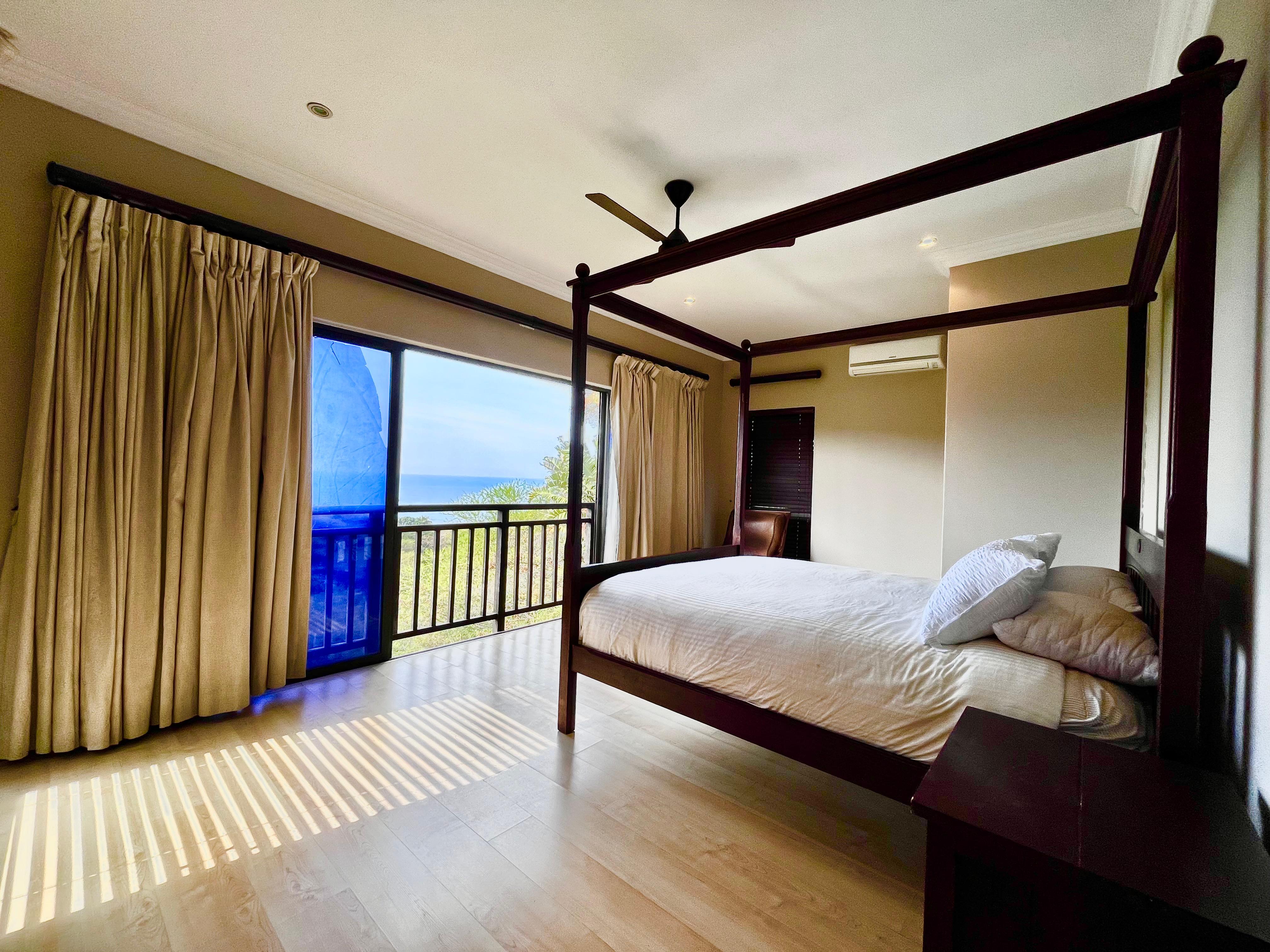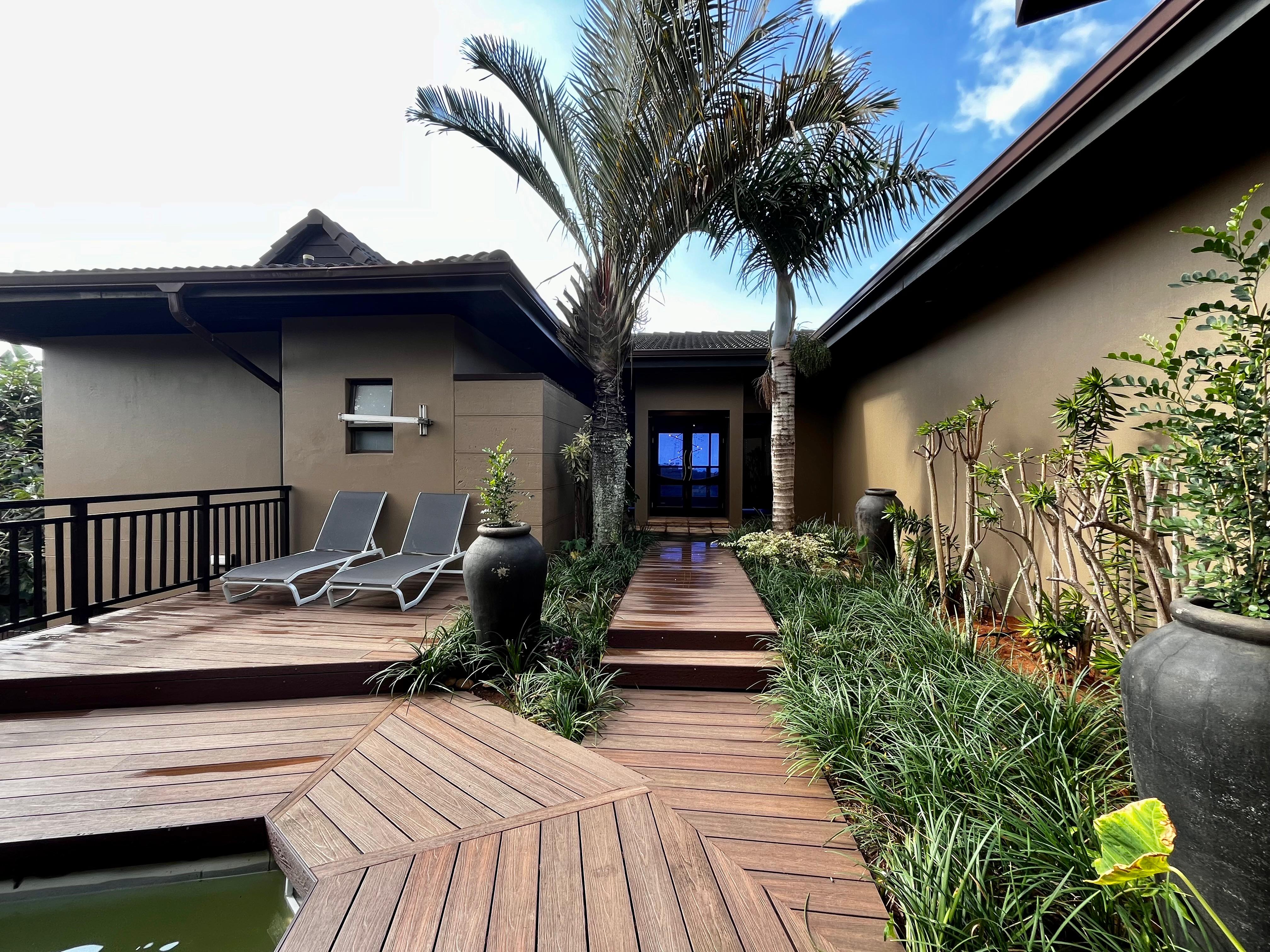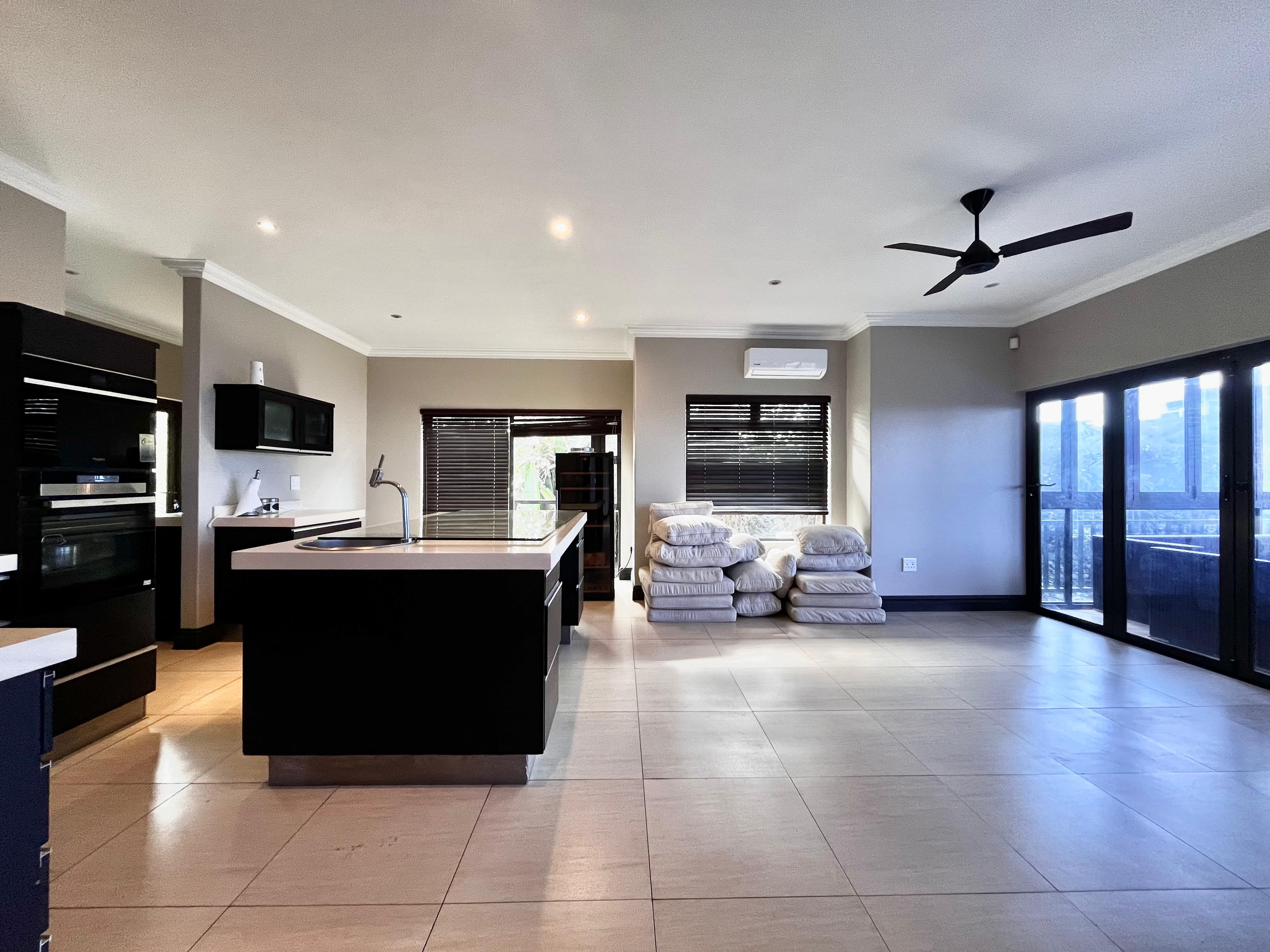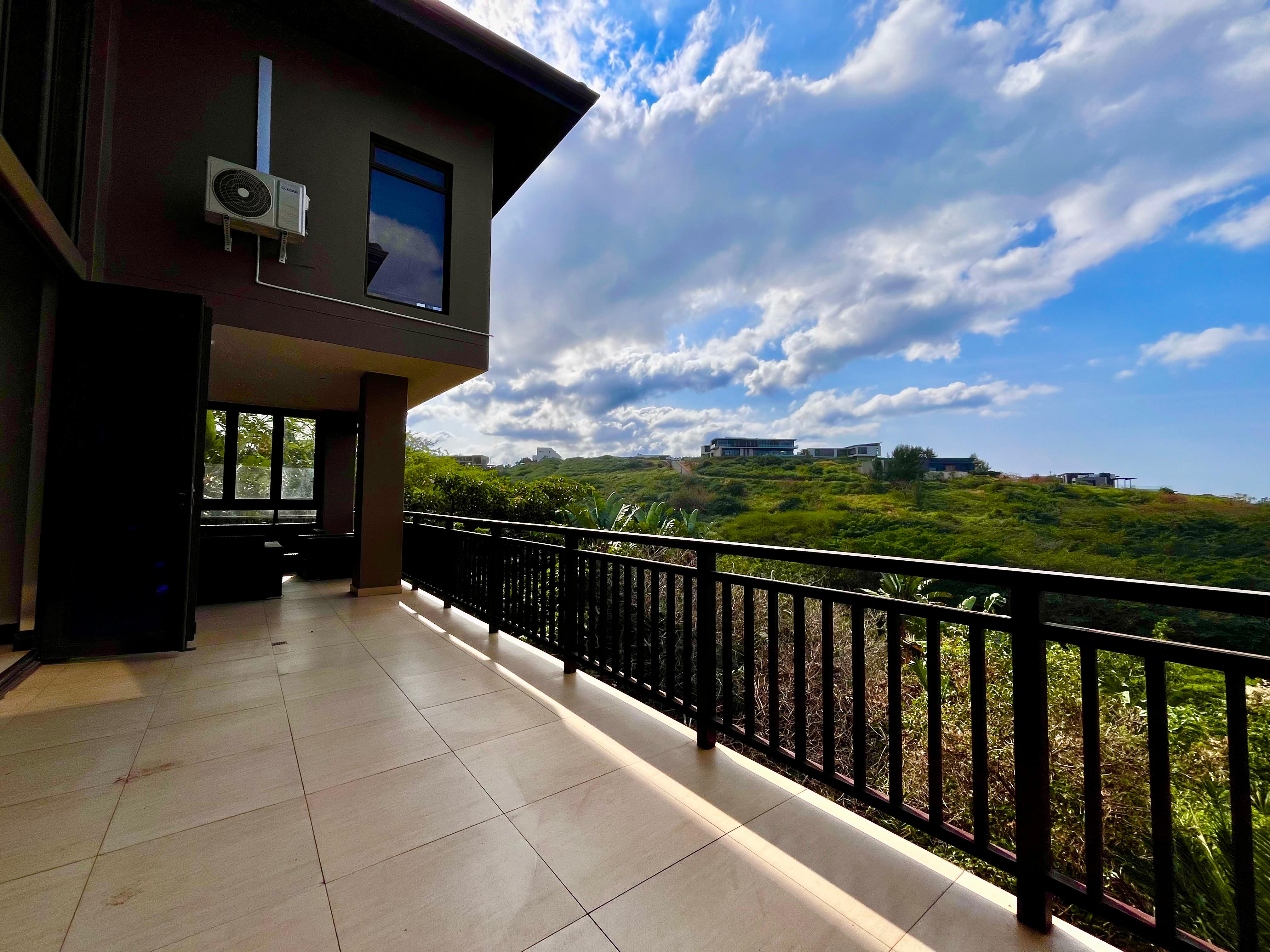 Escape to Coastal Serenity in This Stunning Sheffield Beach Home This expansive 4-bedroom haven in a prestigious Sheffield Beach estate offers breathtaking sea views and a luxurious lifestyle. Picture waking up to the azure ocean stretching before you from most rooms in the house. Upstairs, each bedroom boasts built-in cupboards, with two featuring open-plan en-suite bathrooms. Downstairs, an open-plan living space seamlessly blends lounge, dining, and kitchen areas, with a separate scullery for added convenience. A dedicated cinema/bar area below the living space provides a dedicated entertainment hub for family and friends. Step out onto the spacious covered balcony and be mesmerized by the panoramic views. A small swimming pool and lush greenery ensure privacy and tranquility. A double garage and ample parking space complete the picture. Enjoy peace of mind with 24-hour security and the convenience of being within walking distance to the beach. This is more than a home, it's a lifestyle.
