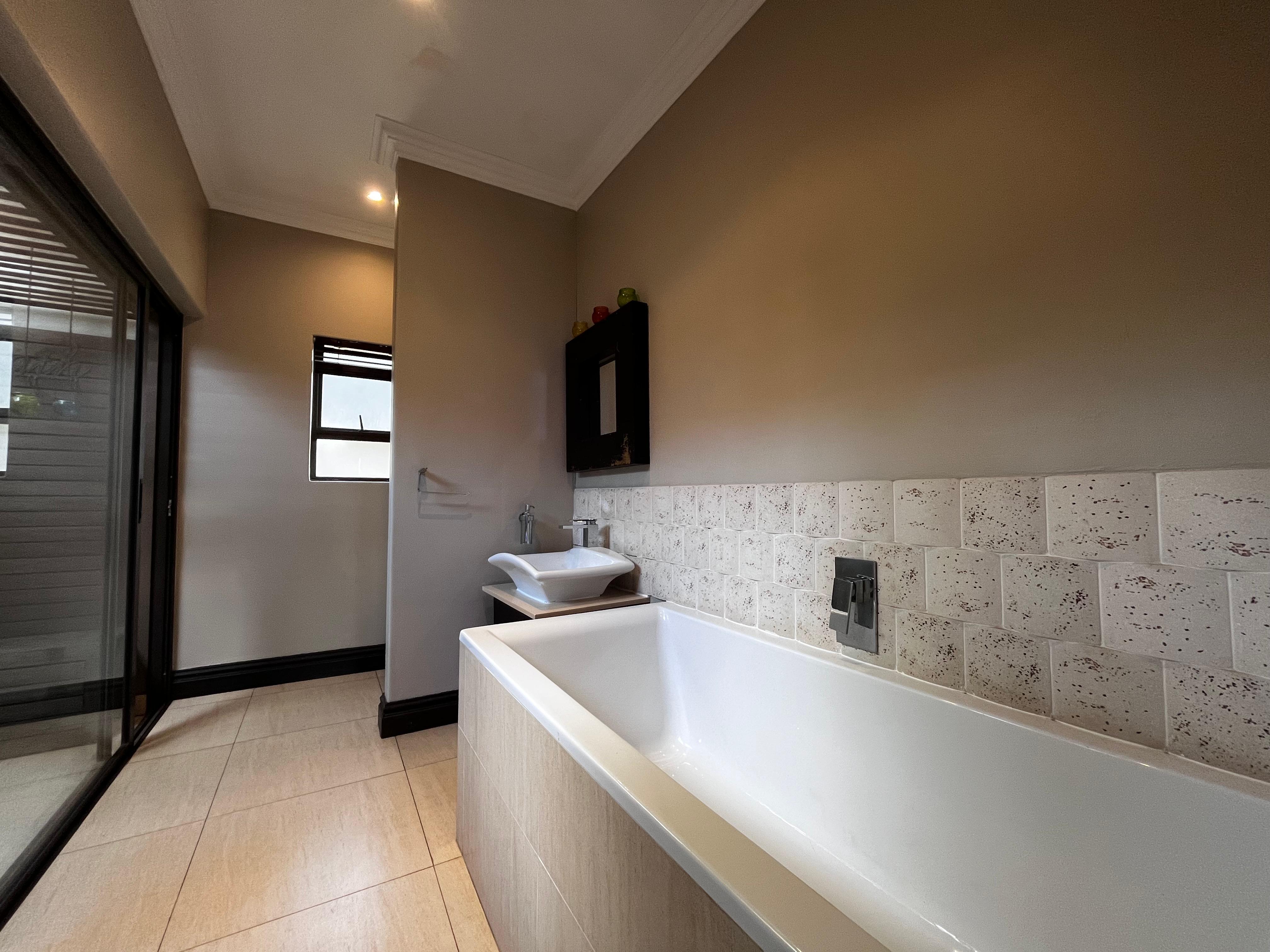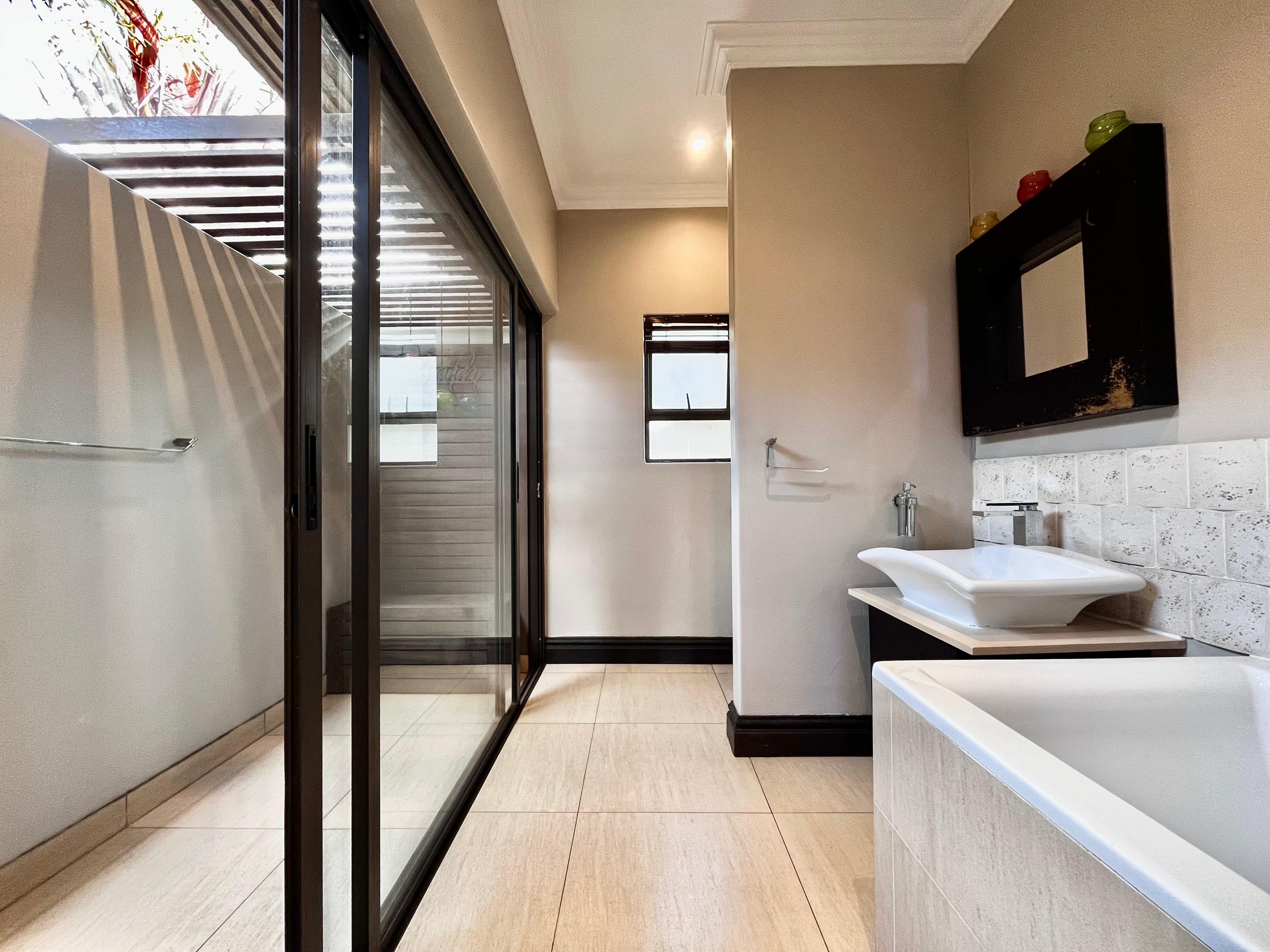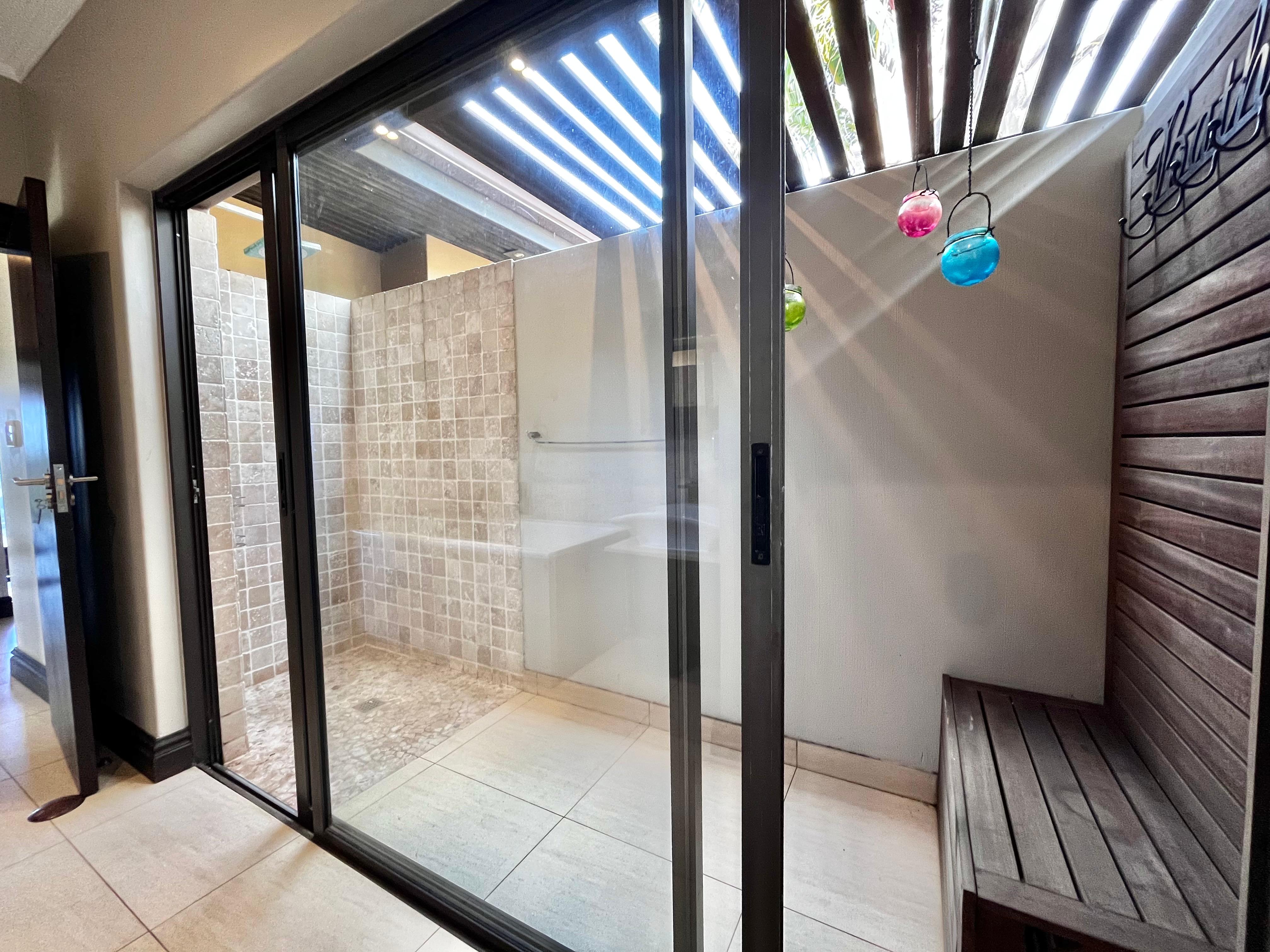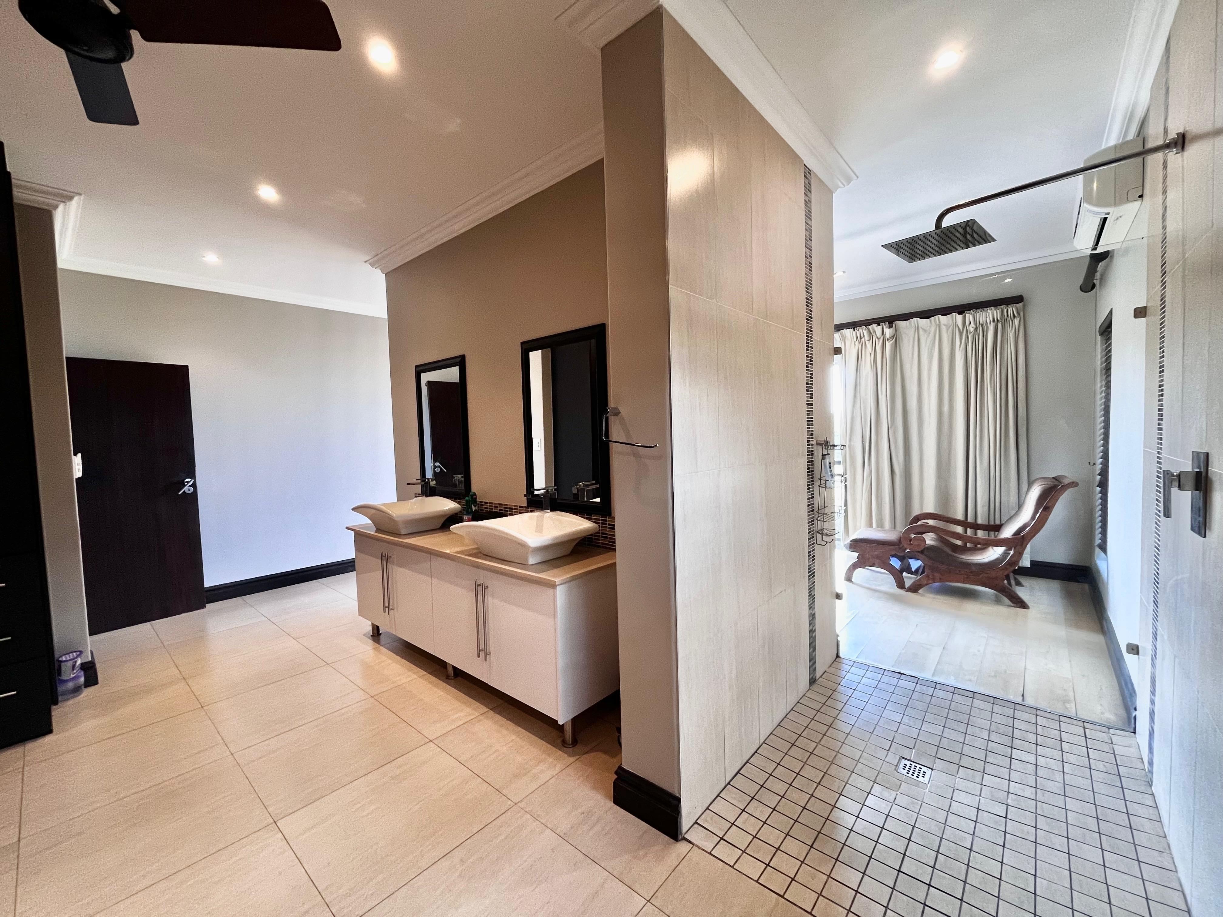 Escape to Coastal Serenity in This Stunning Sheffield Beach Home This expansive 4-bedroom haven in a prestigious Sheffield Beach estate offers breathtaking sea views and a luxurious lifestyle. Picture waking up to the azure ocean stretching before you from most rooms in the house. Upstairs, each bedroom boasts built-in cupboards, with two featuring open-plan en-suite bathrooms. Downstairs, an open-plan living space seamlessly blends lounge, dining, and kitchen areas, with a separate scullery for added convenience. A dedicated cinema/bar area below the living space provides a dedicated entertainment hub for family and friends. Step out onto the spacious covered balcony and be mesmerized by the panoramic views. A small swimming pool and lush greenery ensure privacy and tranquility. A double garage and ample parking space complete the picture. Enjoy peace of mind with 24-hour security and the convenience of being within walking distance to the beach. This is more than a home, it's a lifestyle.