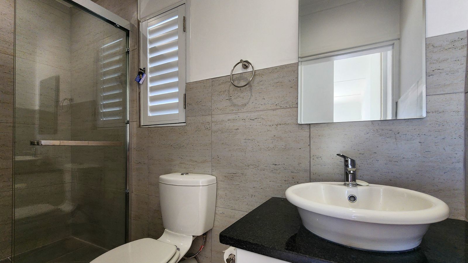 The open-plan kitchen flows effortlessly into the dining area and air-conditioned lounge, creating a welcoming space to gather and unwind. Sliding doors open onto a large covered patio — the perfect spot for morning coffees, relaxed evenings, entertaining friends, or simply enjoying sunrise views over the ocean. The enclosed garden is easy to maintain and includes exclusive use of a spacious lawn area, adding to the sense of space and privacy.