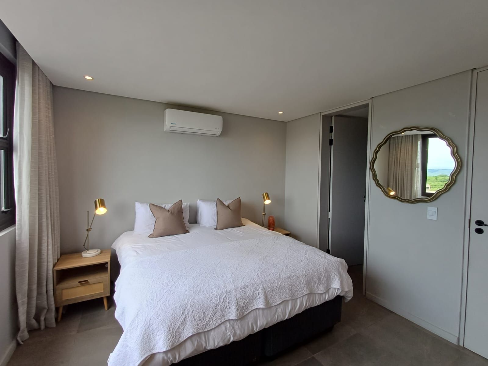 Beautifully finished bedrooms with large windows and soft natural light. The main bedroom includes air-conditioning and a full ensuite bathroom for absolute privacy and comfort.