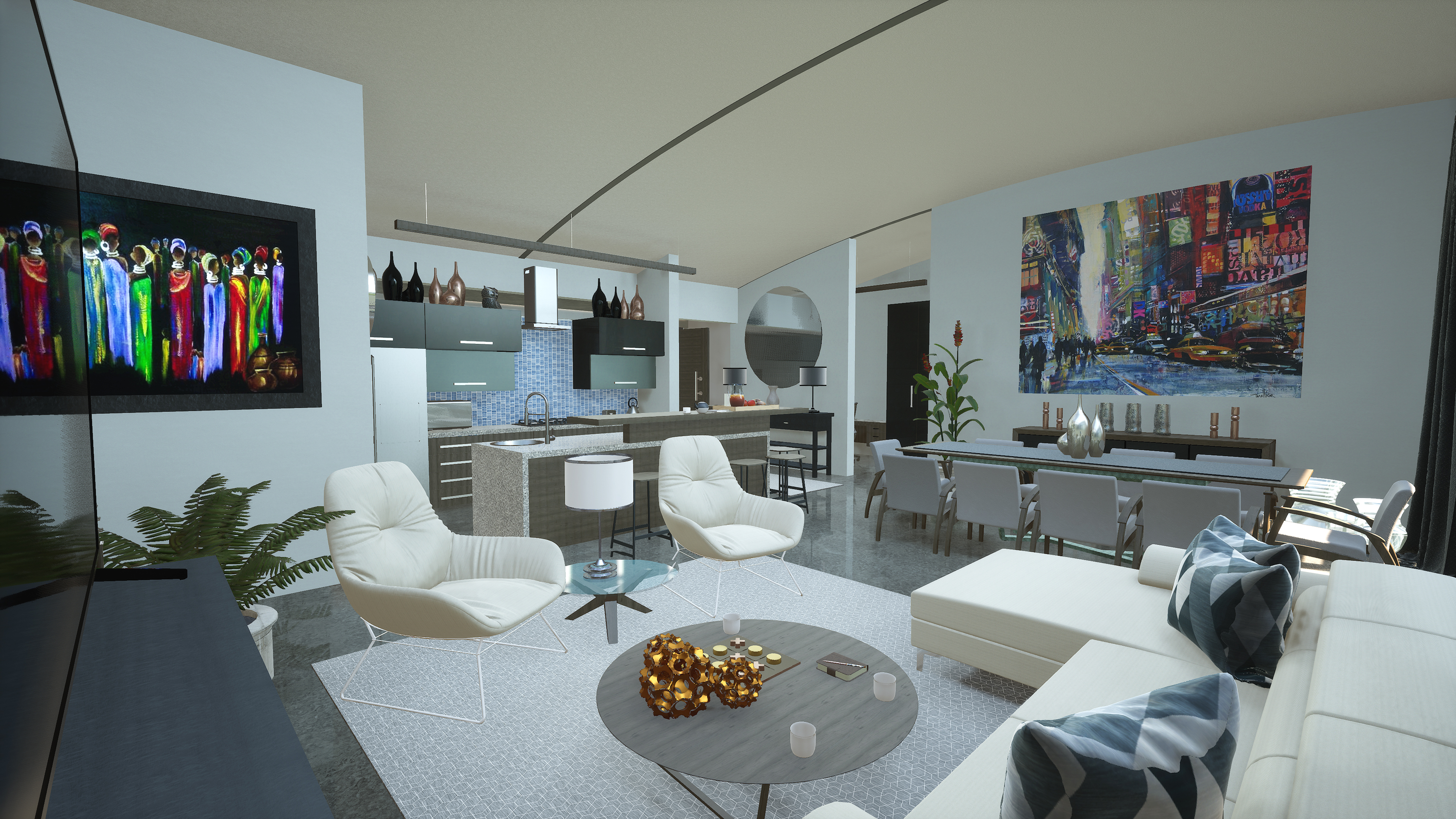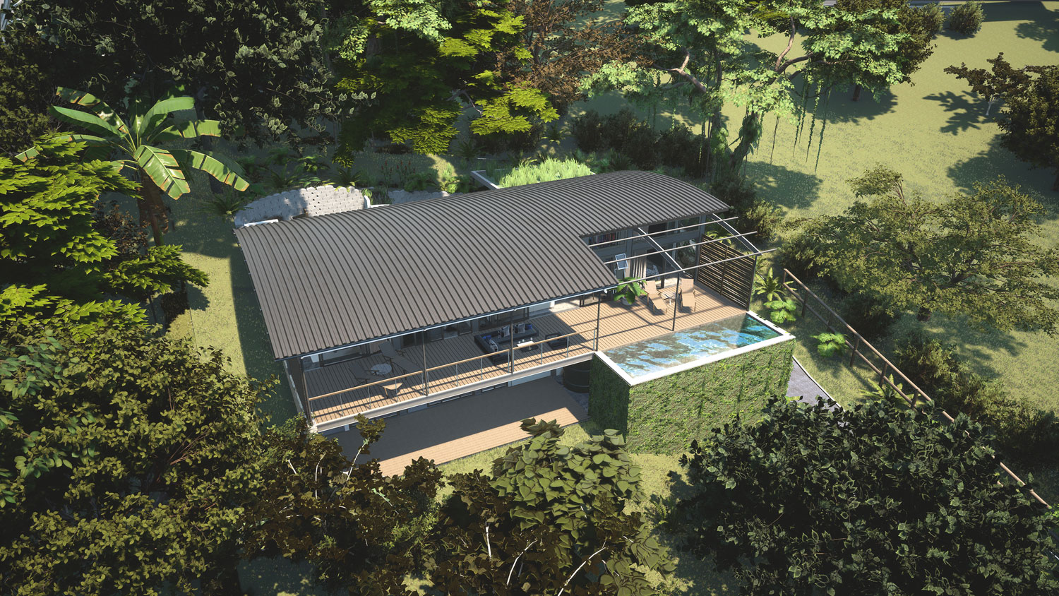 Upstairs, an airy open-plan living space flows to a sleek kitchen with separate scullery. Glass doors open to a covered deck and pool, perfectly positioned to enjoy estate views and gentle sea breezes.
