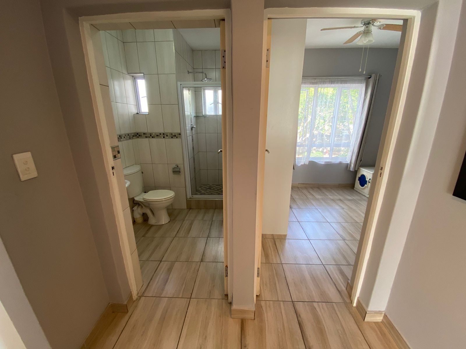 This spacious 2-bedroom apartment has been thoughtfully upgraded to enhance everyday living. Each room includes extra built-in cupboards, offering generous storage and helping keep your home neat and organised. The interiors are comfortable year-round, thanks to a powerful 18 000 BTU air conditioner. For peace of mind, the unit also features burglar gates at both the front and back entrances and sturdy monkey bars on the windows — ideal for those who value security without compromising on comfort.