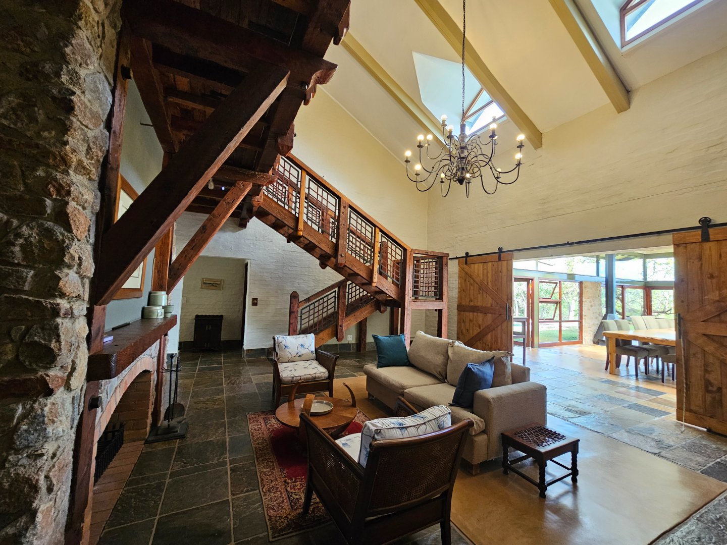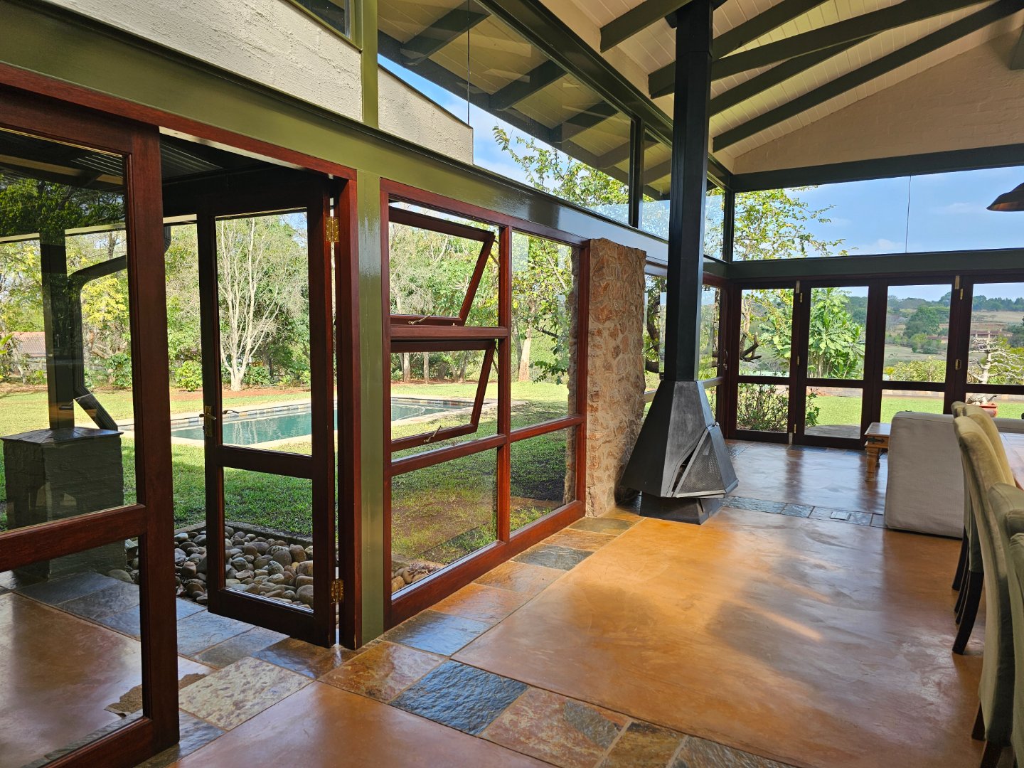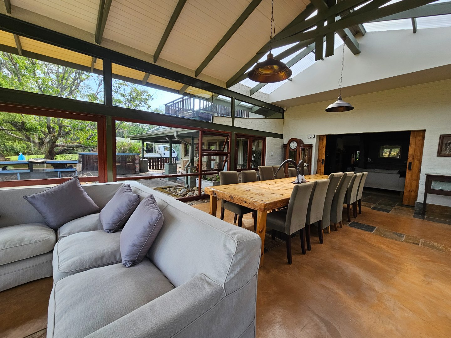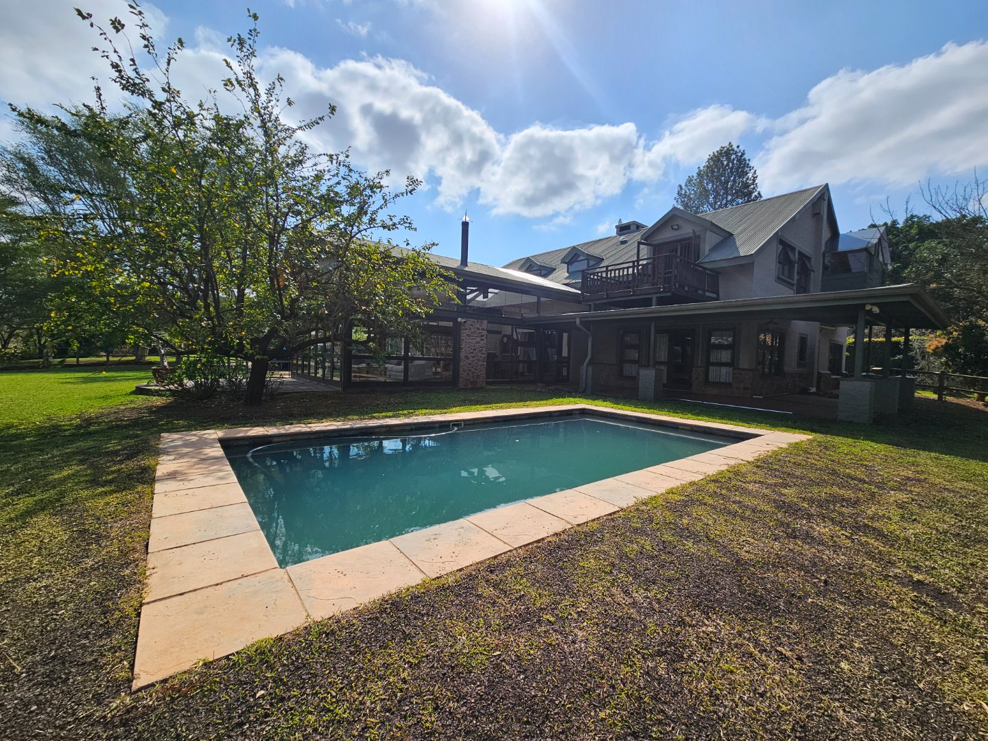 This Spectacular Home has the Wow Factor. In the Sought after Sheffield Estate. The lifestyle estate offers walking trails. Fishing dams and close proximity to Uplands school. This has a main home, 5 Bedrooms, 3 Bathrooms magnificent dining area in a glass room with beautiful views. The farmstyle kitchen is large with a neat scullery. The lounge has a fire place and a private movie room. There are 2 Bedrooms downstairs with a shared bathroom and 3 Bedrooms upstairs with 2 Bathrooms. Everything is beautiful! Picturesque from every angle. The domestic room is ensuite with a kitchenette. Large storeroom and huge Garages with 2 swimming pools.