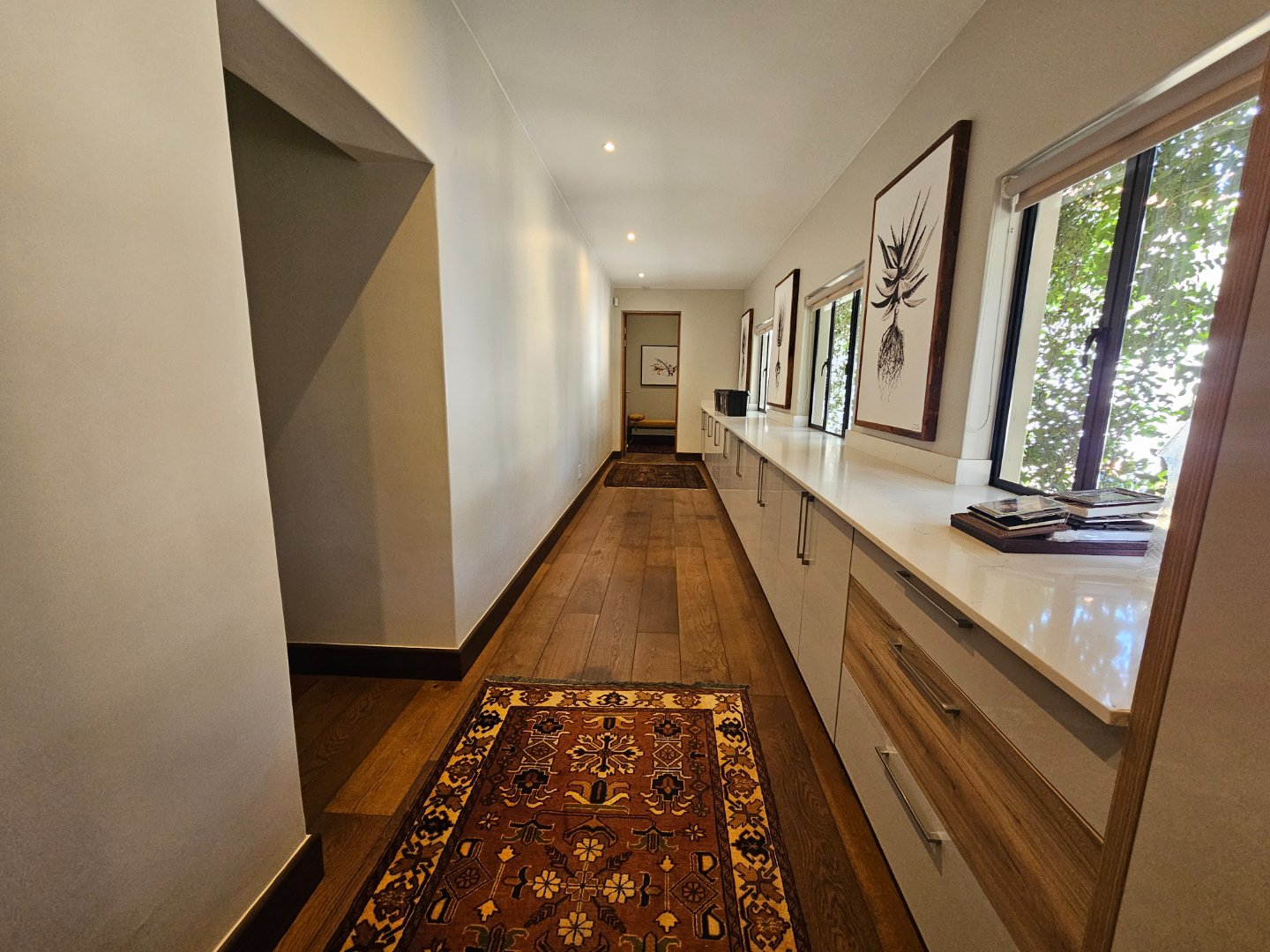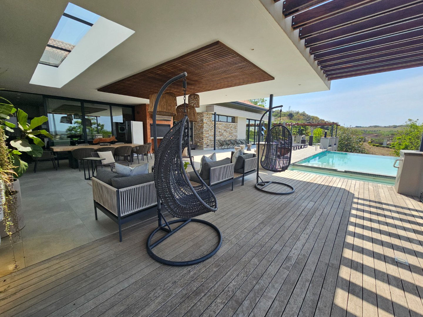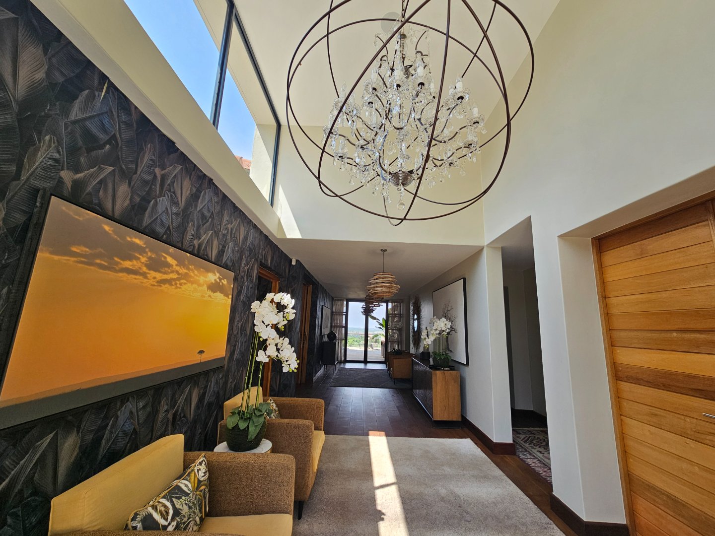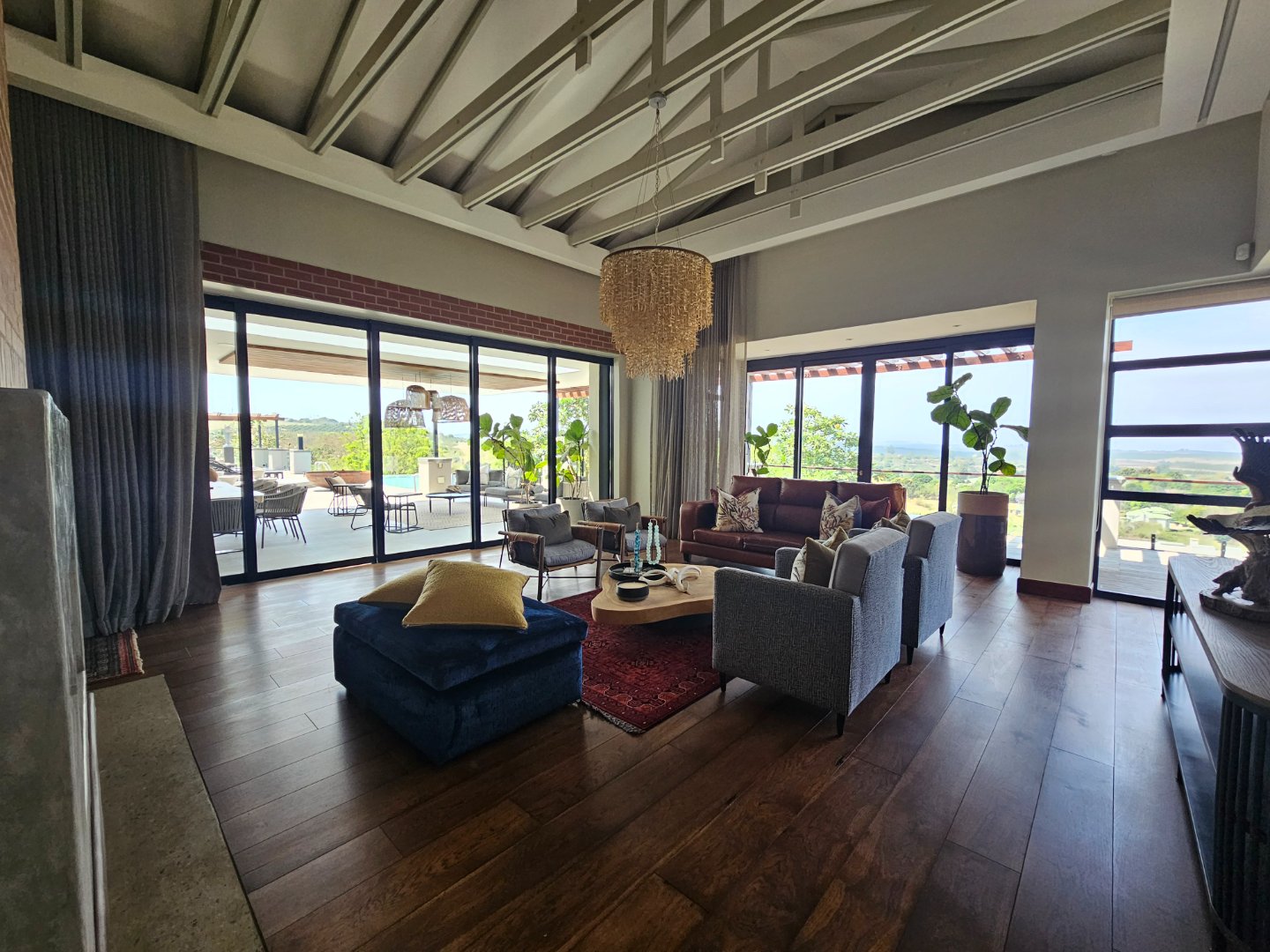 4 Bedrooms; all master, luxurious and ensuite. 1Study. 2 lounges. Dining area with a gas fire. Entertainers paradise. Swimming pool with outside furniture. Spectacular views. 3 Electric garages. Domestic rooms.