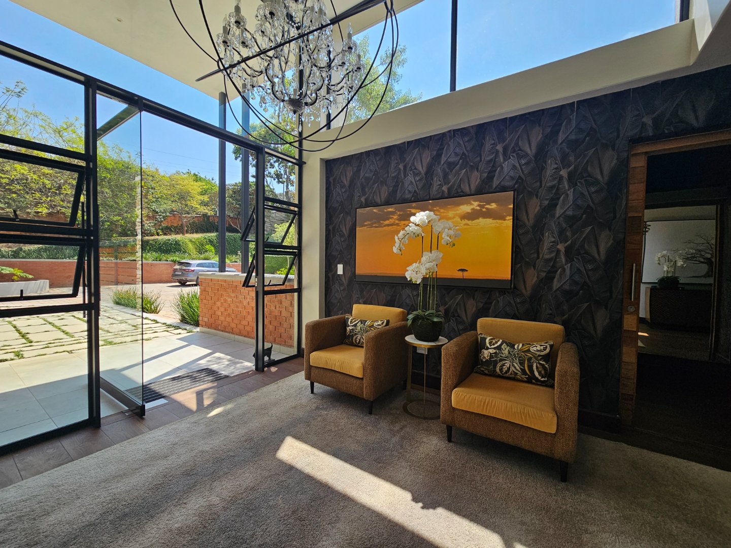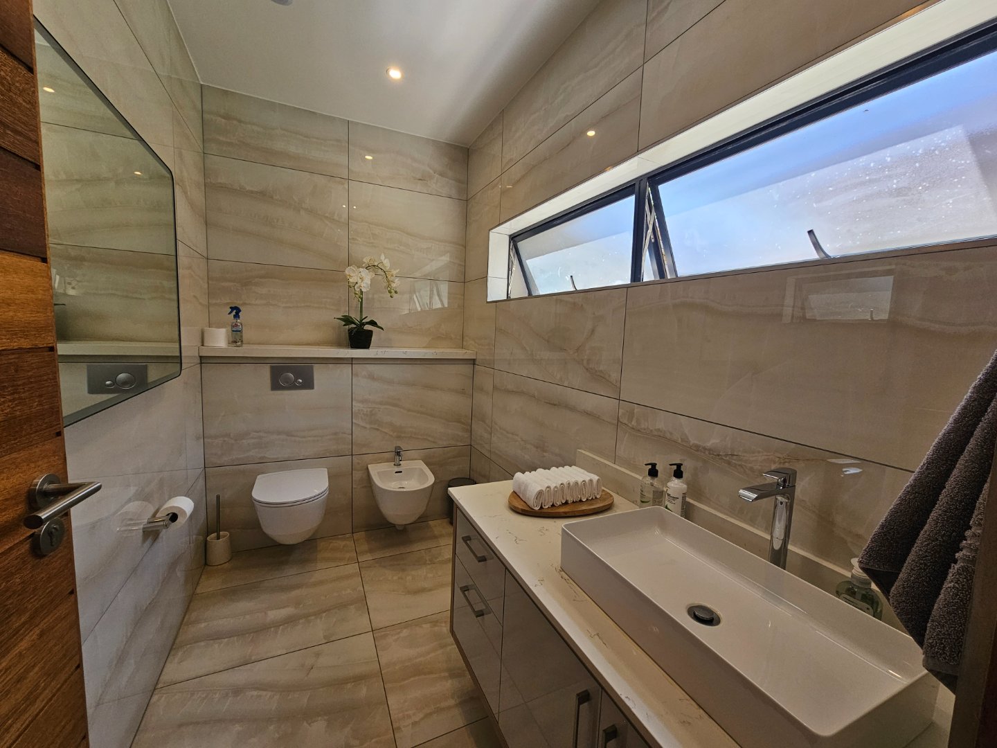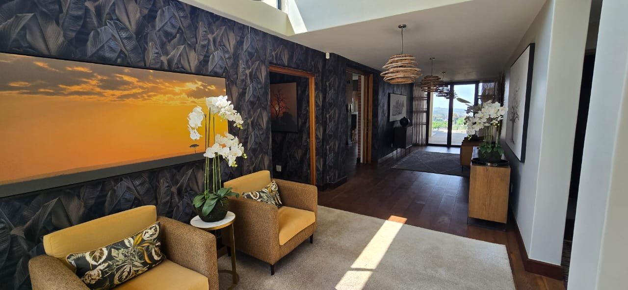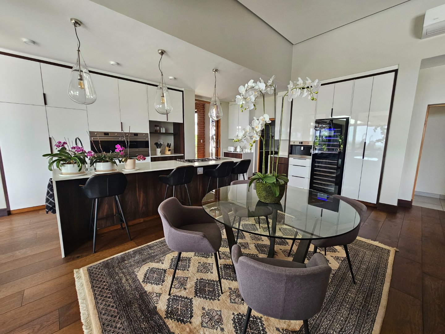 4 Bedrooms; all master, luxurious and ensuite. 1Study. 2 lounges. Dining area with a gas fire. Entertainers paradise. Swimming pool with outside furniture. Spectacular views. 3 Electric garages. Domestic rooms.
