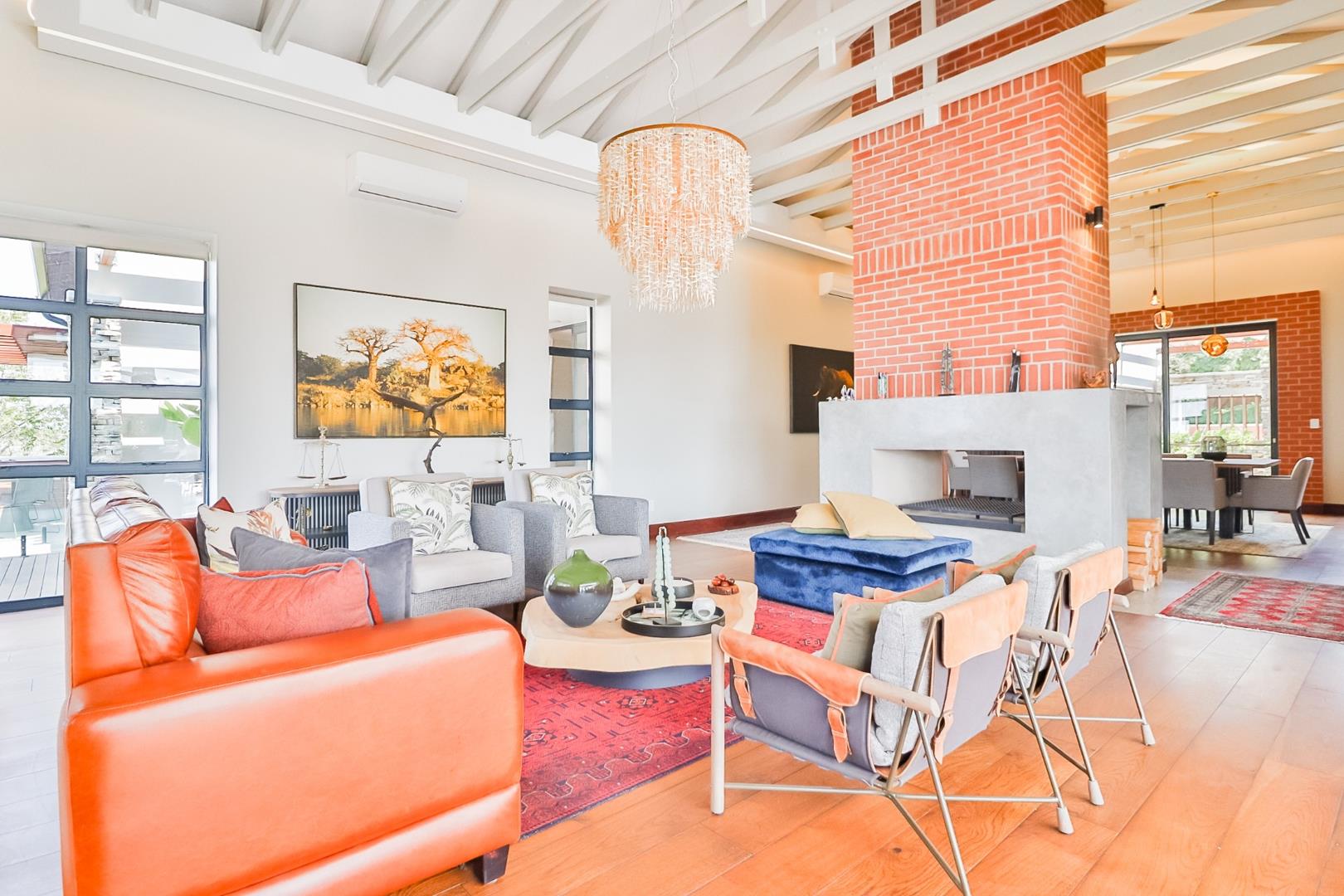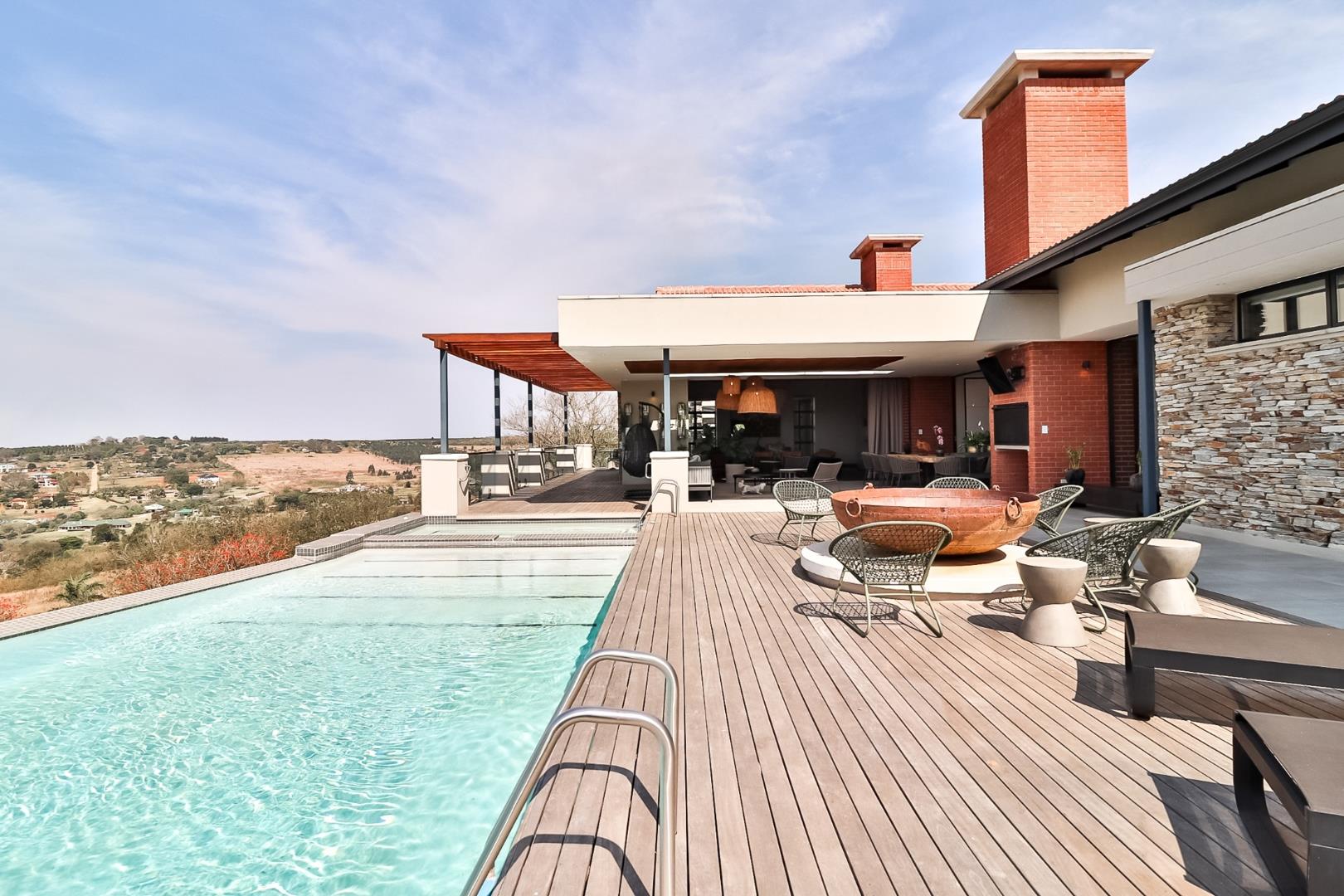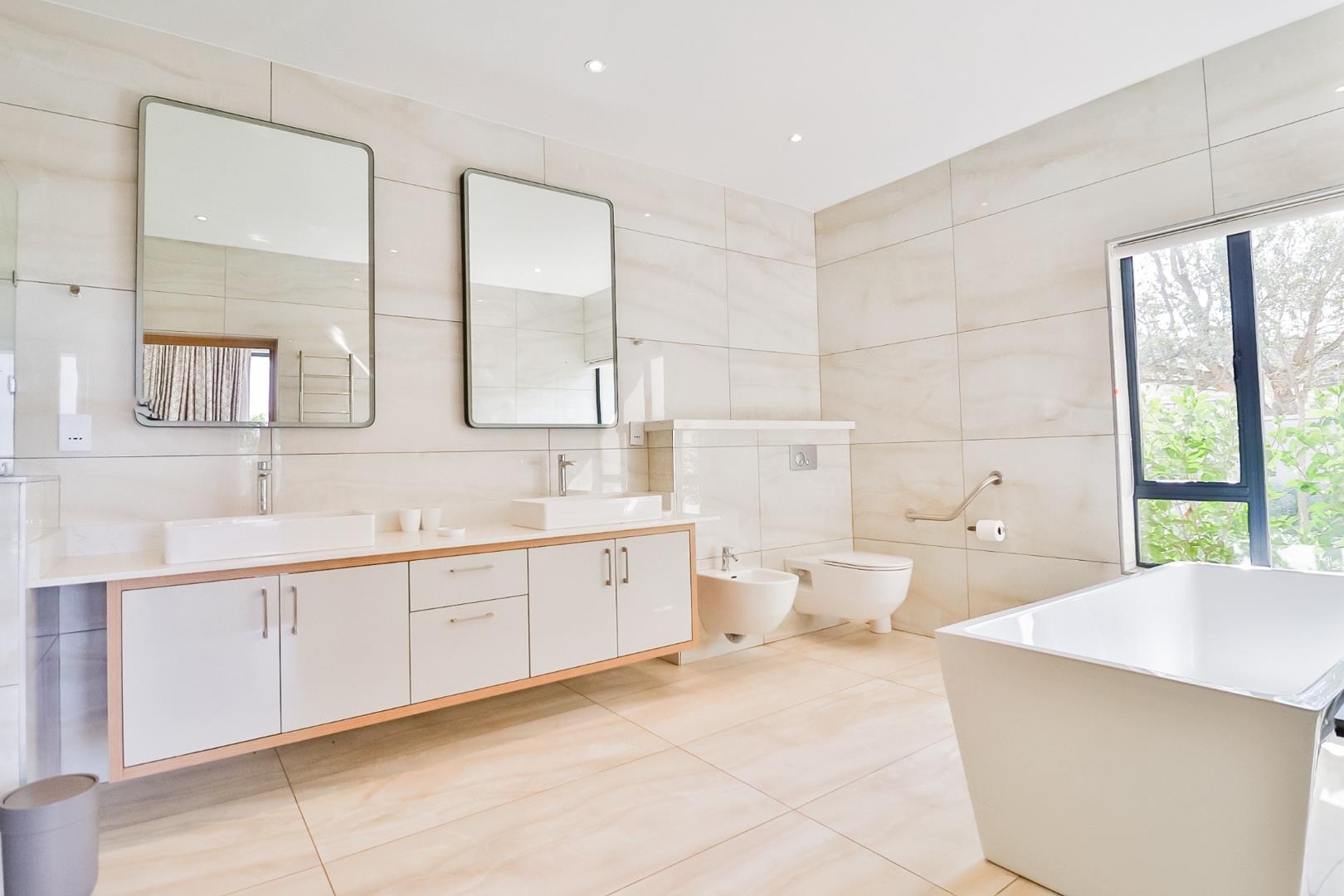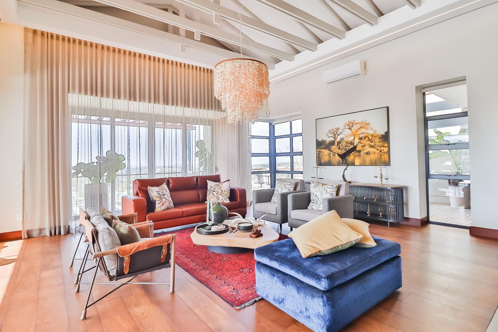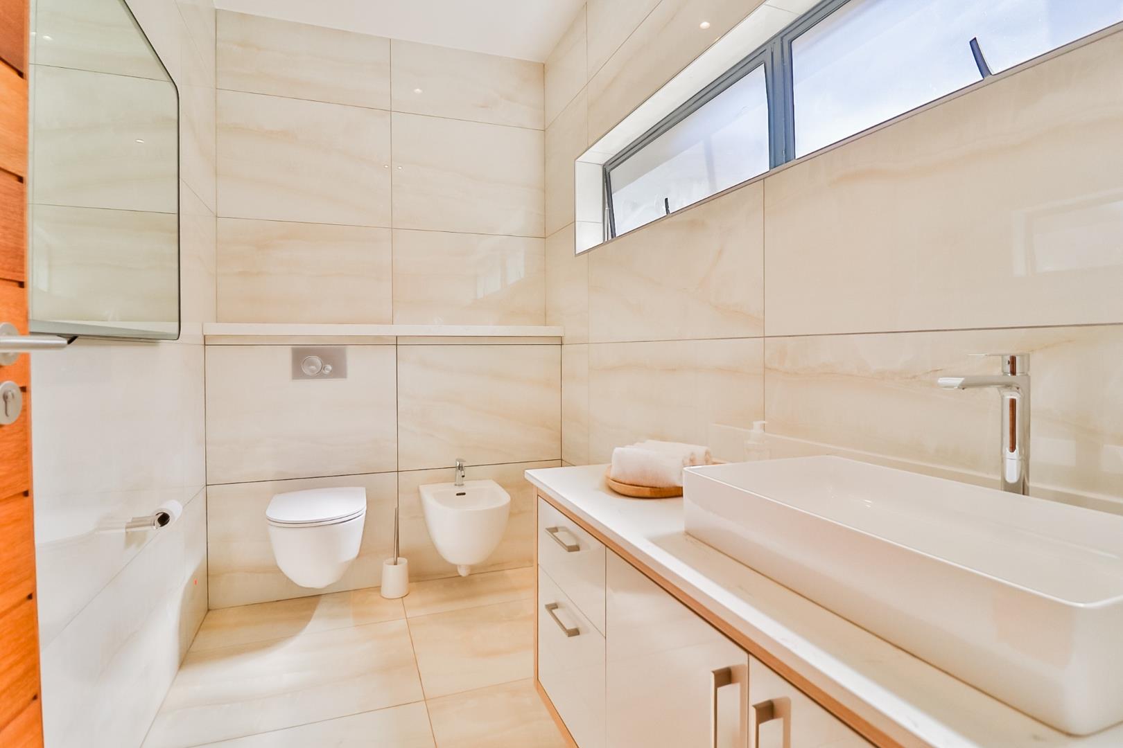 Upon entering, guests are greeted by a guest loo, setting the tone for the home`s commitment to both hospitality and practicality. The double-volume living areas create an expansive and open atmosphere, with breathtaking views or tranquil garden scenes. This dual aspect allows residents to choose between gazing out over the landscape or enjoying the serenity of a private, flowered garden.
