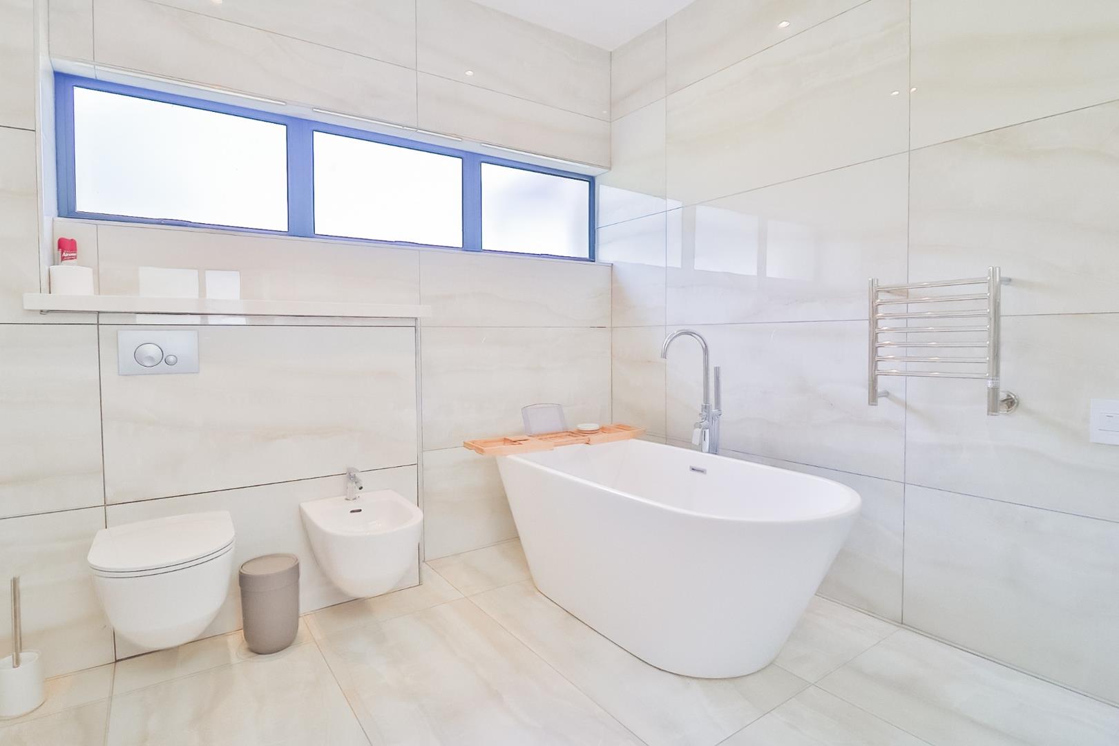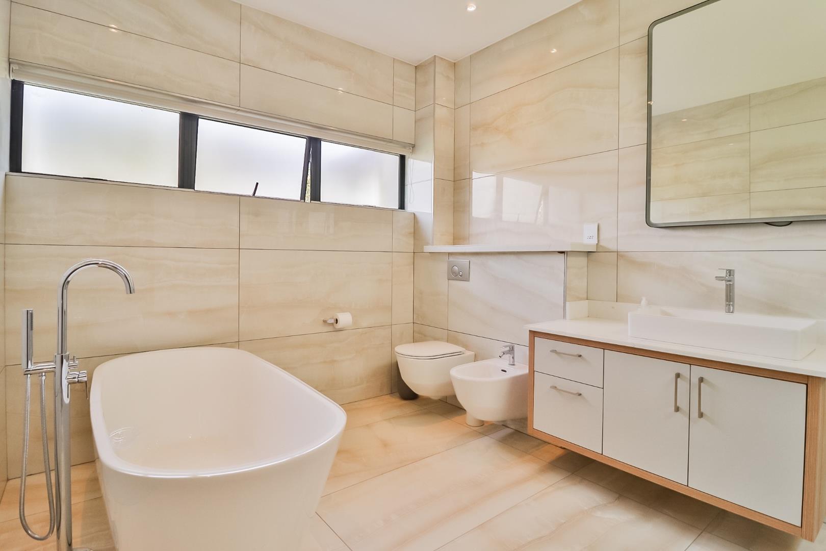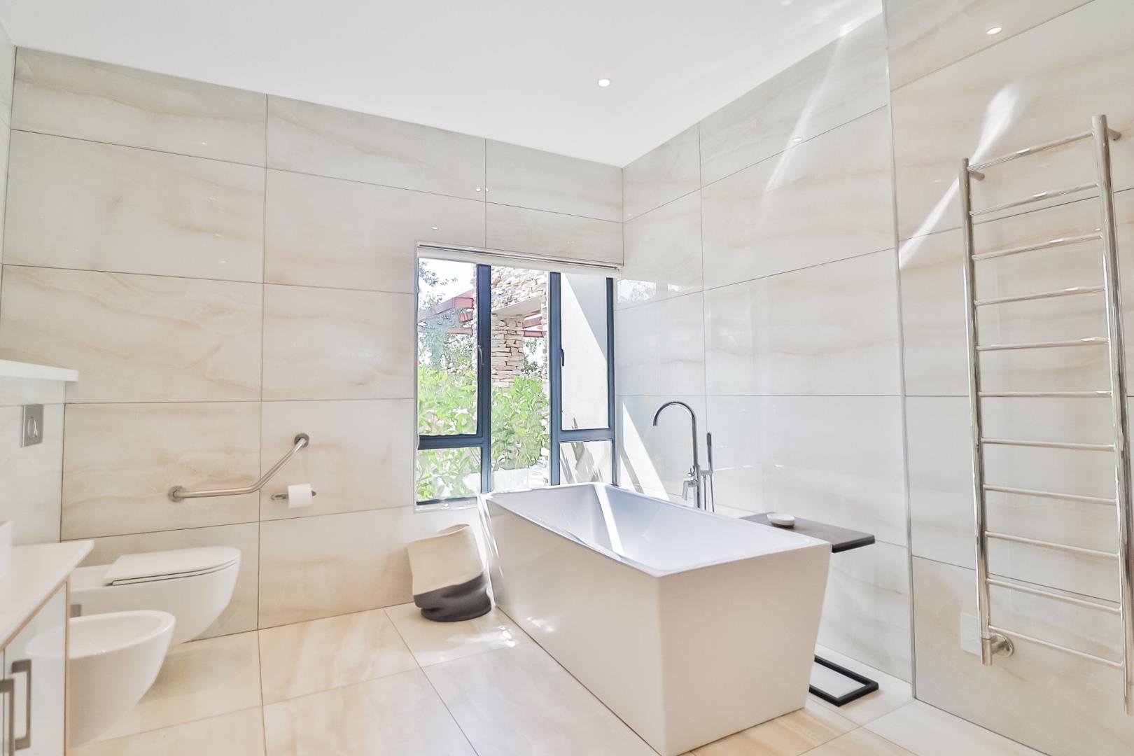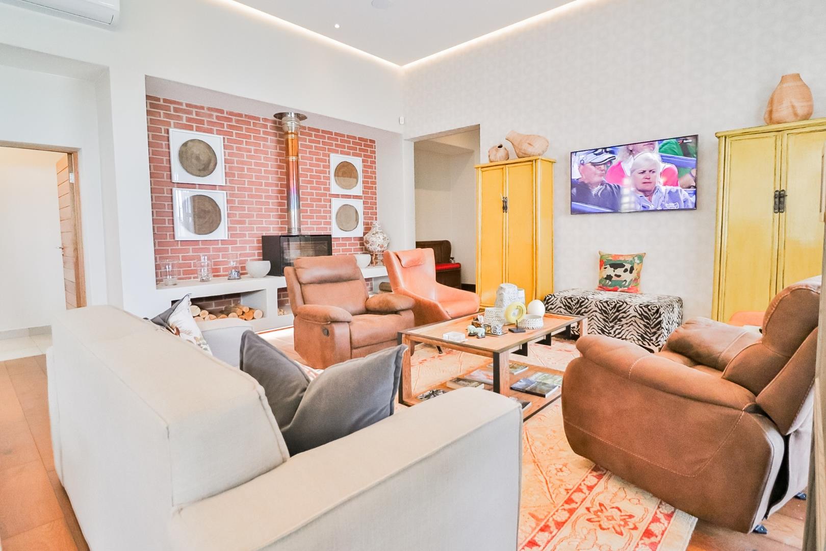 Upon entering, guests are greeted by a guest loo, setting the tone for the home`s commitment to both hospitality and practicality. The double-volume living areas create an expansive and open atmosphere, with breathtaking views or tranquil garden scenes. This dual aspect allows residents to choose between gazing out over the landscape or enjoying the serenity of a private, flowered garden.