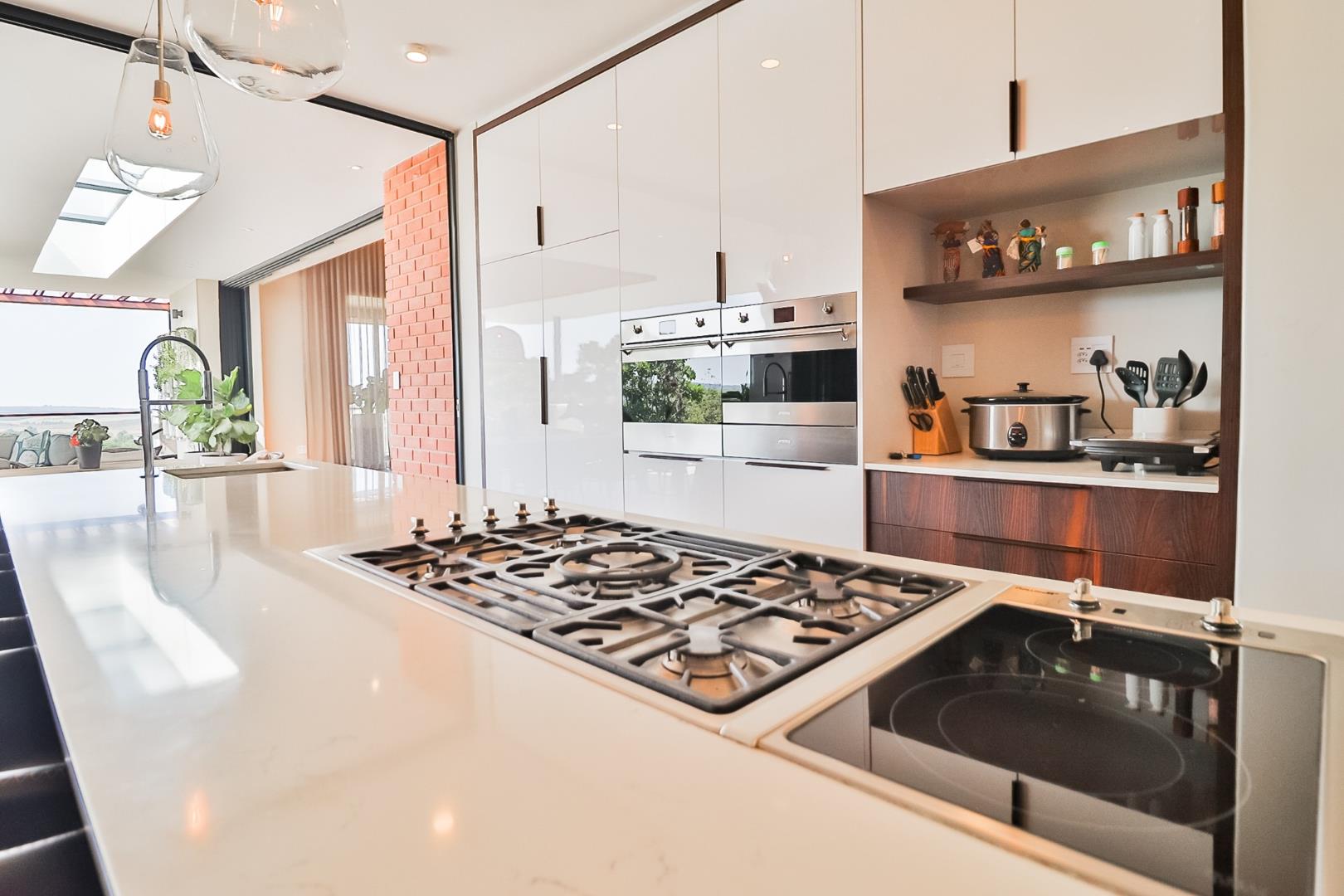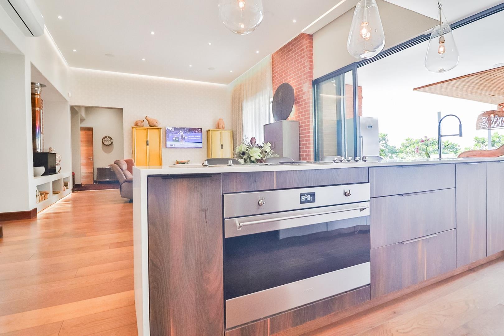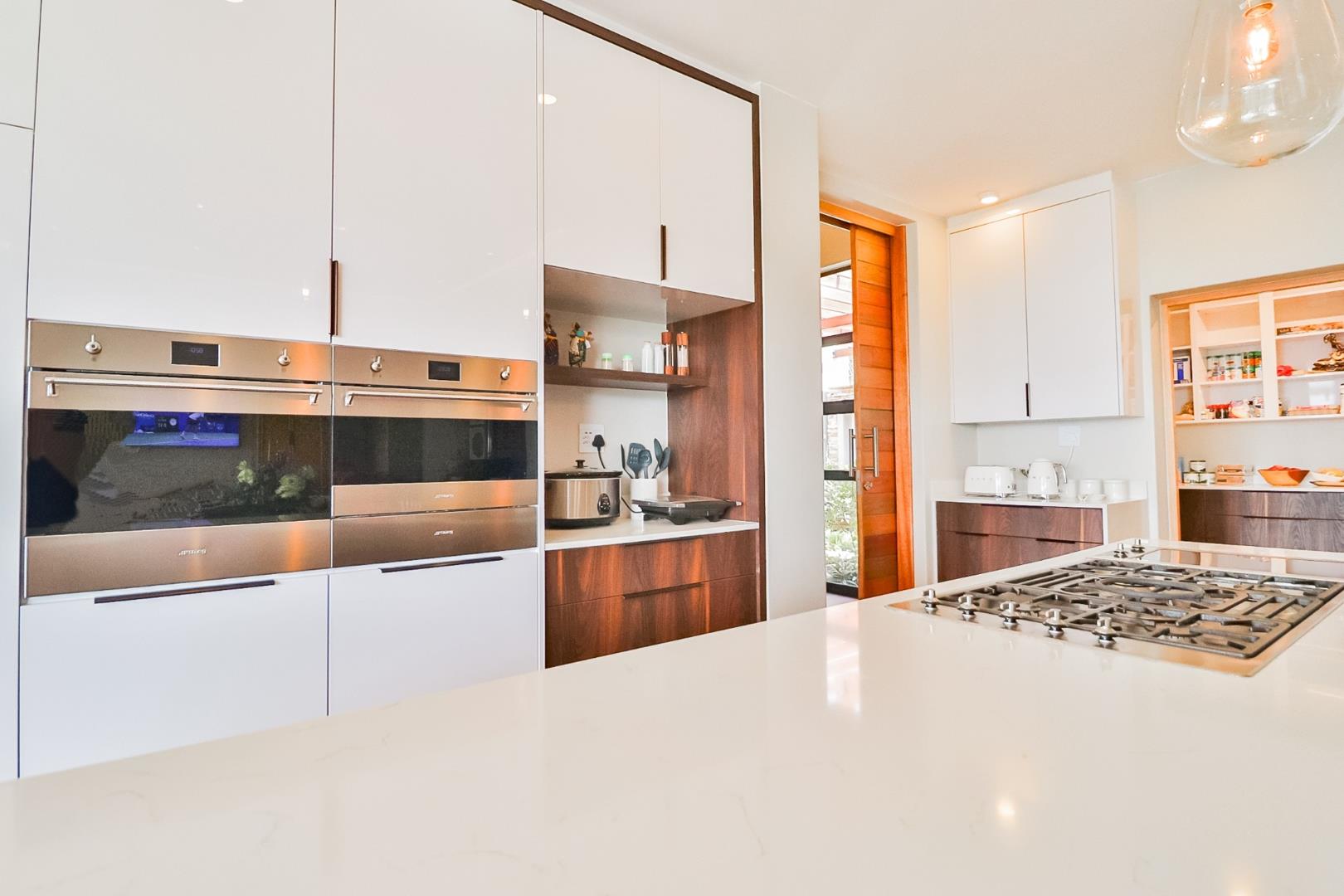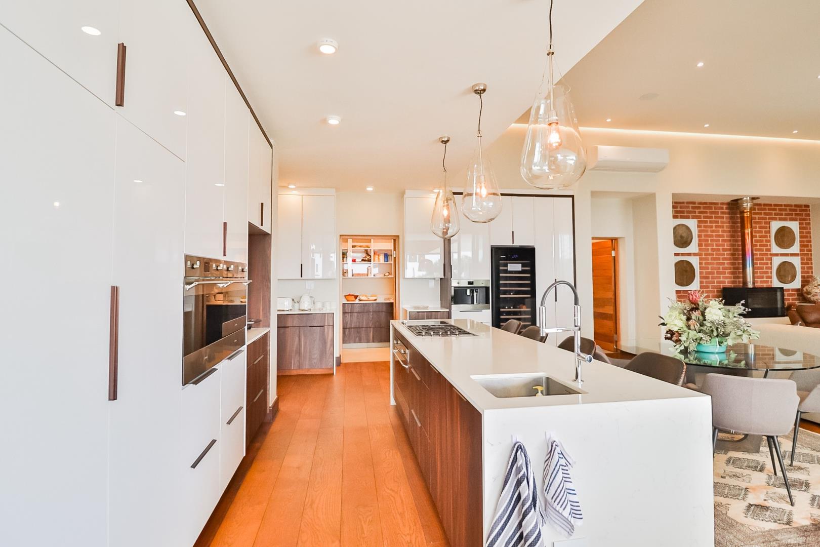 The modern kitchen is a culinary haven, featuring integrated appliances, a separate laundry, and a pantry for optimal organization. The attention to detail is evident in every corner, with sleek design elements that enhance both form and function.