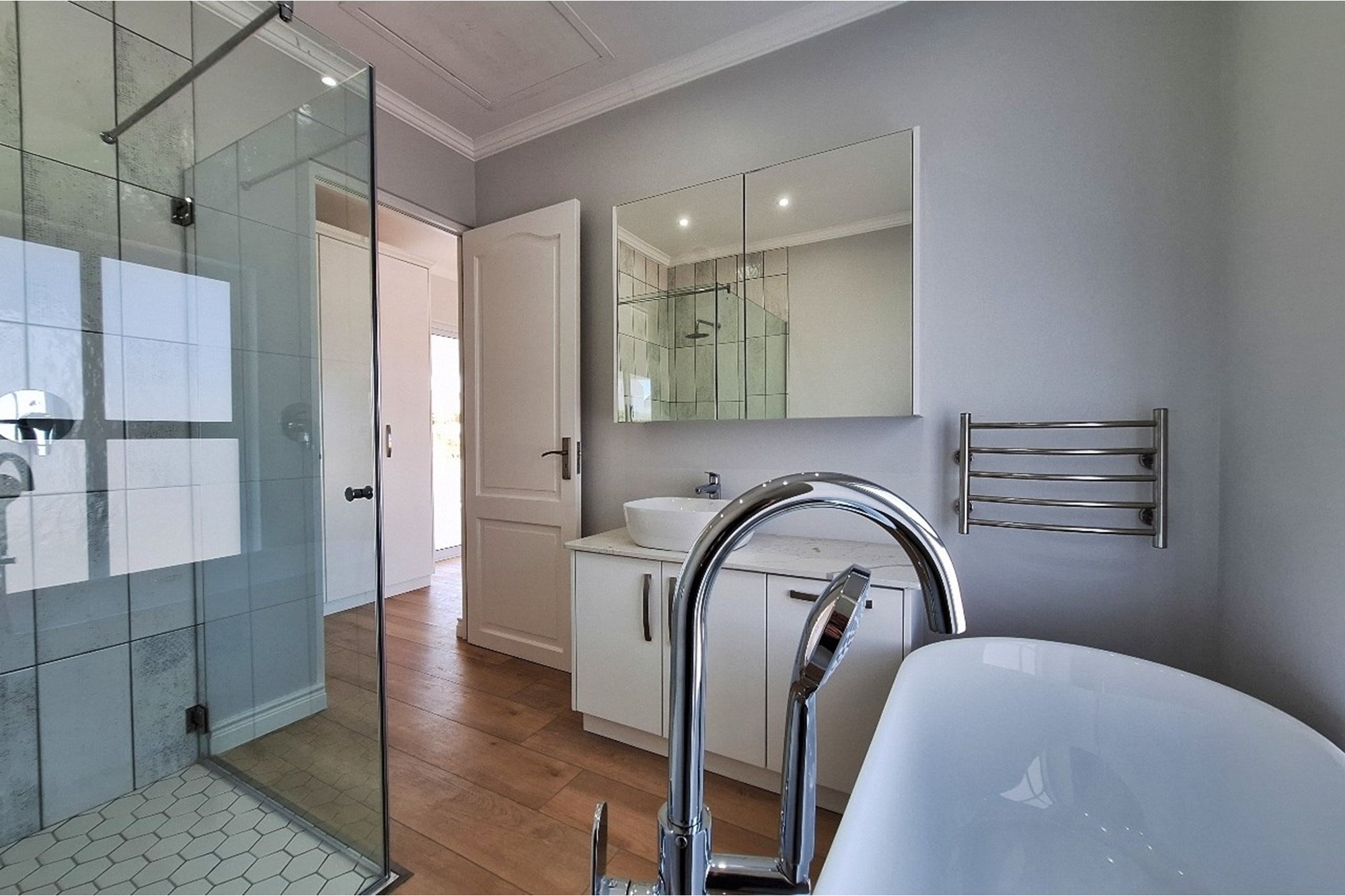 Heated towel rails.