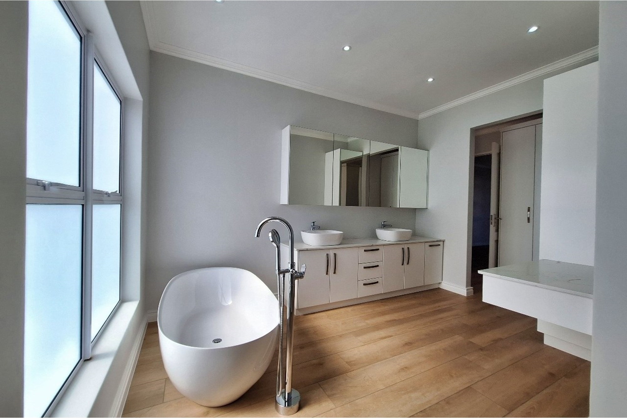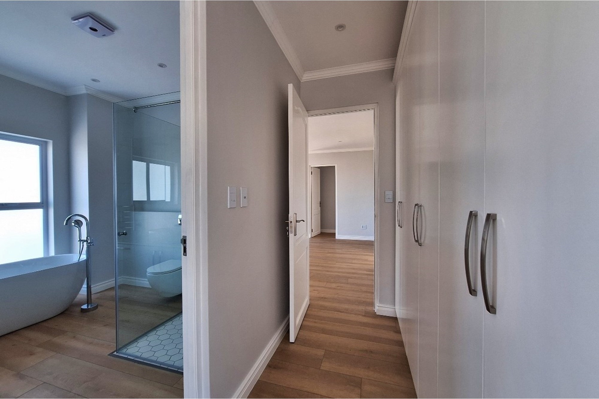 The master suite features a full en-suite bathroom and ample cupboard space, offering a sanctuary of comfort and privacy.
