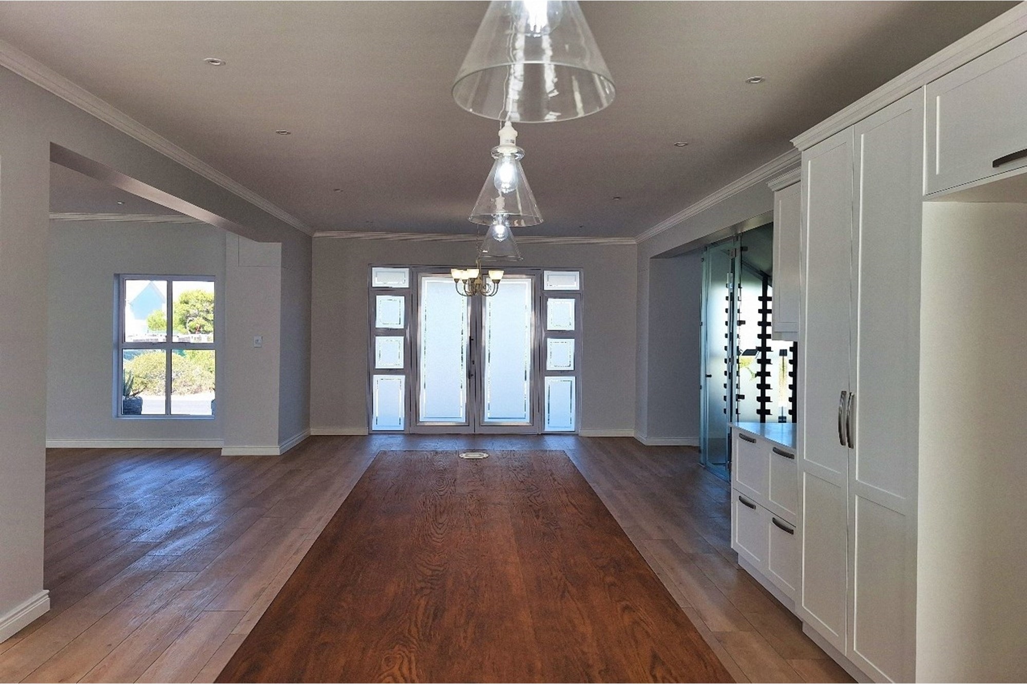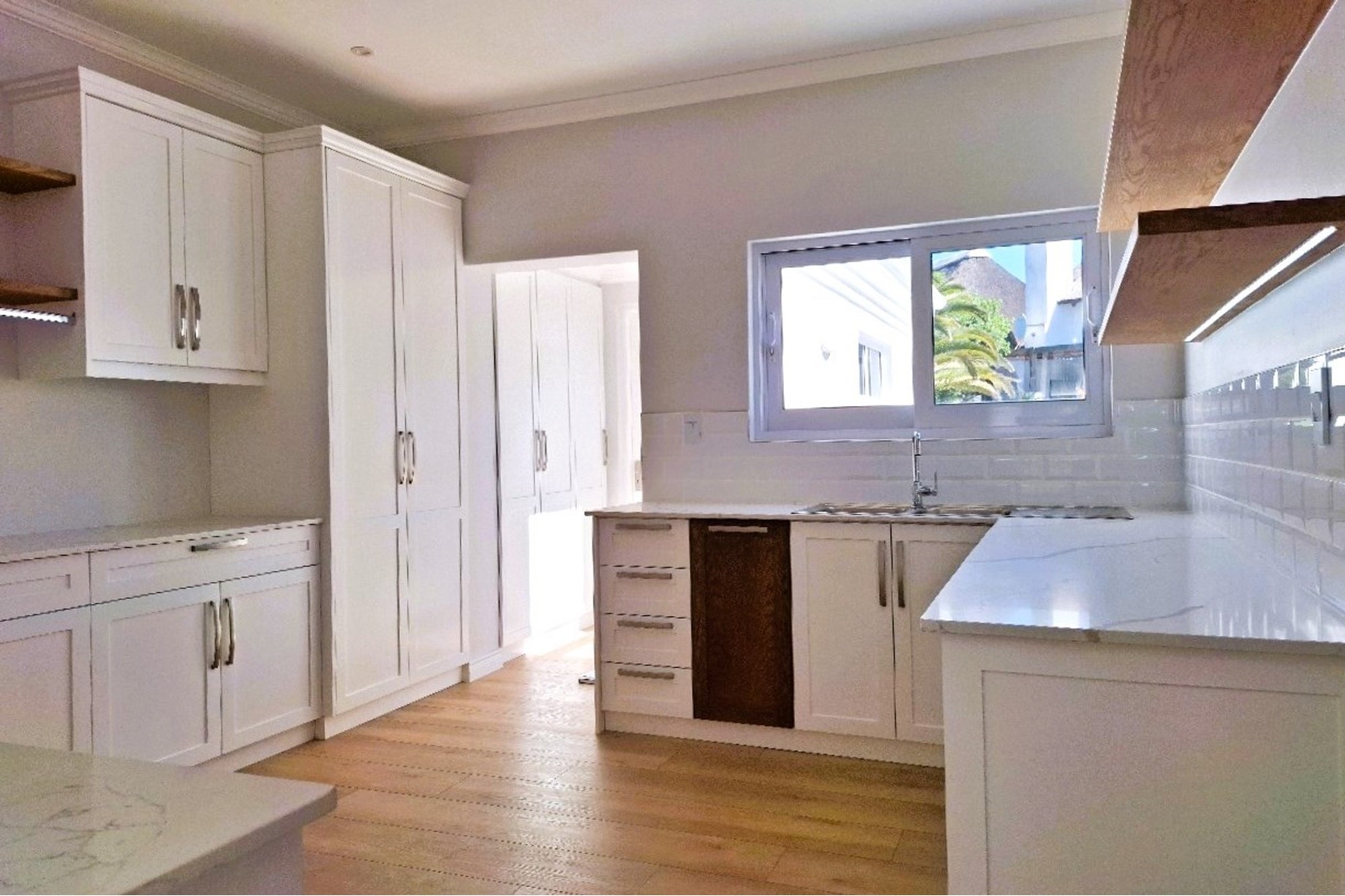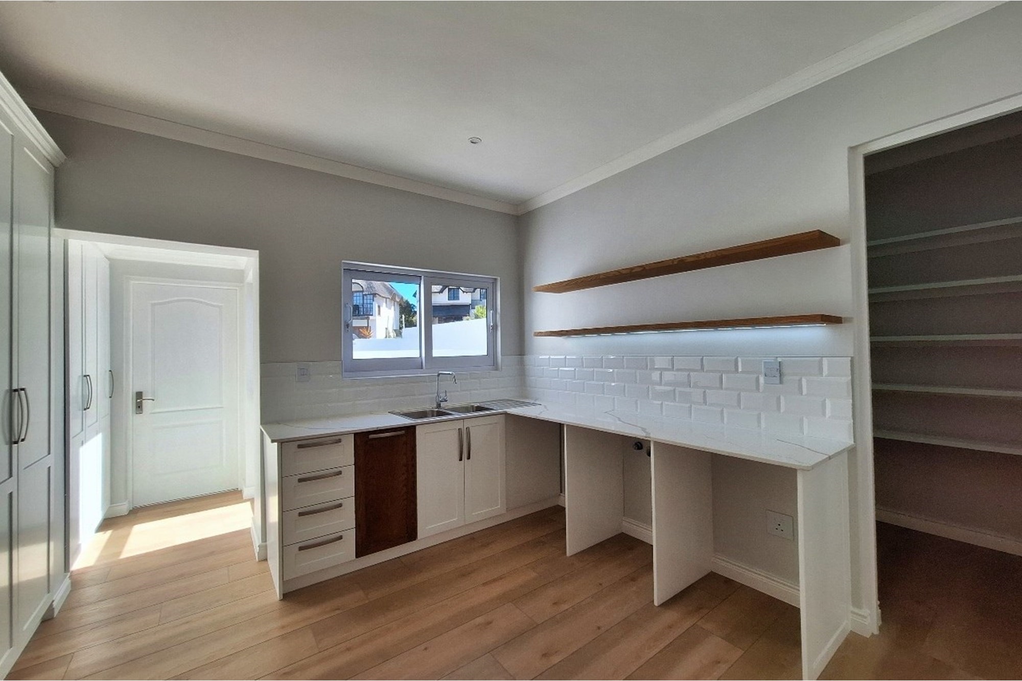 Adjacent is an extra-large scullery with walk-in pantry, plumbing for dishwasher and washing machine, and ample storage for all your culinary needs.