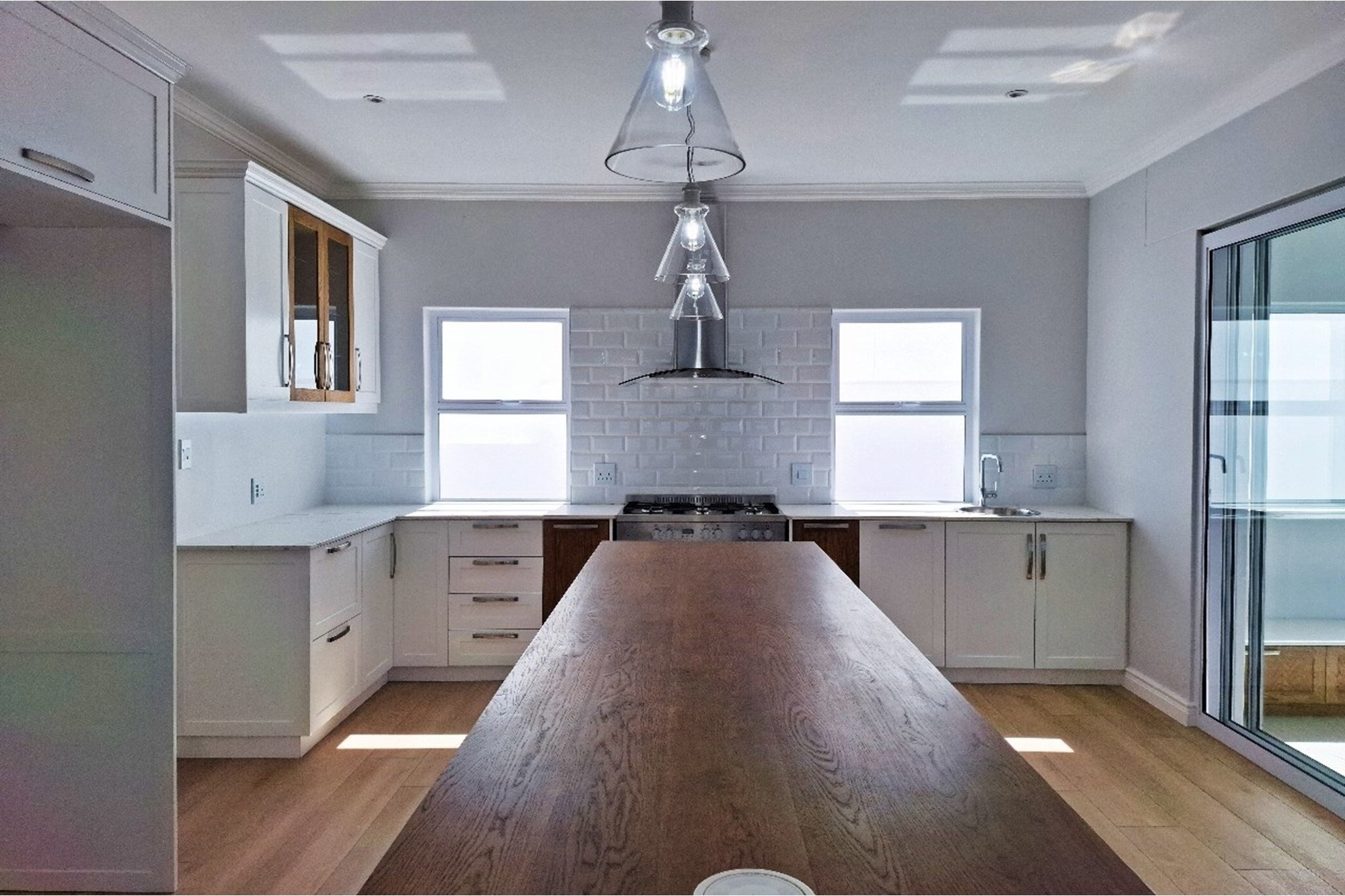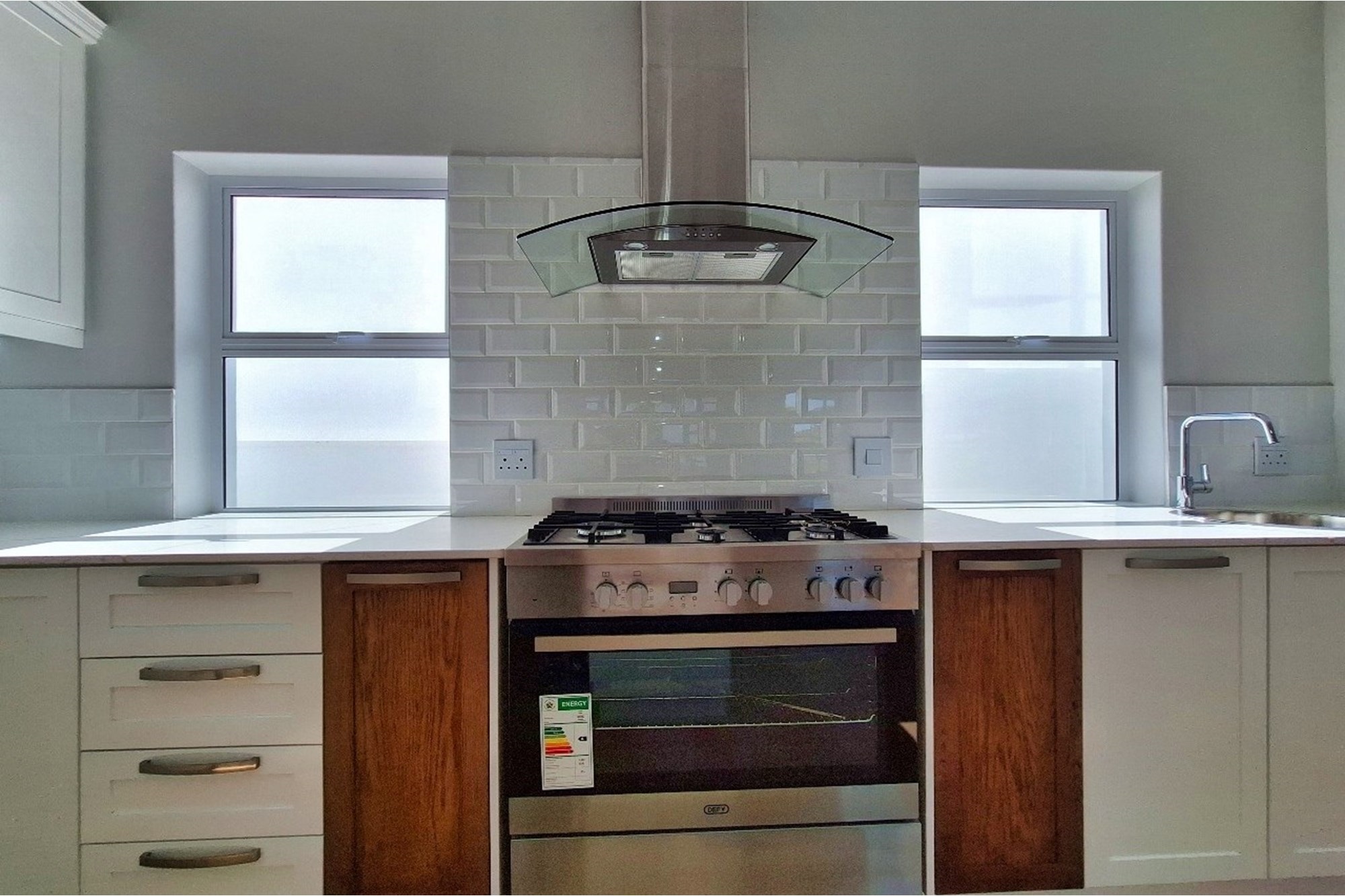 The open-plan kitchen is fitted with granite or solid wood counter-tops, a DEFY gas hob with electric oven, Grohe taps, and a dedicated cell phone charging station.