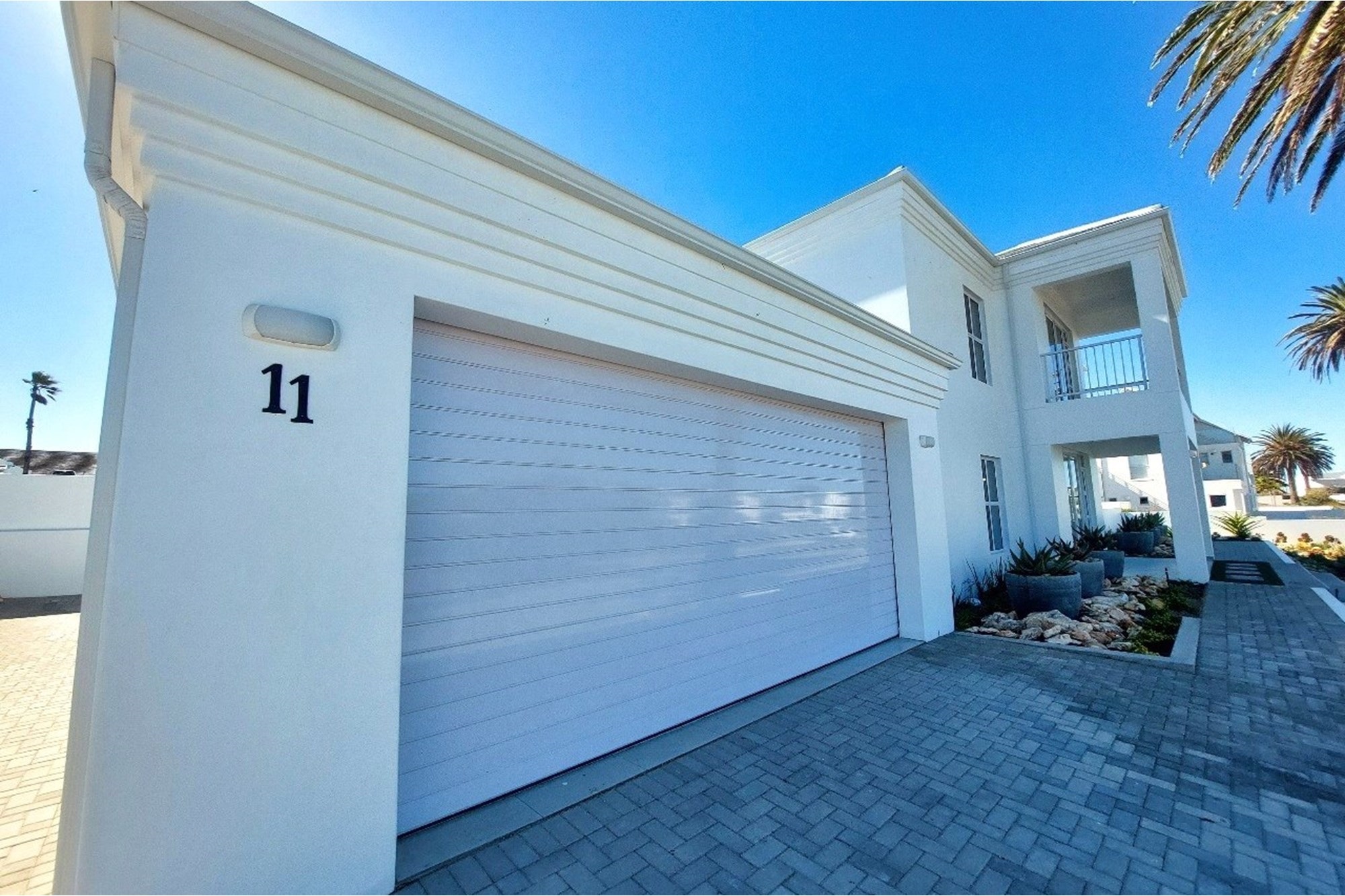 Double automated garage provides secure parking and direct access to the home.
