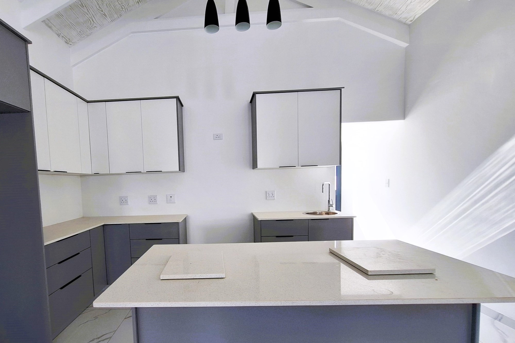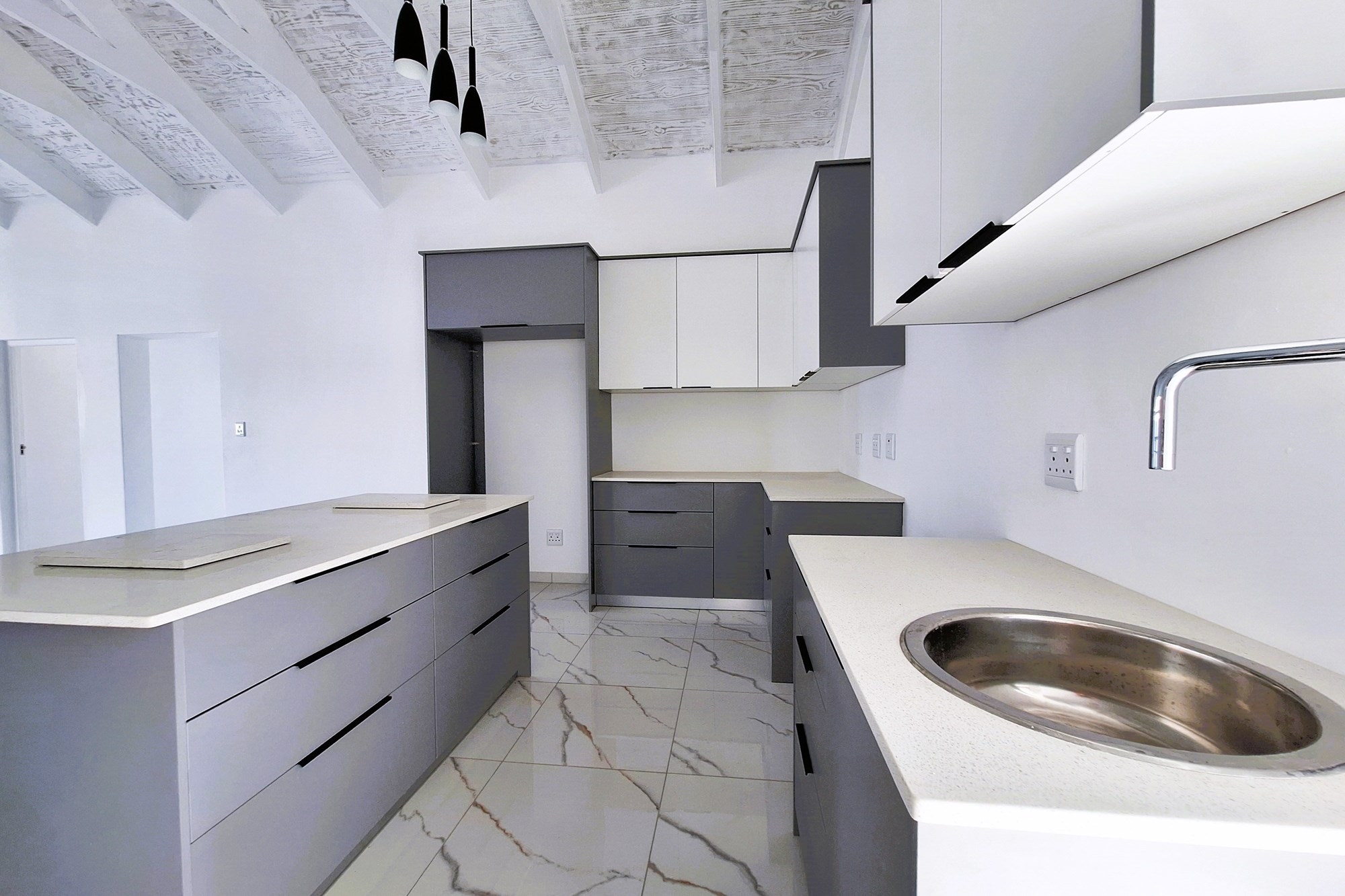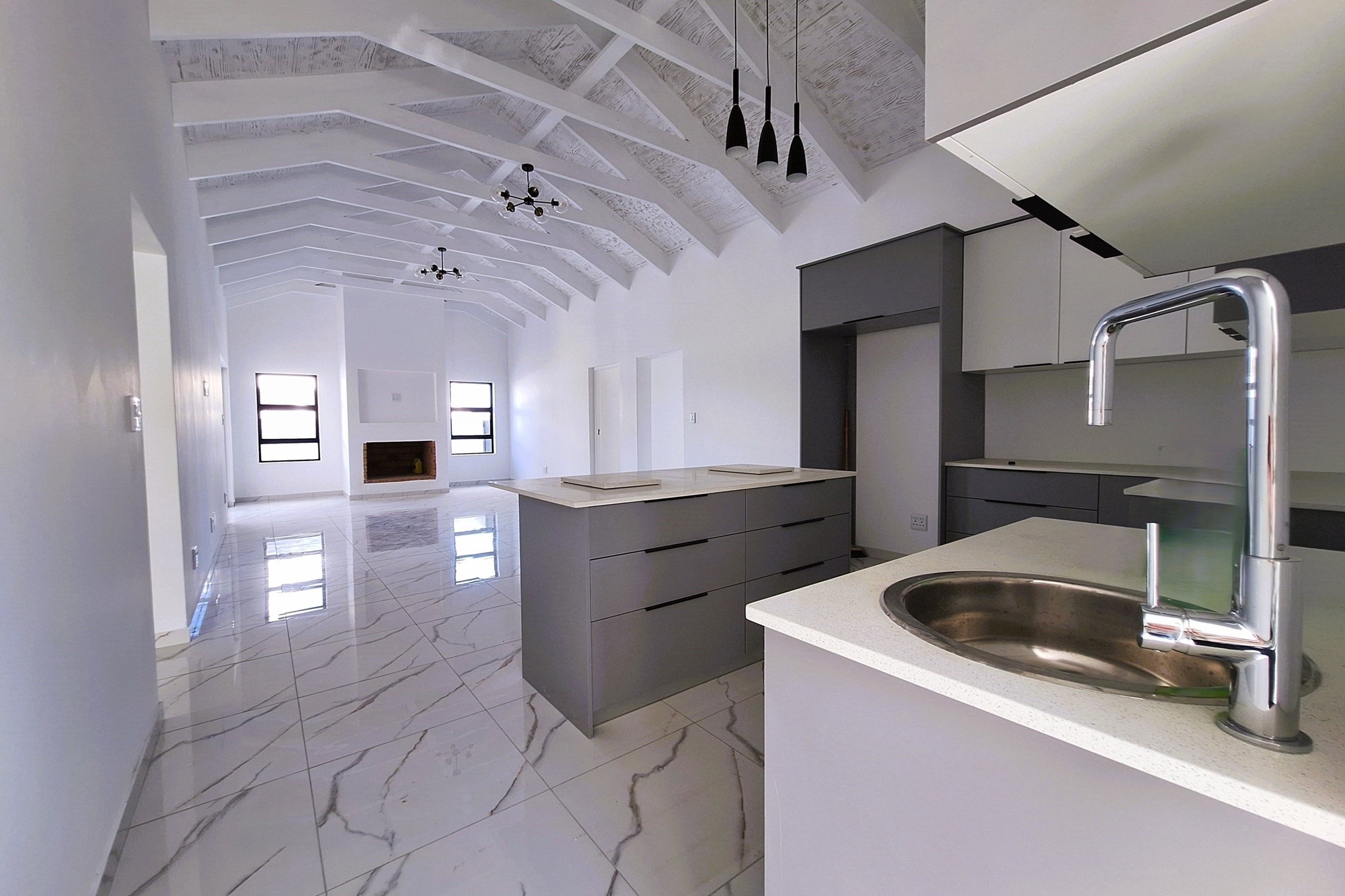 Step through the front door and be captivated by theexpansive open-plan living area, highlighted by soaringhigh-beam ceilingsand elegantmodern finishesthroughout. Thewell-appointed kitchenoffers sleek cabinetry,ample built-in cupboard space, agas hob and oven, and aseparate scullery/laundry areawith access to a drying yard – perfect for the culinary enthusiast.