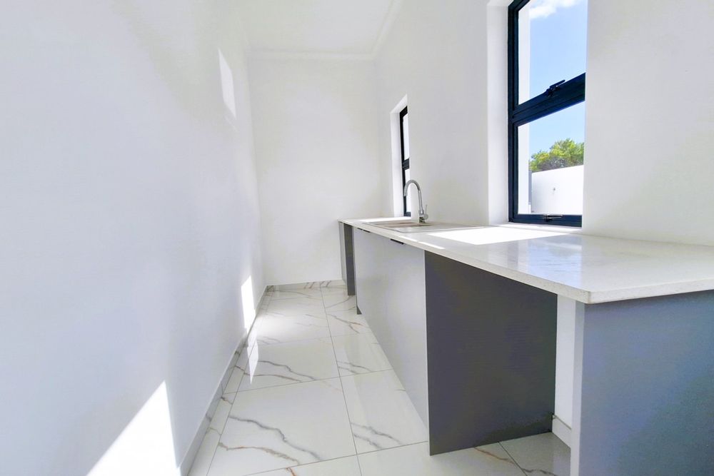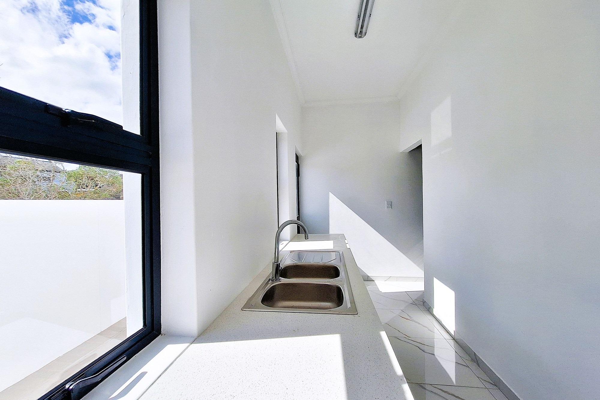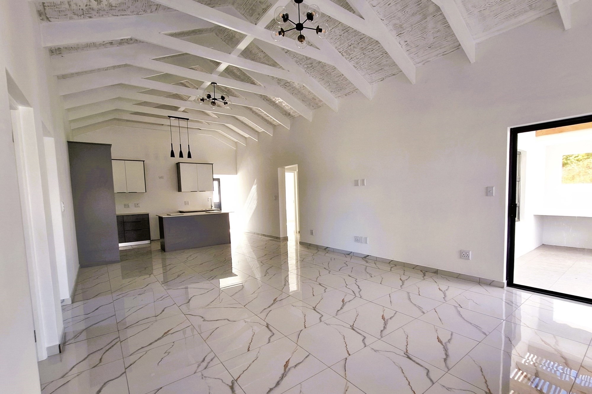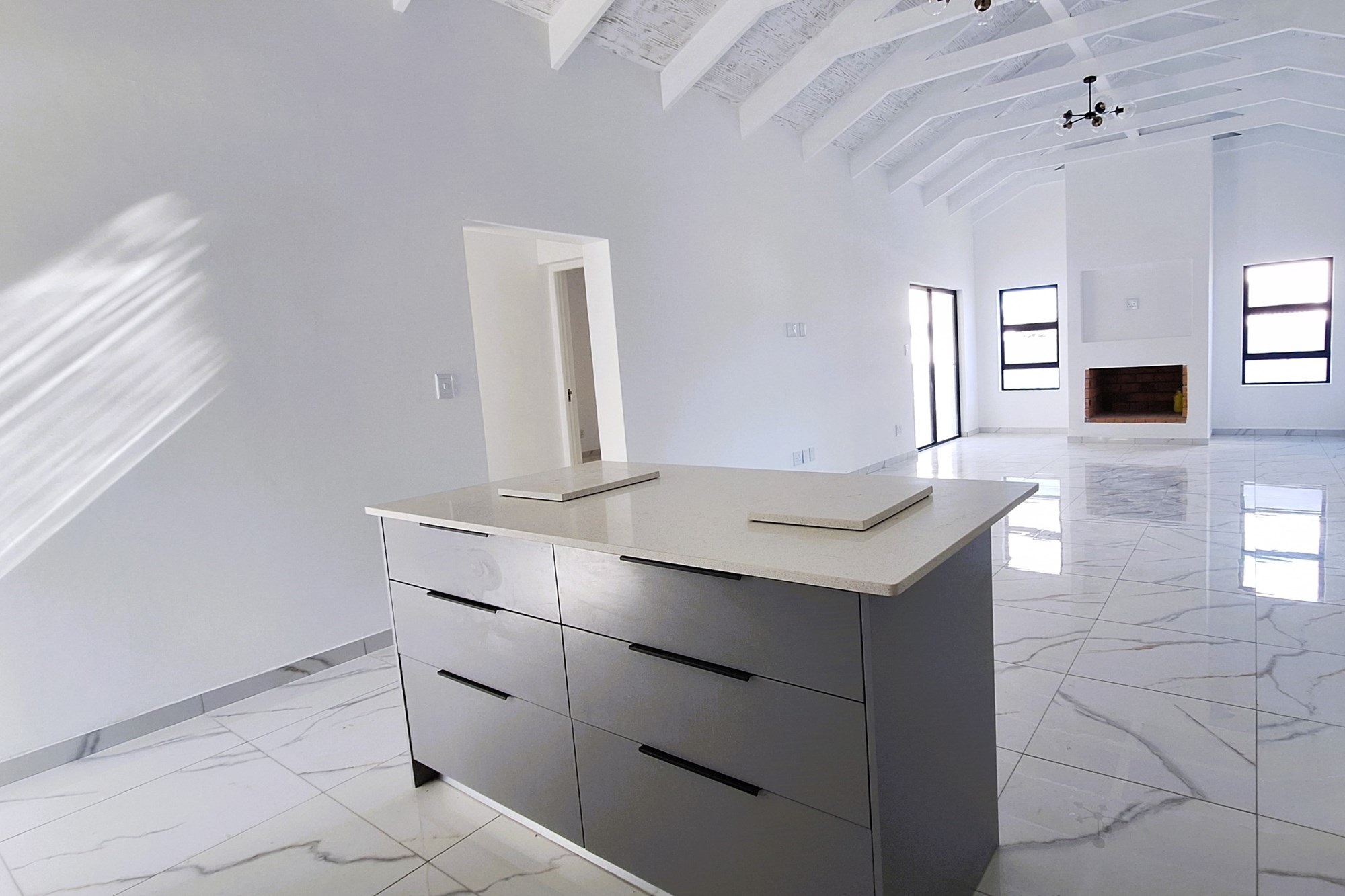 Step through the front door and be captivated by theexpansive open-plan living area, highlighted by soaringhigh-beam ceilingsand elegantmodern finishesthroughout. Thewell-appointed kitchenoffers sleek cabinetry,ample built-in cupboard space, agas hob and oven, and aseparate scullery/laundry areawith access to a drying yard – perfect for the culinary enthusiast.
