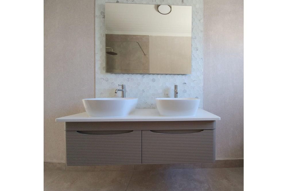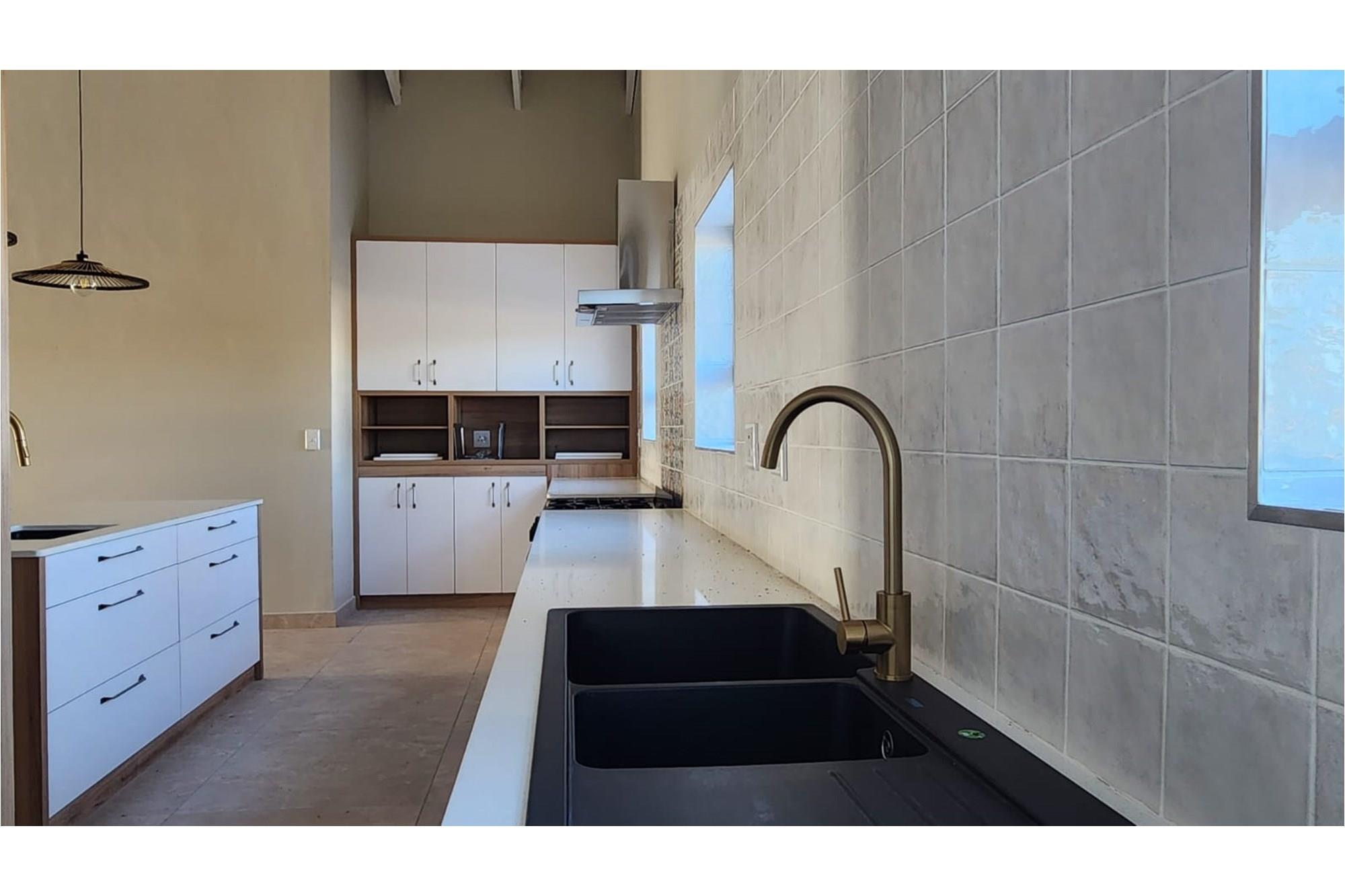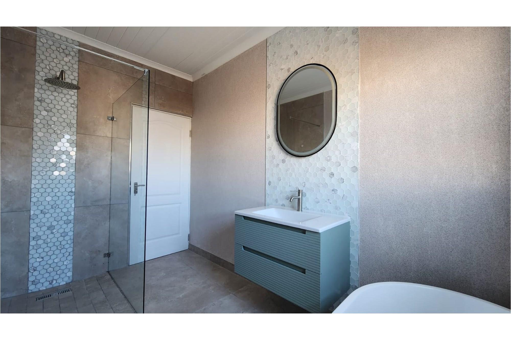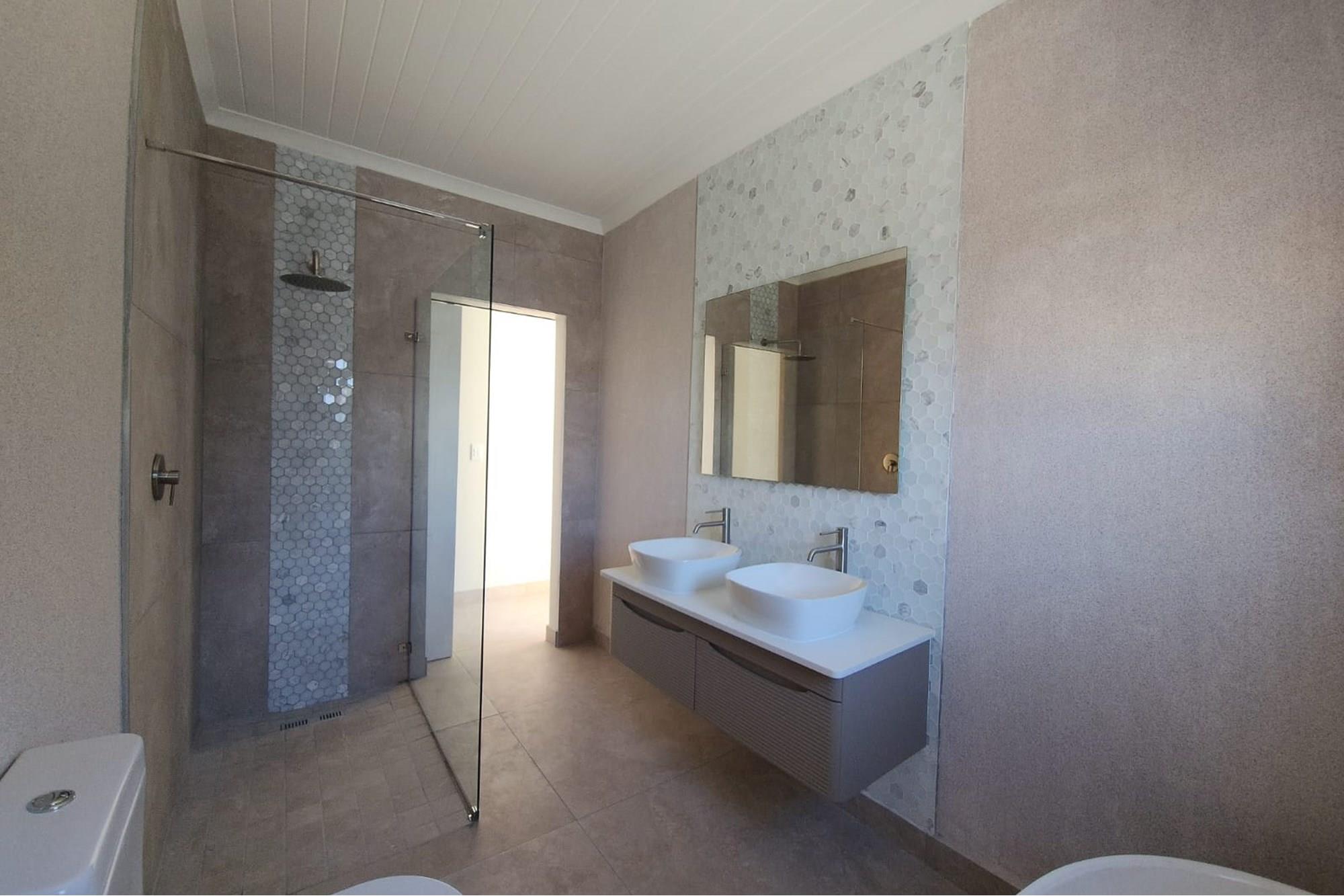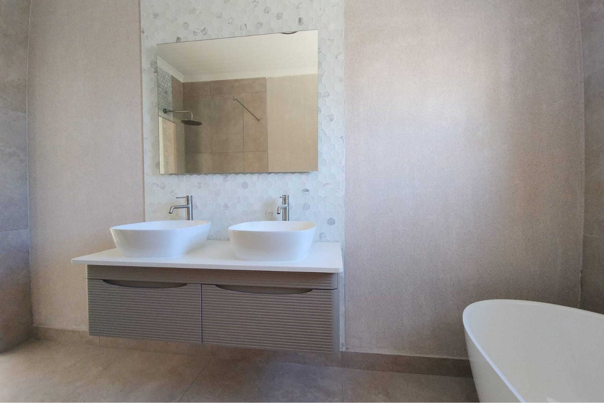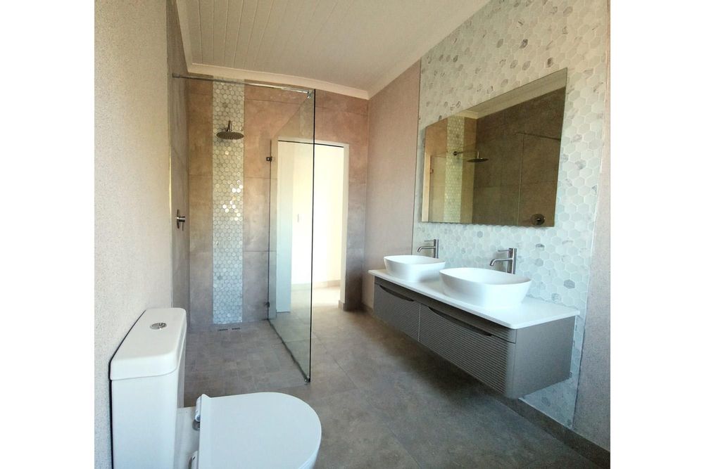 The master bedroom has a full en-suite bathroom and built-in cupboards. Two guest bedrooms with built-in cupboards share a family bathroom. Both bathrooms are superbly finished with an ultra-modern touch.
