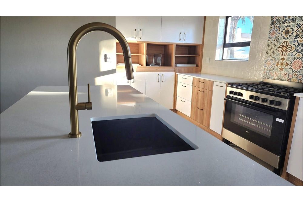 Revel in the spacious layout of this home with its open-plan living area adorned with high volume ceilings, modern kitchen with Caesar stone surfaces, AEG gas hob, electric oven, breakfast nook and an abundance of cupboard space.