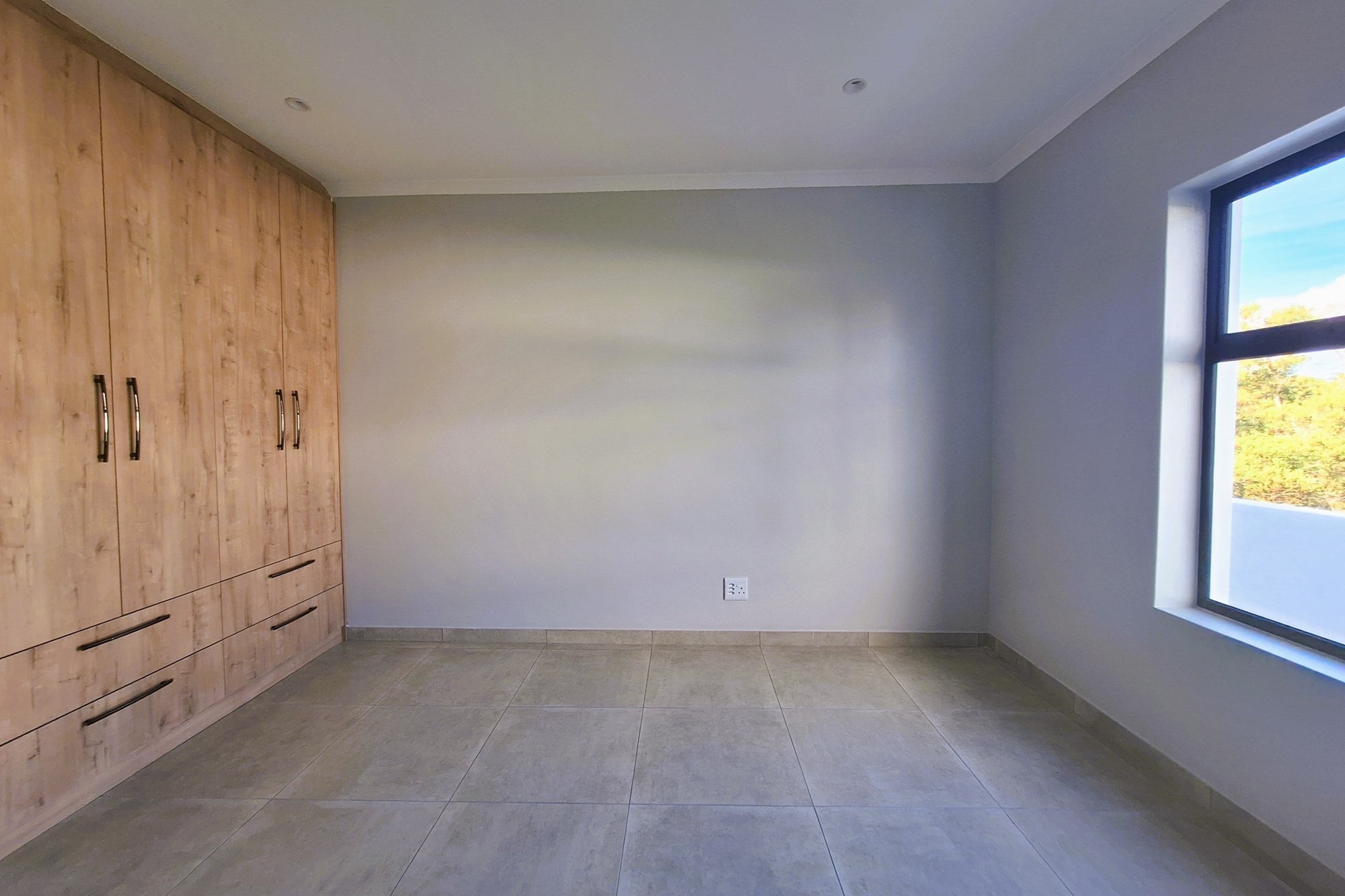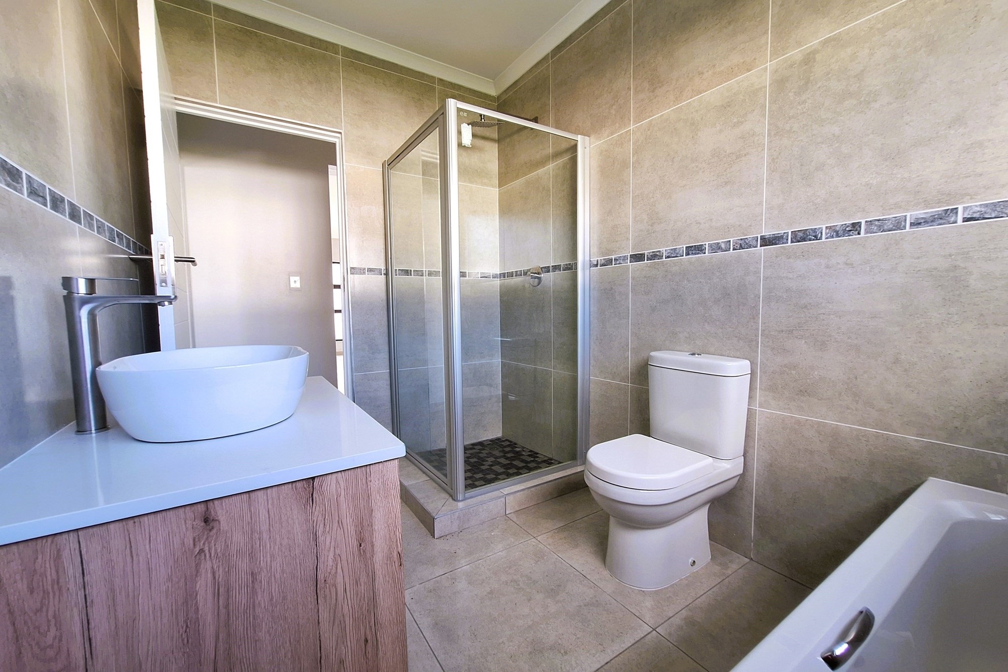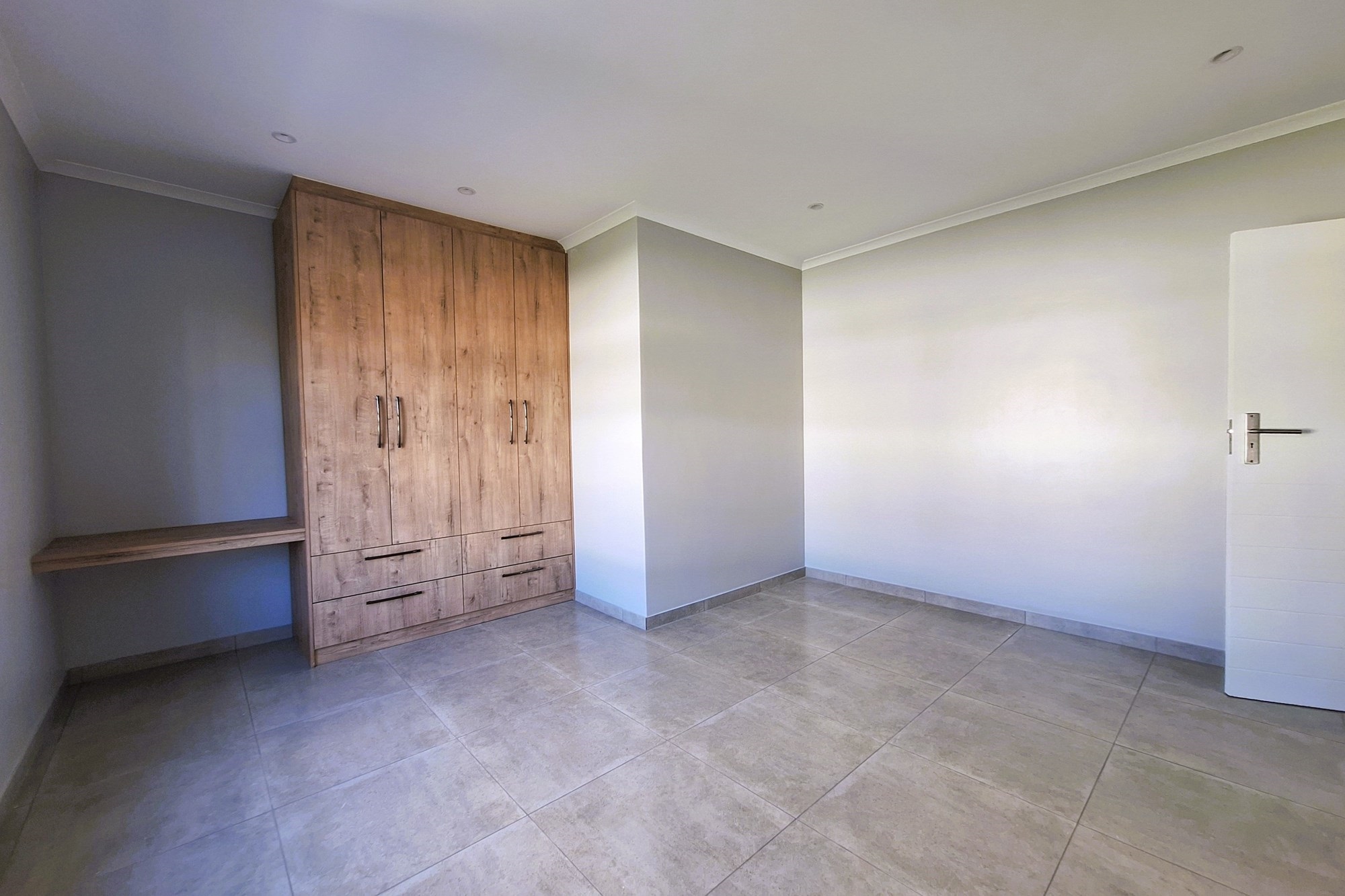 The generous main bedroom is a private retreat, boasting ample built-in cupboards and a well-designed en-suite bathroom with a large shower, toilet, and basin.