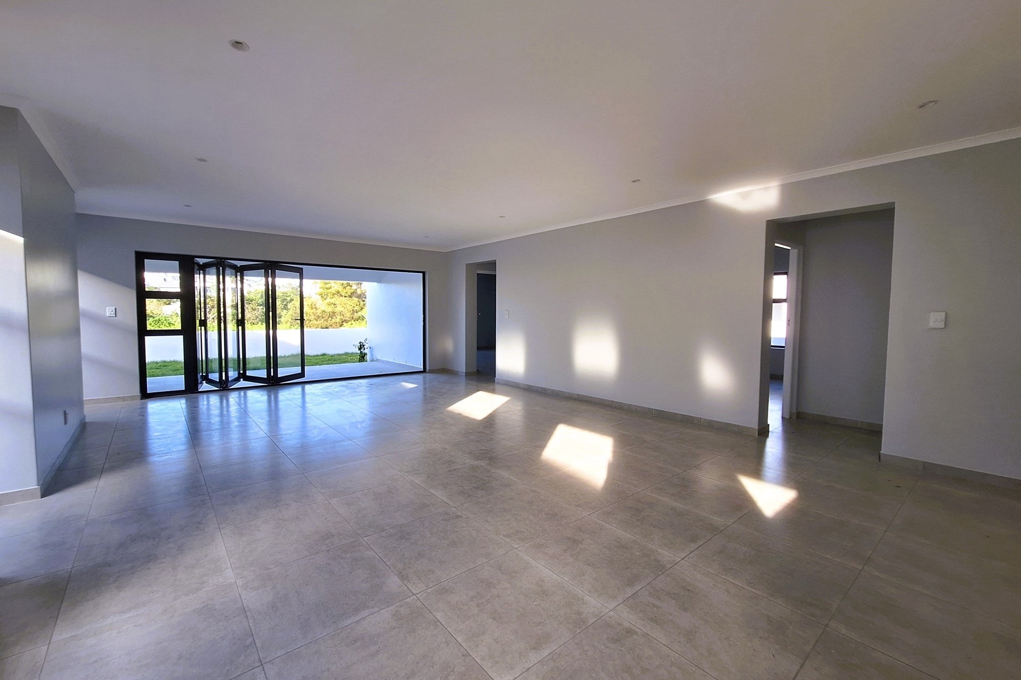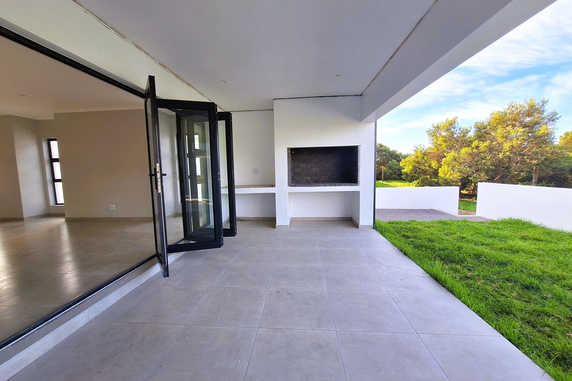 An inviting entrance lobby welcomes you into a large, well-lit living and dining area, where ample natural light and sliding doors create a bright and airy atmosphere. The living space flows directly onto a covered patio with a built-in braai and pergola – perfect for enjoying the region`s renowned culinary delights.