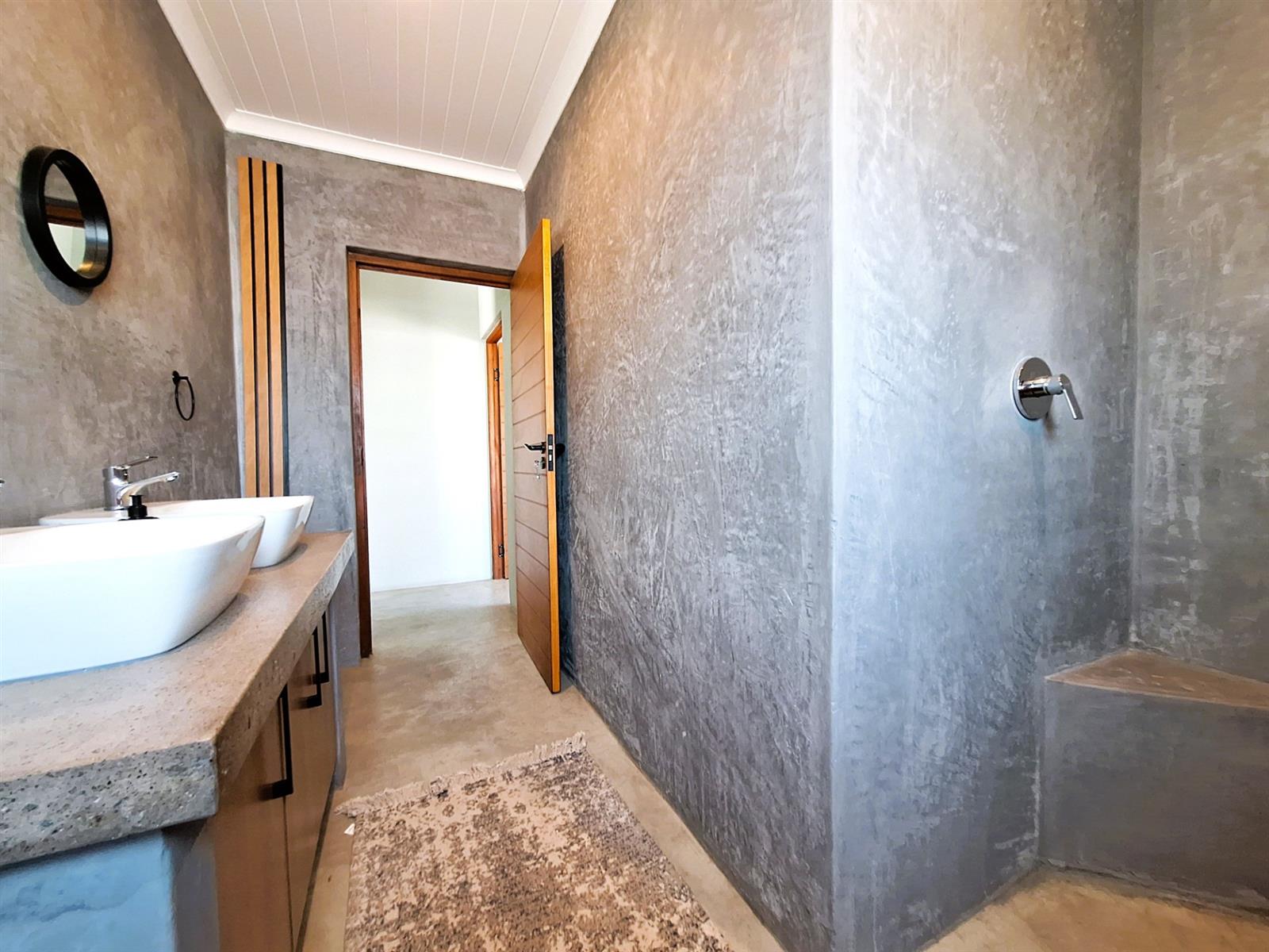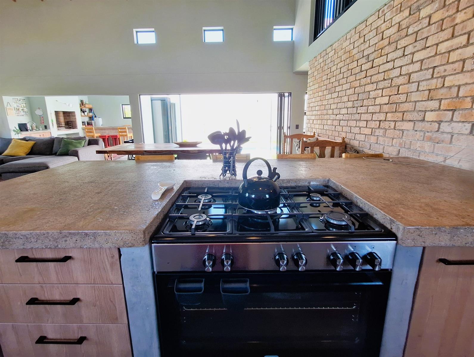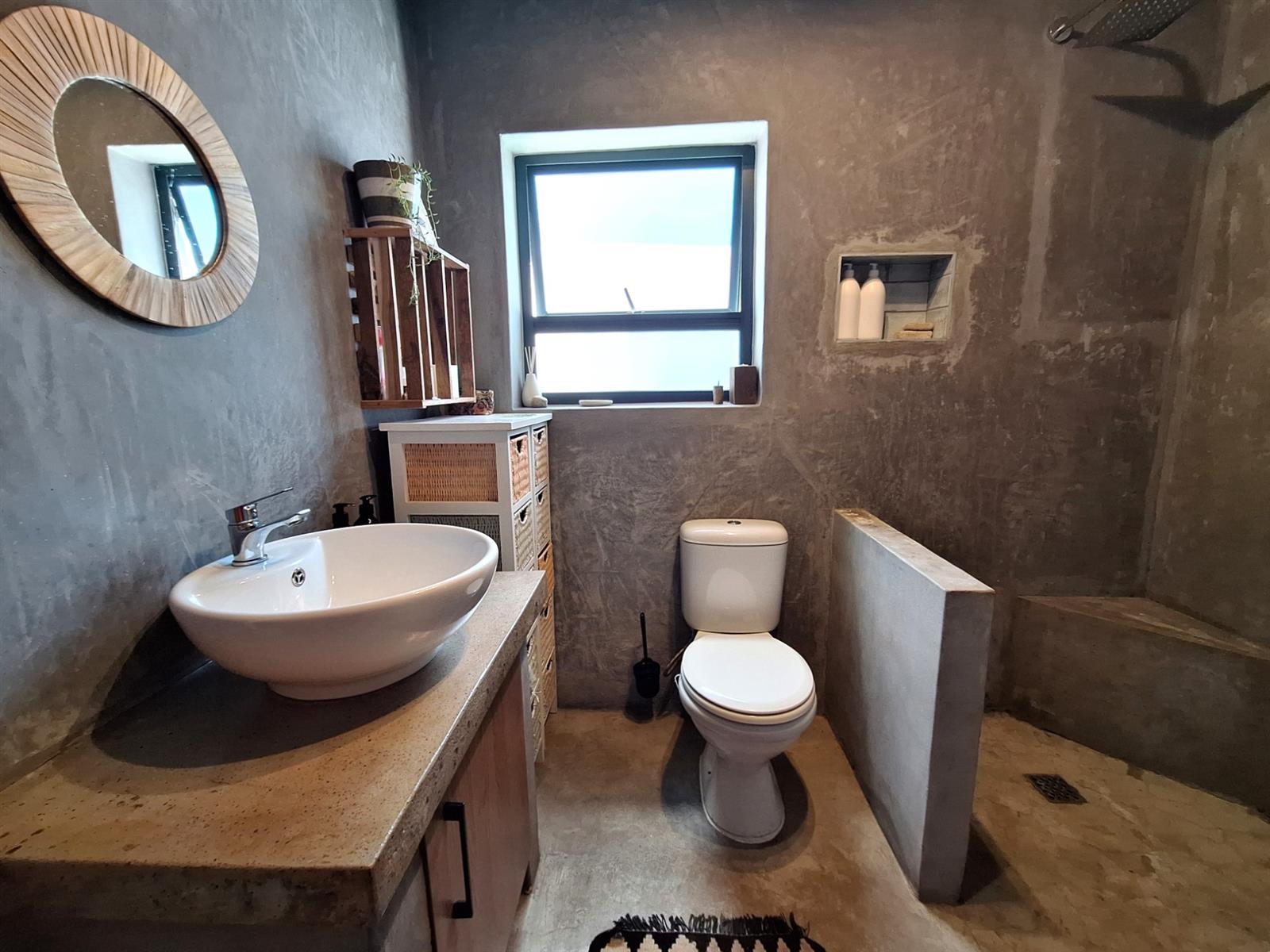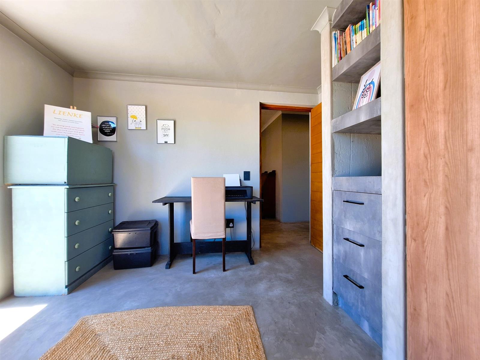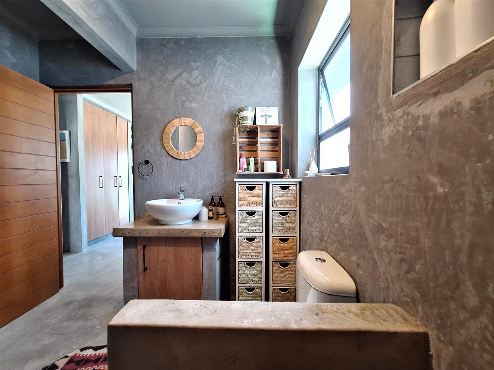 The home’s layout wraps smartly around a central pool, giving it a relaxed resort feel in your own backyard. Downstairs, there`s a handy guest suite with its own full en-suite and sliding doors straight to the pool and garden—great for visitors or extended family. The open-plan kitchen and living area has those lovely high ceilings, flowing into a modern industrial-style kitchen with a big centre island, plenty of cupboards, a pantry, and matching counters. Stacker doors open to the built-in braai, bar area, and pool for seamless entertaining. There is also a guest toilet downstairs for convenience. A separate scullery, laundry, double linen cupboard, and paved drying yard help to keep everything running smoothly.
