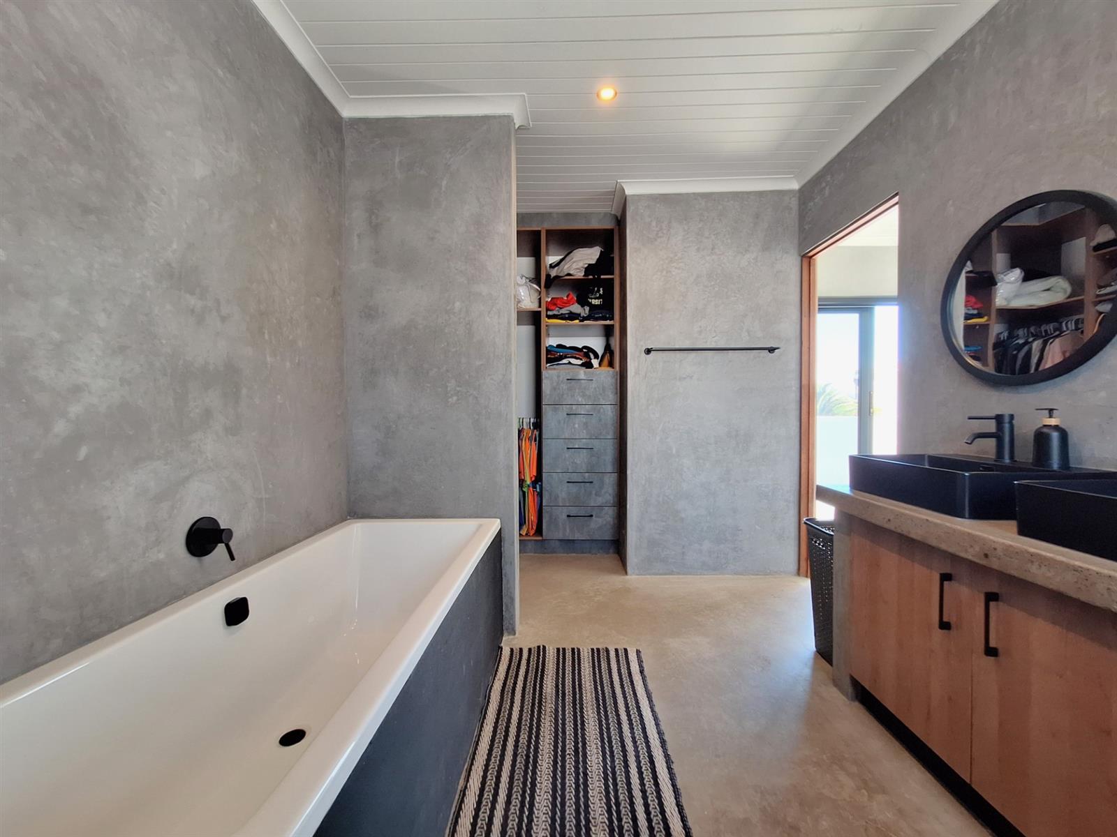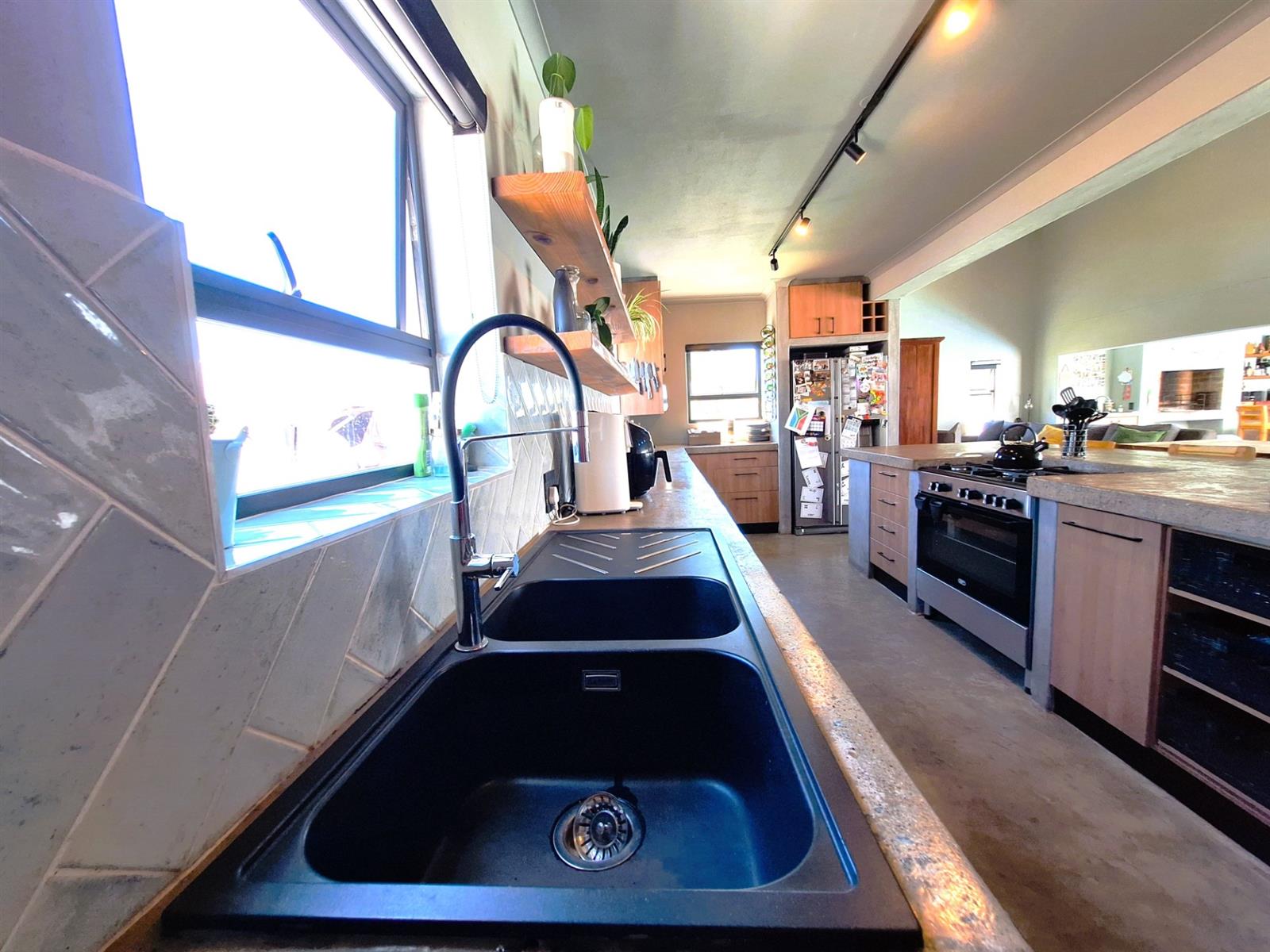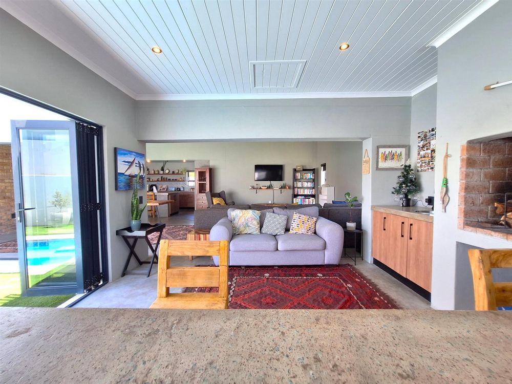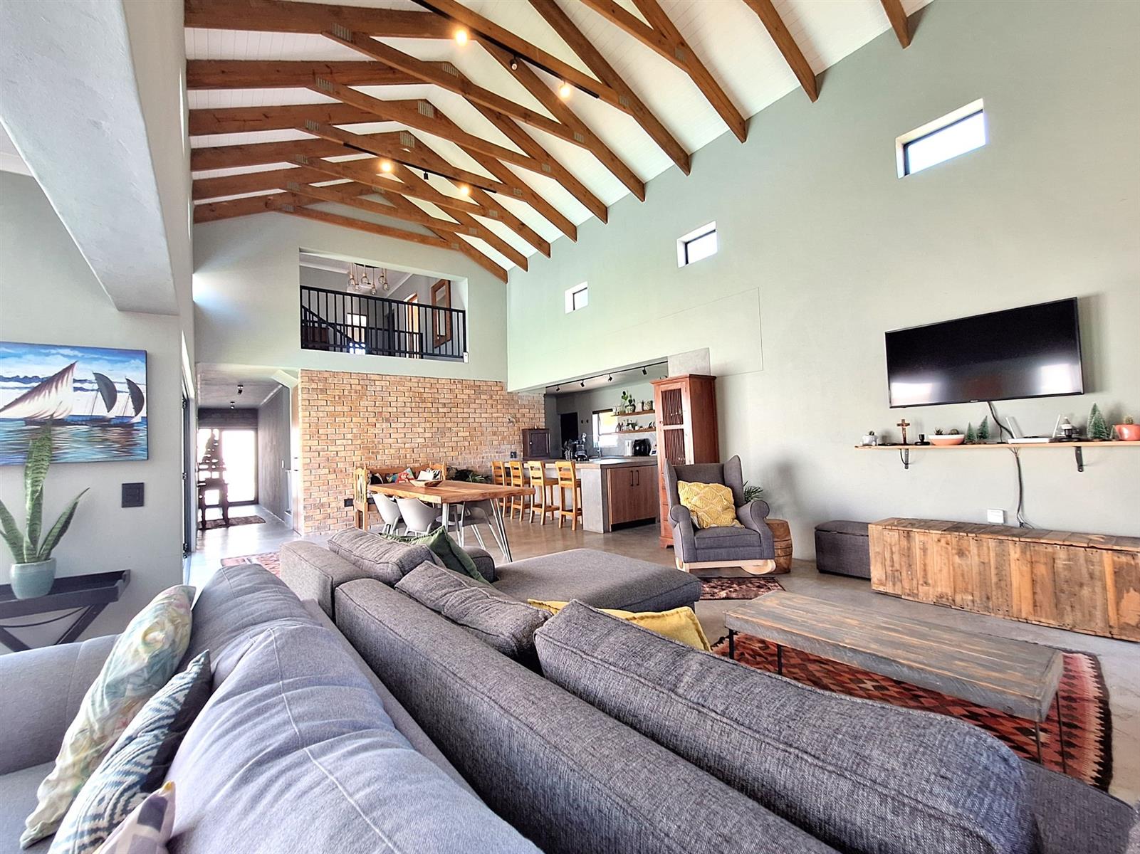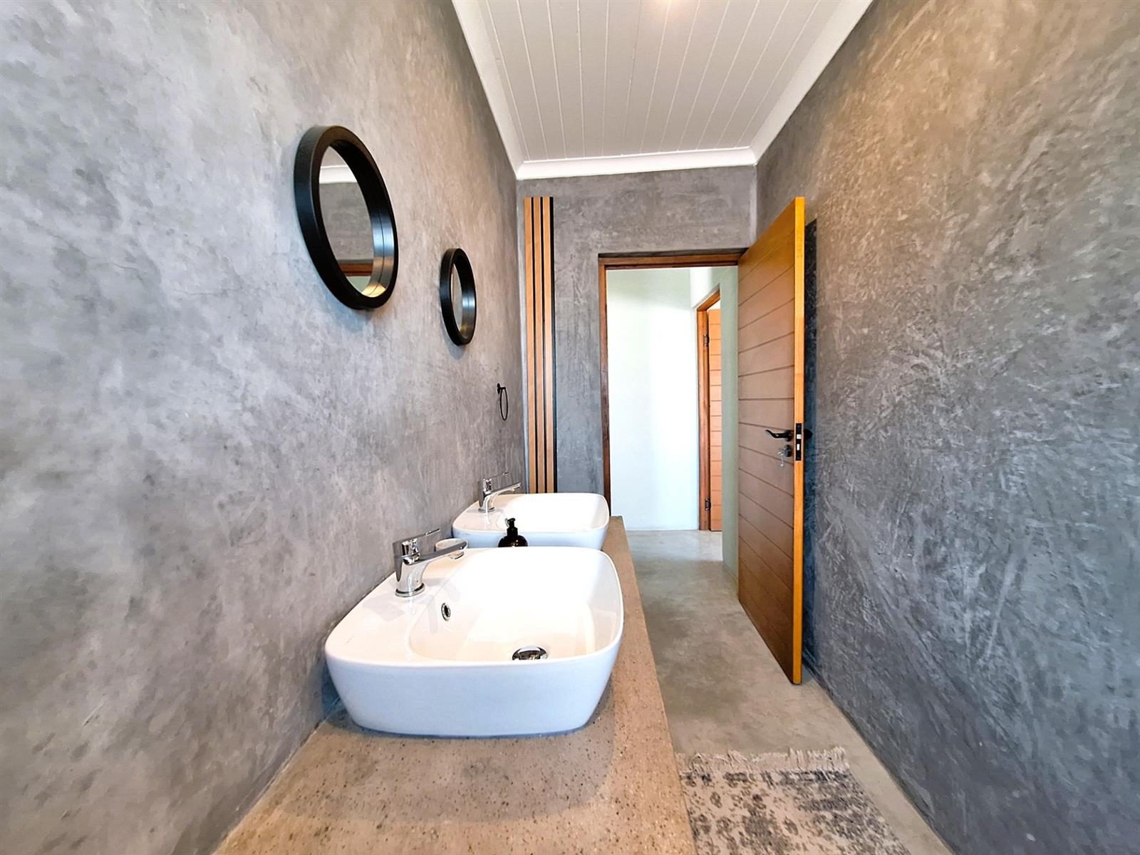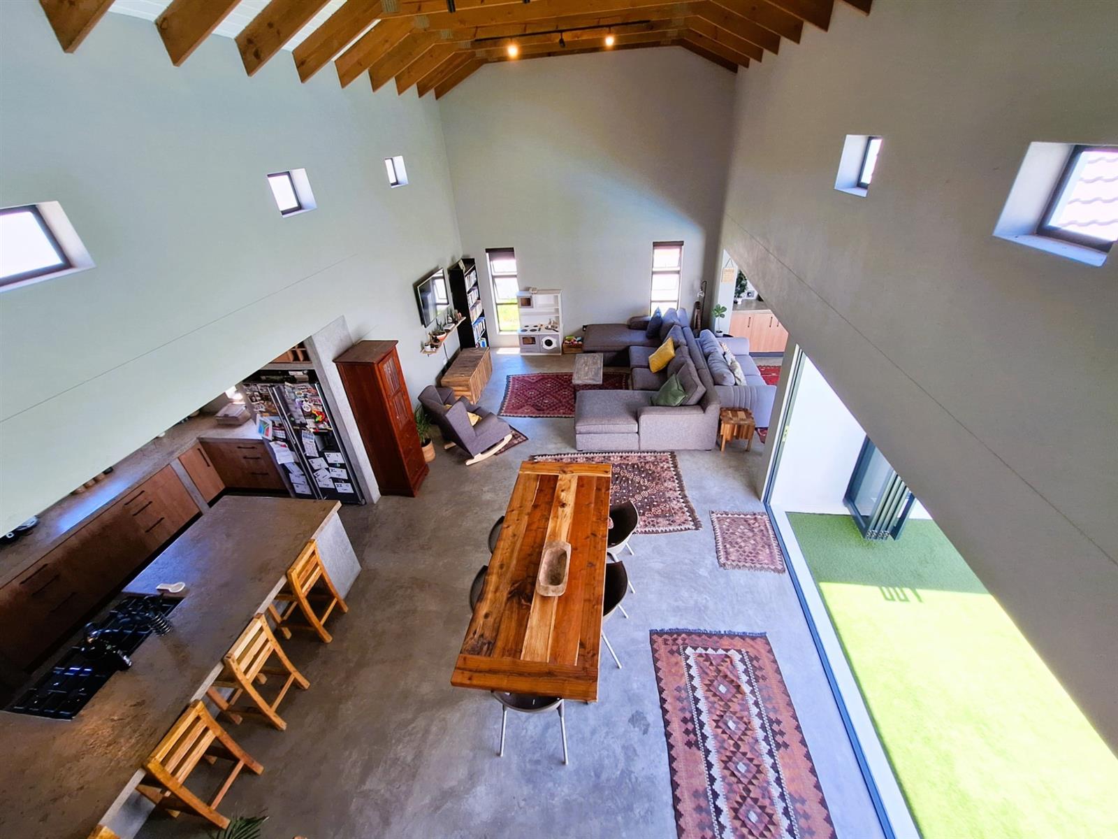 The home’s layout wraps smartly around a central pool, giving it a relaxed resort feel in your own backyard. Downstairs, there`s a handy guest suite with its own full en-suite and sliding doors straight to the pool and garden—great for visitors or extended family. The open-plan kitchen and living area has those lovely high ceilings, flowing into a modern industrial-style kitchen with a big centre island, plenty of cupboards, a pantry, and matching counters. Stacker doors open to the built-in braai, bar area, and pool for seamless entertaining. There is also a guest toilet downstairs for convenience. A separate scullery, laundry, double linen cupboard, and paved drying yard help to keep everything running smoothly.