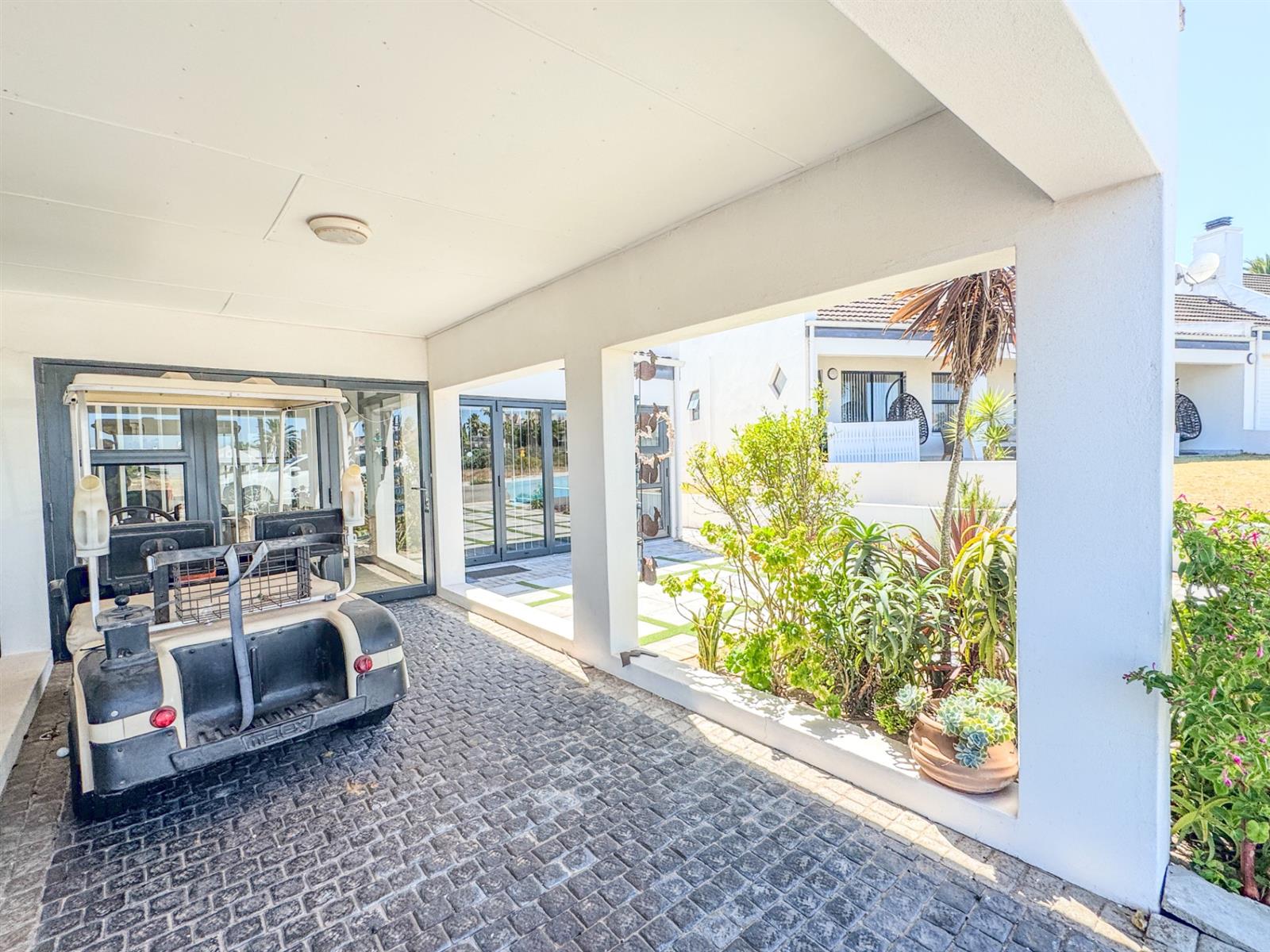 ·Living Space: Light-filled lounge with stacker doors opening to the garden and golf course views