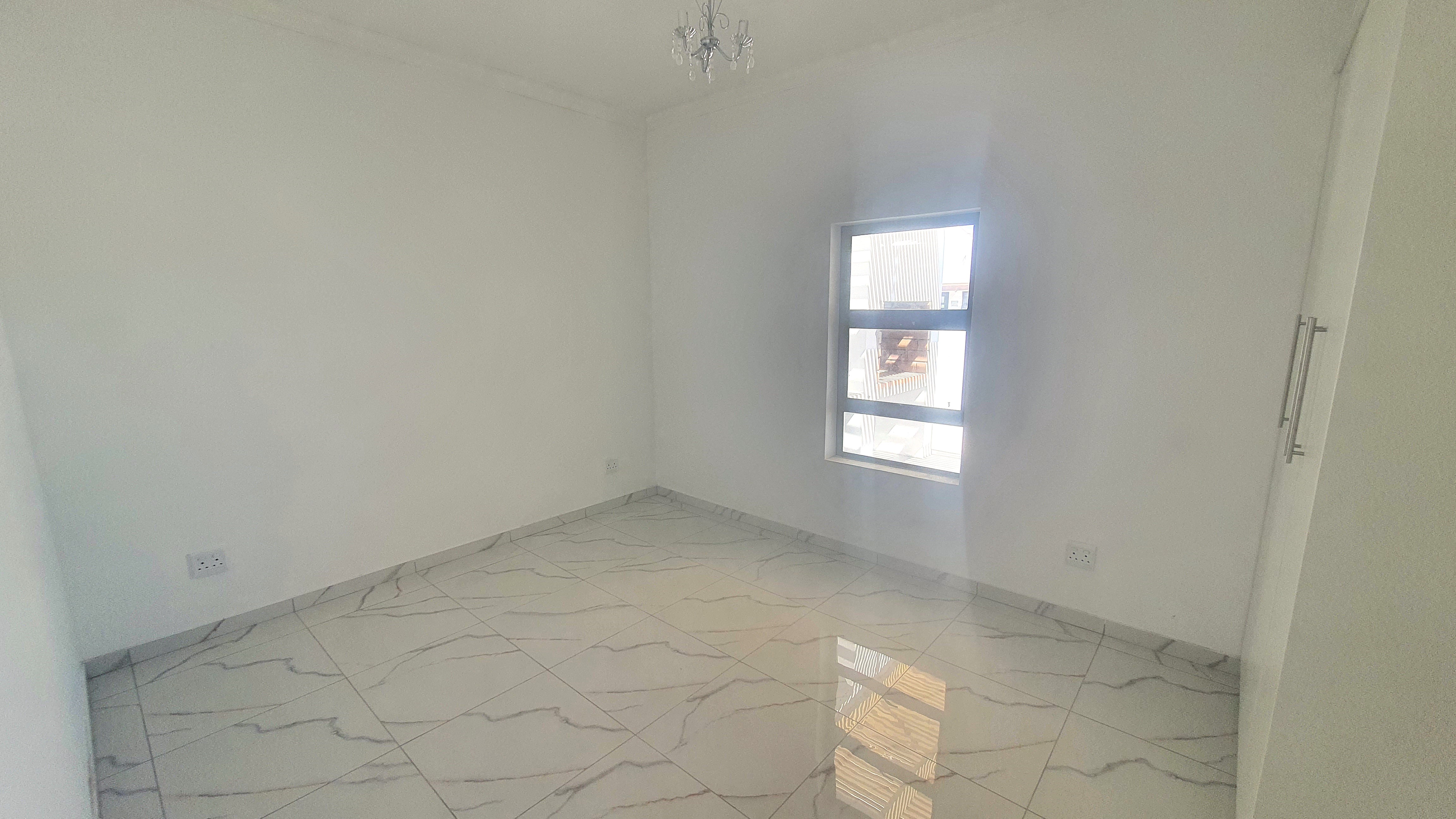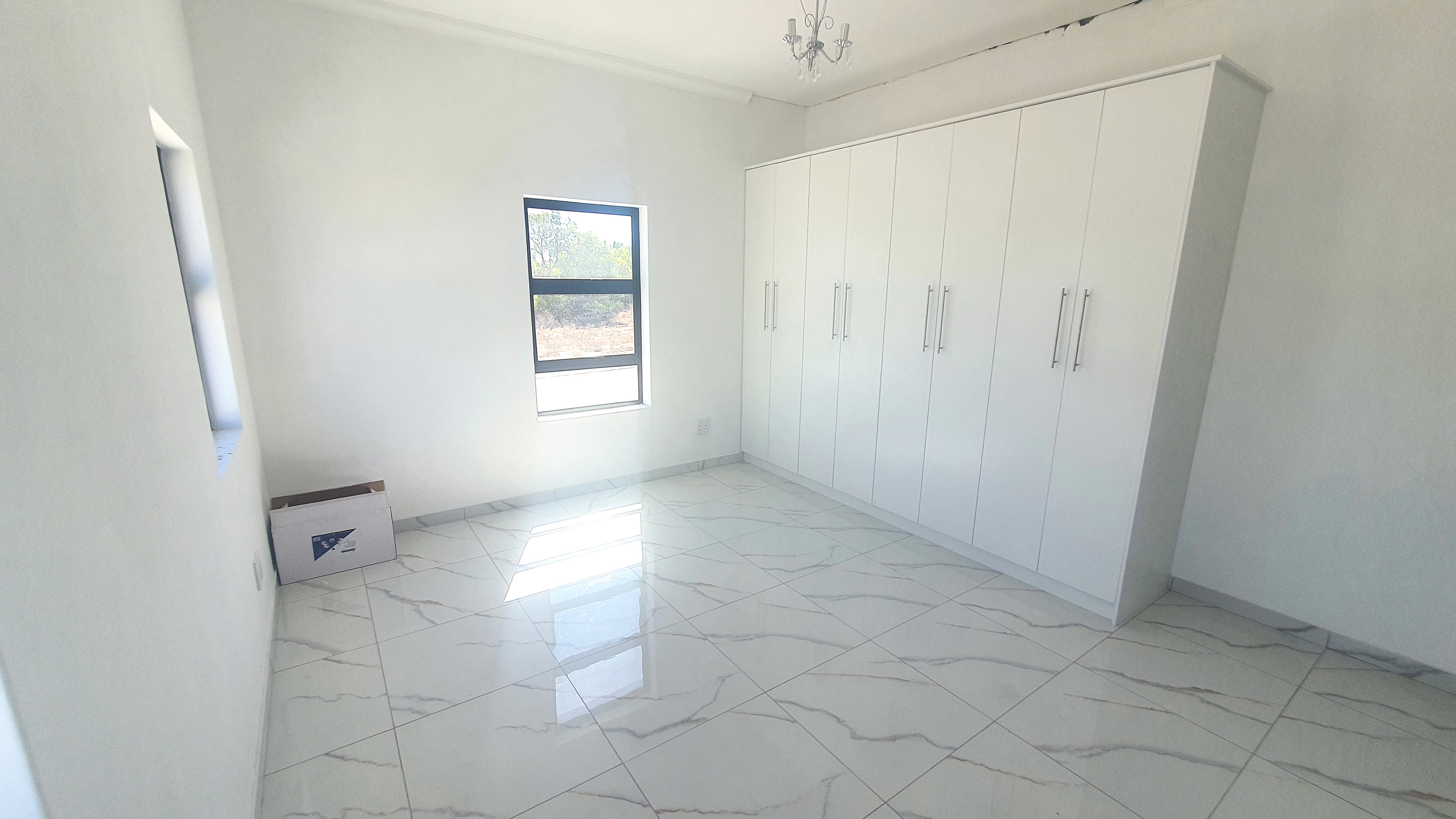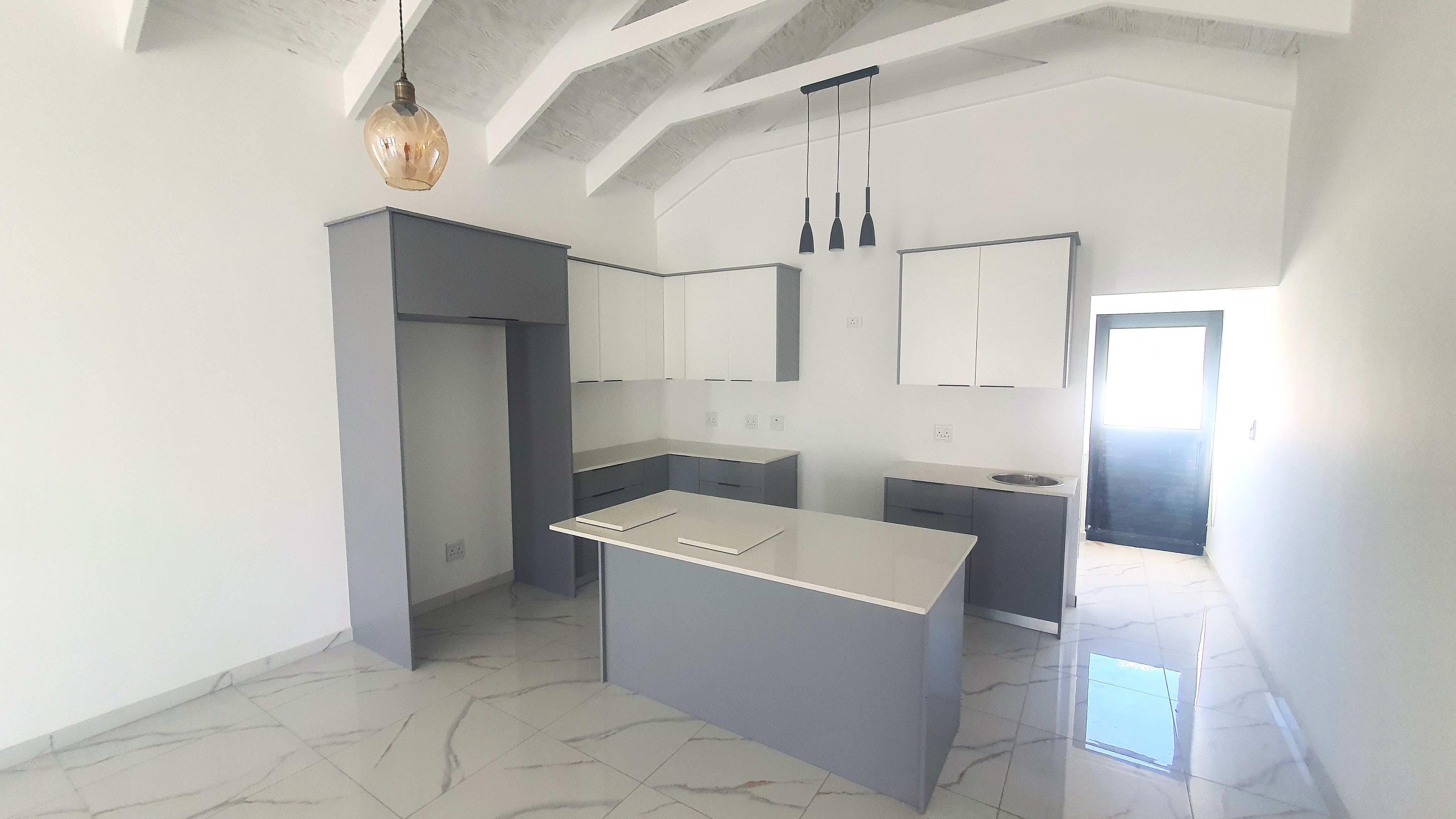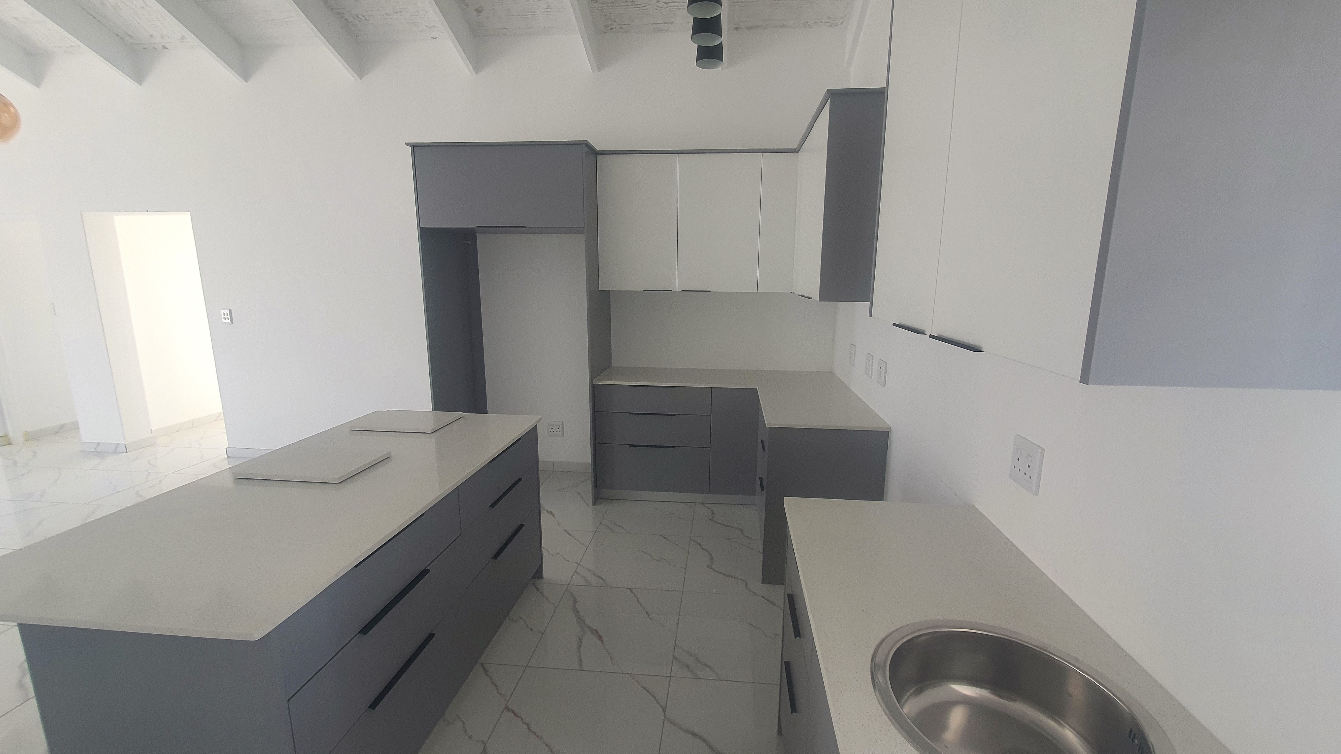 As you enter the home, you are greeted by an expansive open-plan high-beam ceiling living and kitchen area. This luxurious yet homely space is filled with stylish modern features, including sleek cabinetry, high-end finishes and lighting, ensuring comfort and elegance. The kitchen is well-equipped with ample cupboard space, a gas hob and an oven, perfect for any cooking enthusiast. Additionally, a scullery provides convenience. There is direct access to the automated double garage, further enhancing the home’s practical layout.