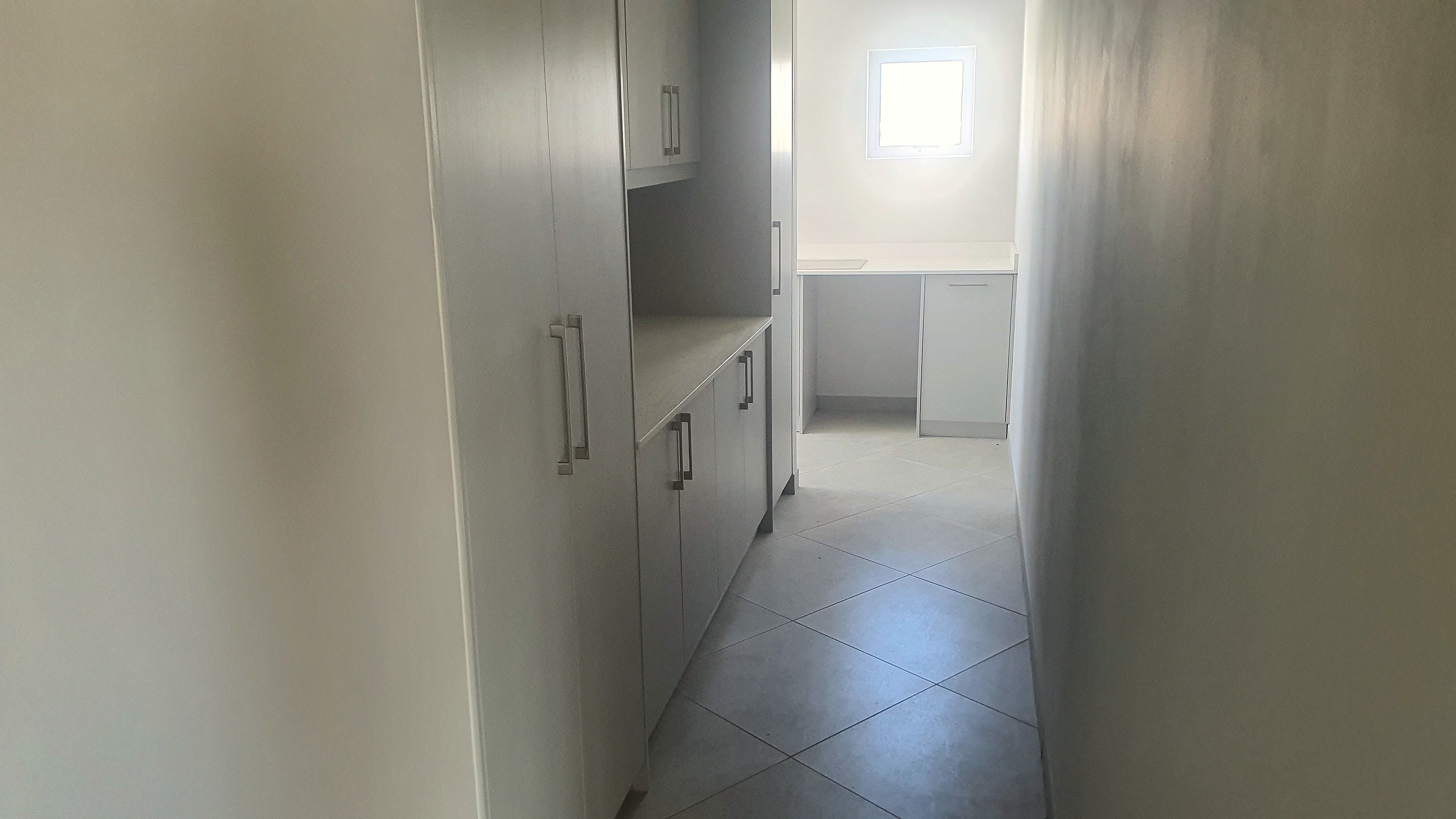As you enter the home, you are greeted by an expansive open-plan high-beam ceiling living area. This luxurious yet homely space is filled with stylish modern features, including sleek cabinetry, high-end finishes, and lighting, ensuring comfort and elegance. The kitchen is well-equipped with ample cupboard space, a gas hob and oven, perfect for any cooking enthusiast, with additional cupboard areas & scullery providing convenient storage with direct access to the automated double garage, further enhancing the home’s practical layout.