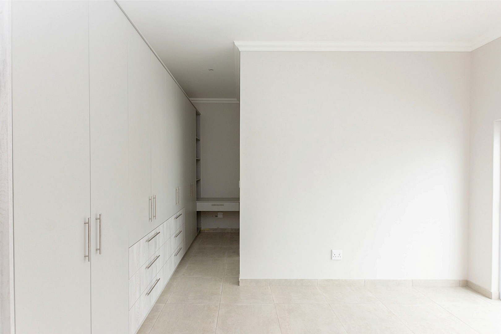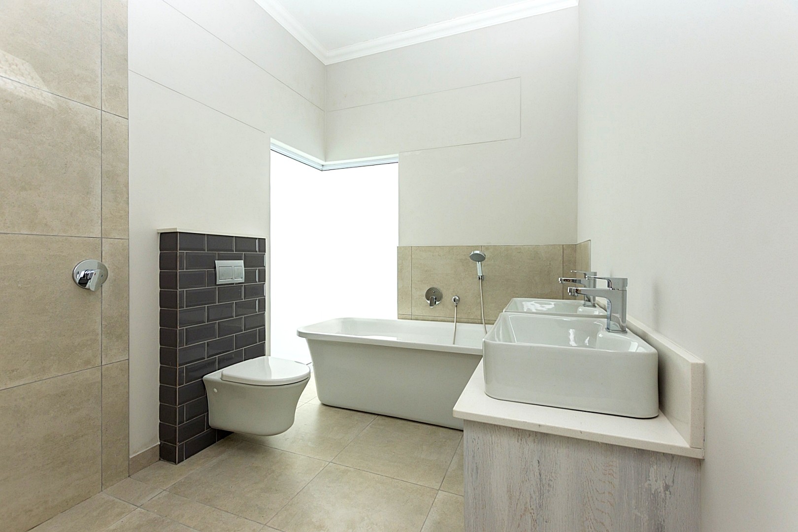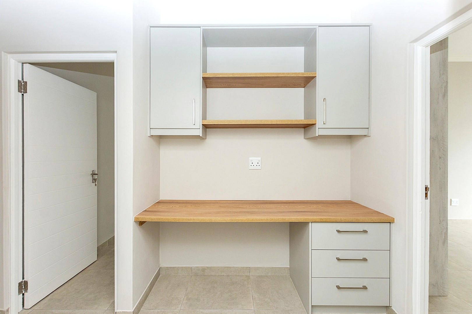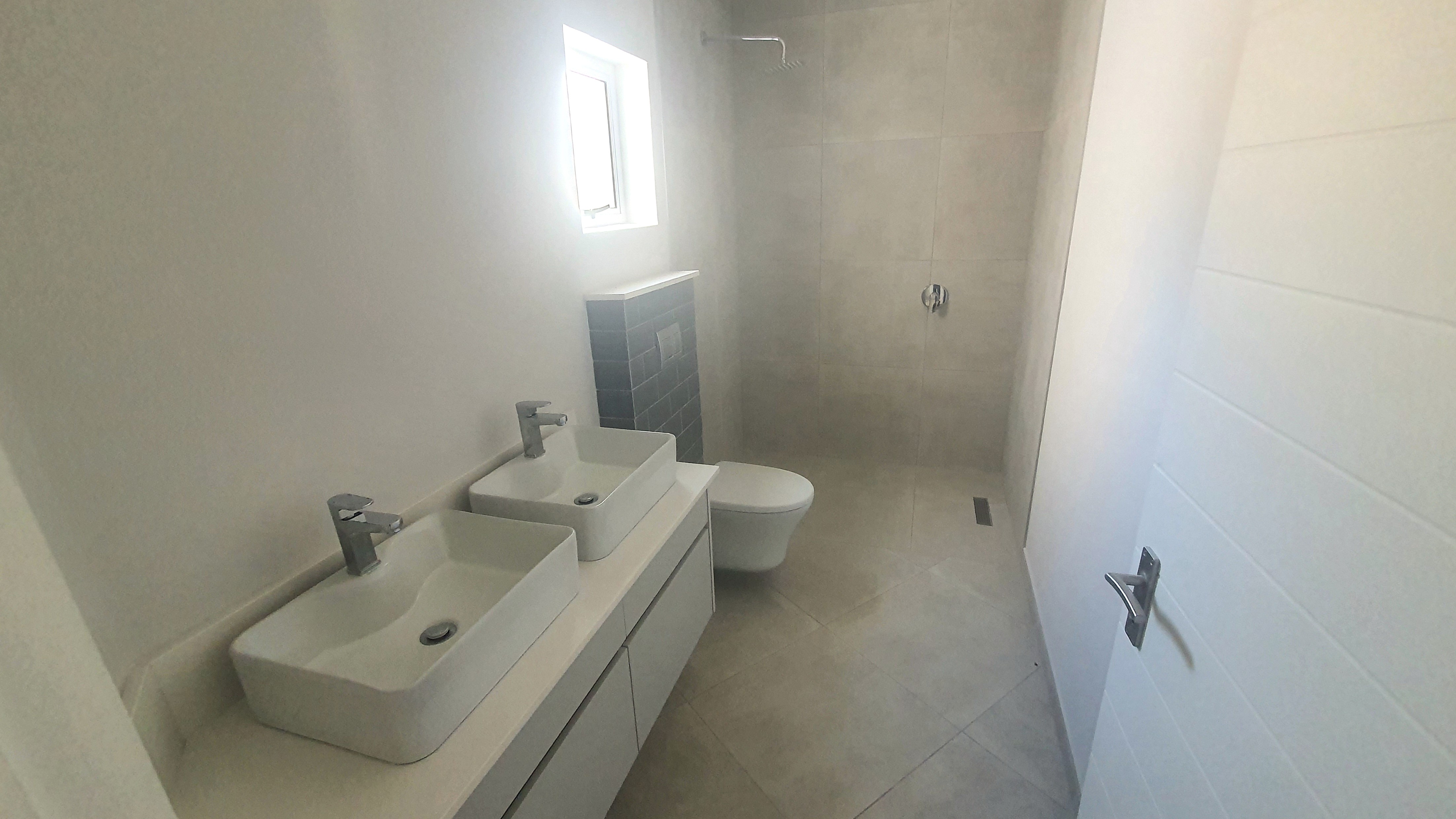 The master suite includes a beautifully designed en-suite bathroom with premium fittings, including a double basin, creating a serene and luxurious experience. The two additional bedrooms offer built-in cupboards and are serviced by a family bathroom.