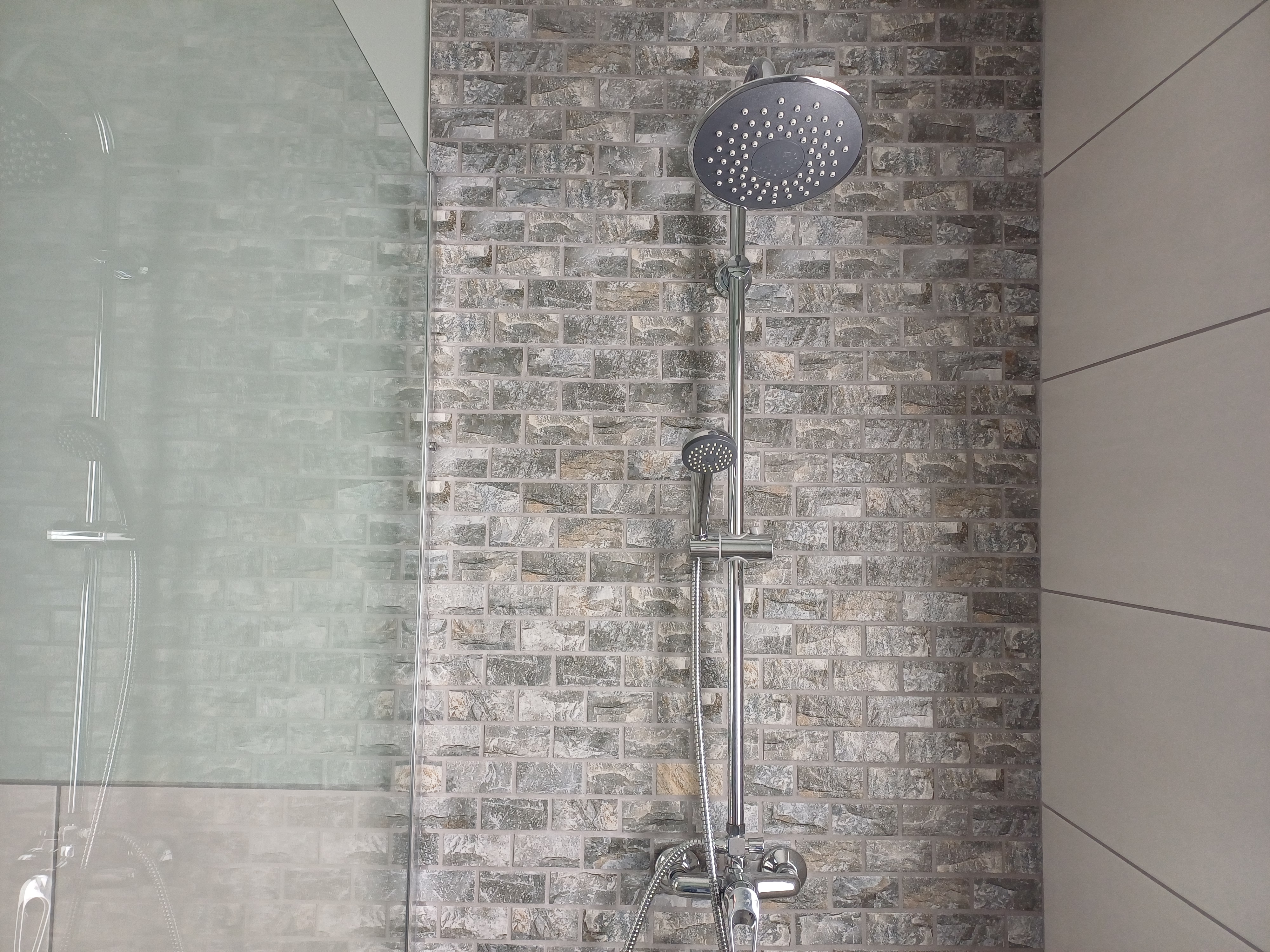 Main bedroom with an-suite bathroom and sliding door that leads outdoor to garden