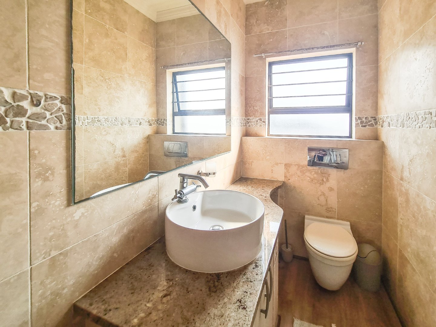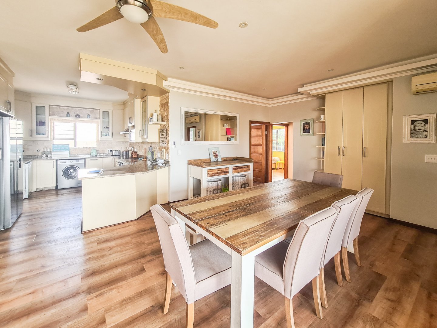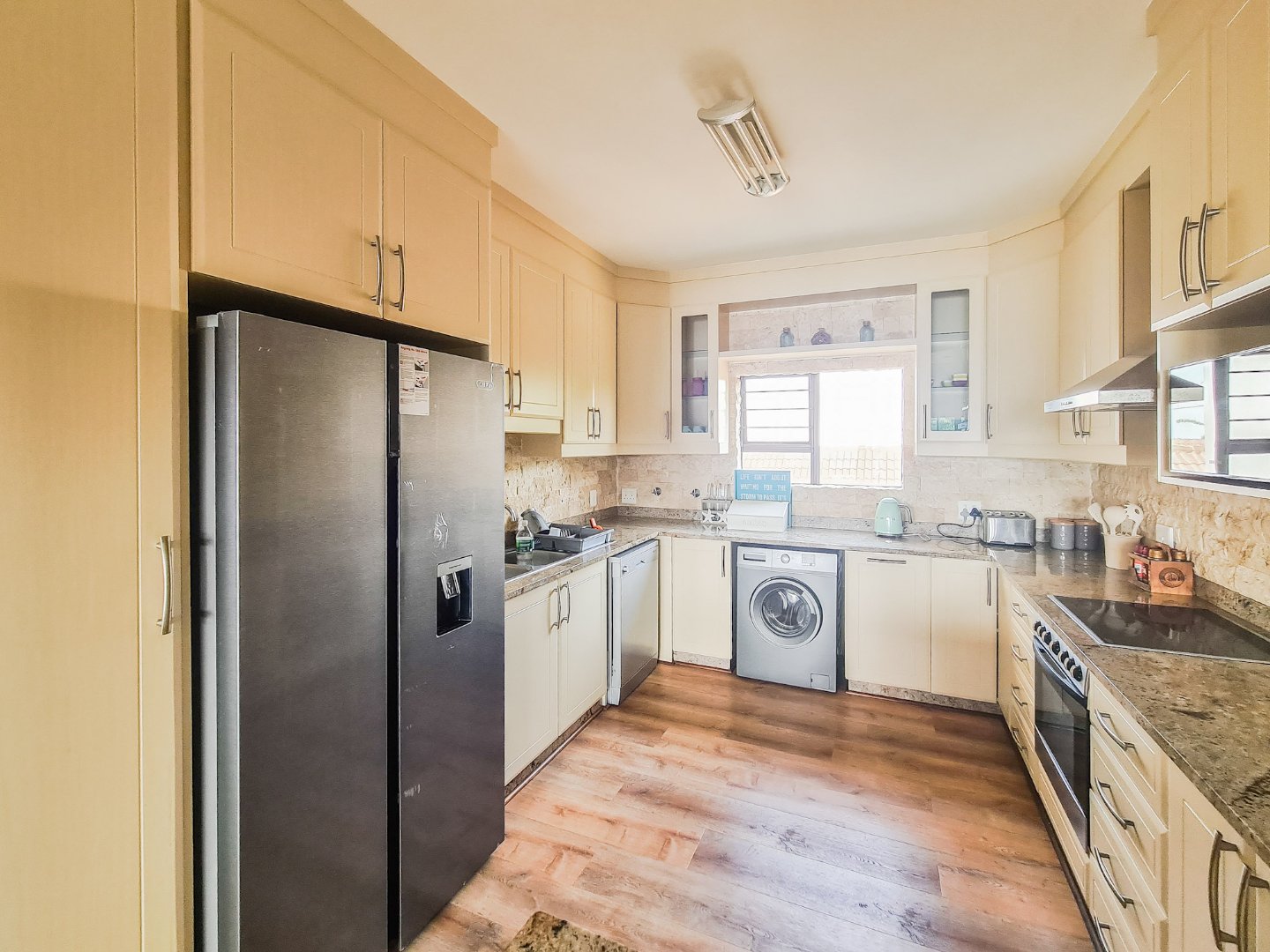 The apartment is open plan designed, has fully laminated flooring and is neat as a pin. The kitchen boasts granite tops, ample cupboard space and a breakfast nook. The lounge and dining area are spacious and leads, via sliding doors, to the balcony, which has sea breaker views and a built-in braai, perfect combination for outside dining. The bedrooms are well sized and all have built in cupboards. The main bedroom has its own main full en-suite and also opens to the balcony via sliding doors. The unit has its own designated lock up and go garage and there is space for guest parking.