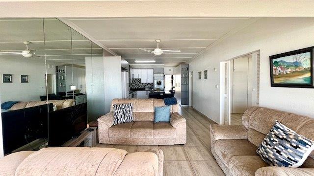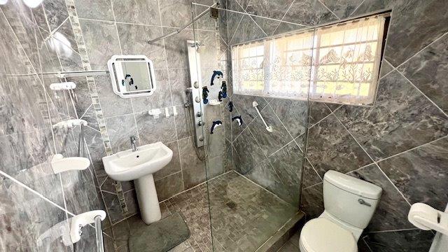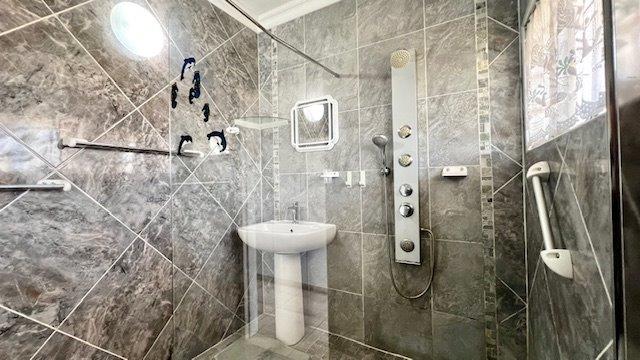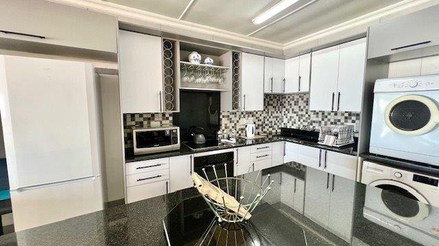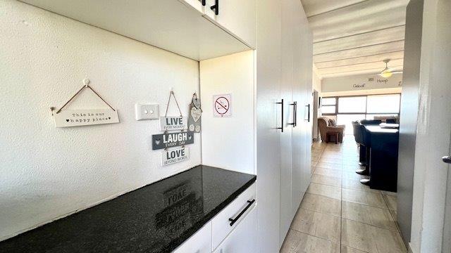 There is a newly renovated kitchen with beautiful fitted cupboards, granite tops with centre island, this flows into the living area where you can enjoy breathtaking sea-views.