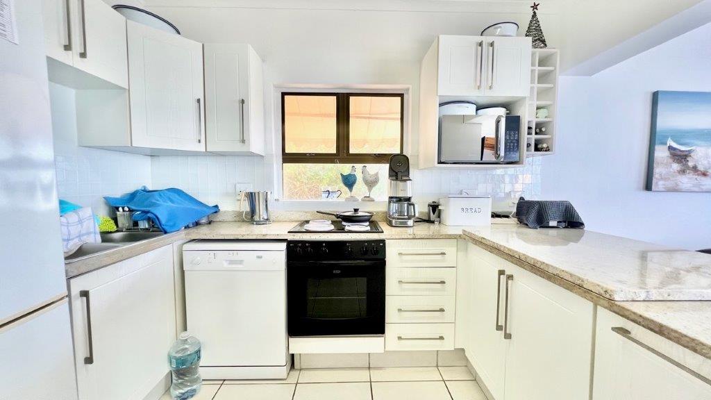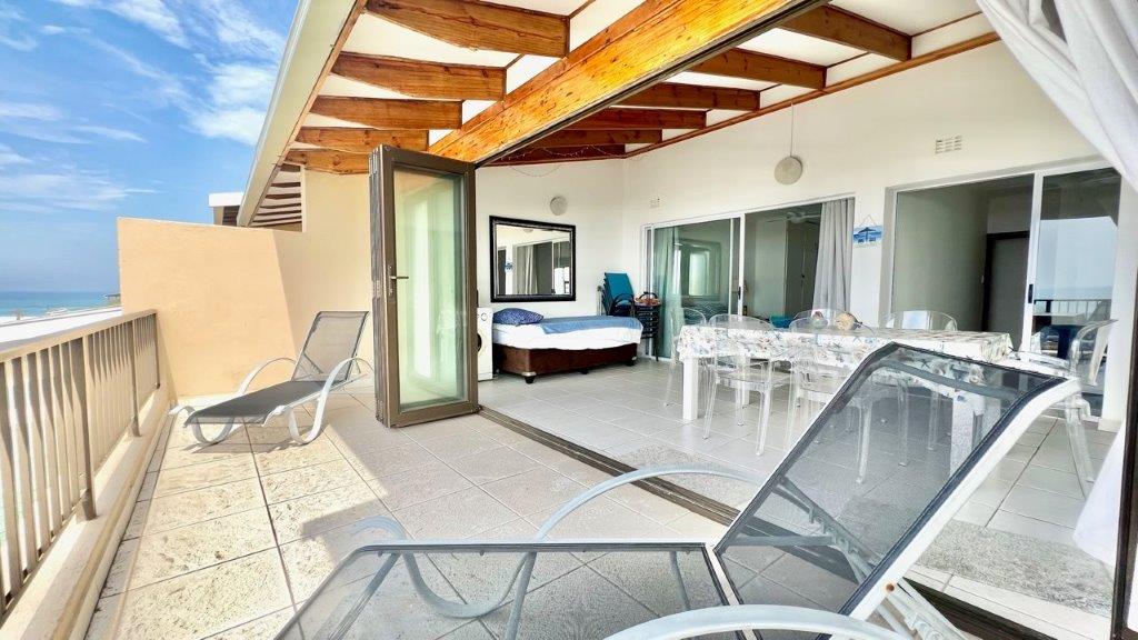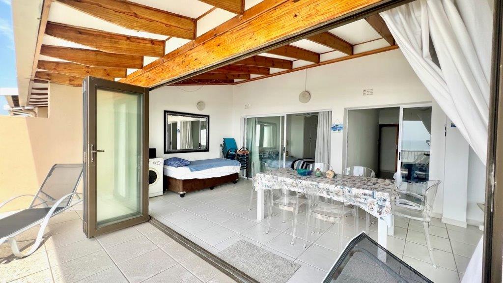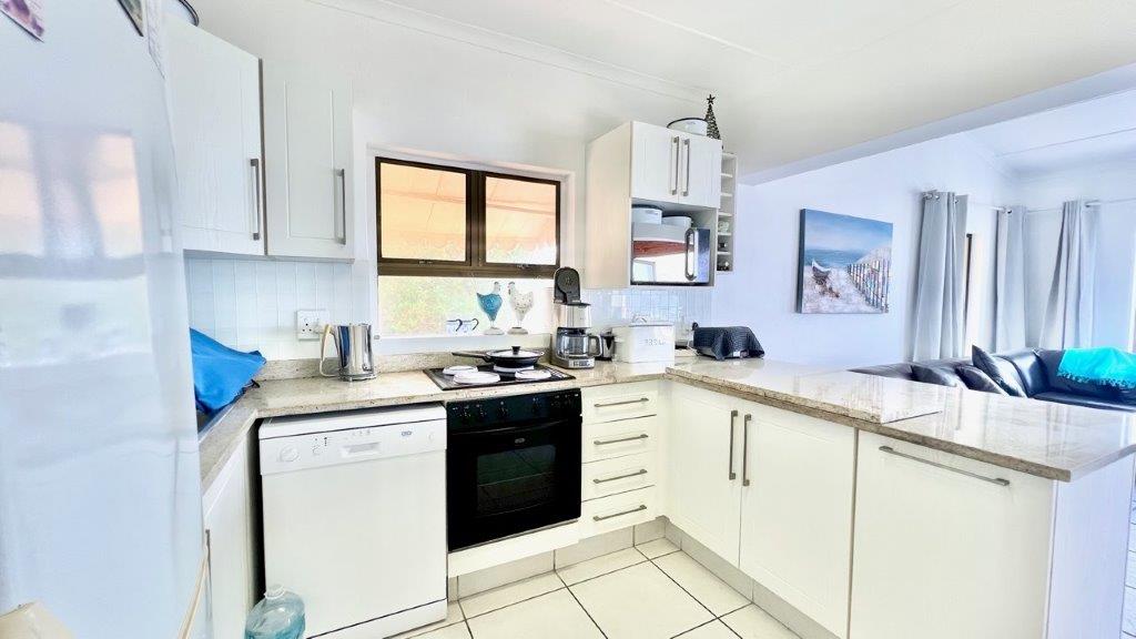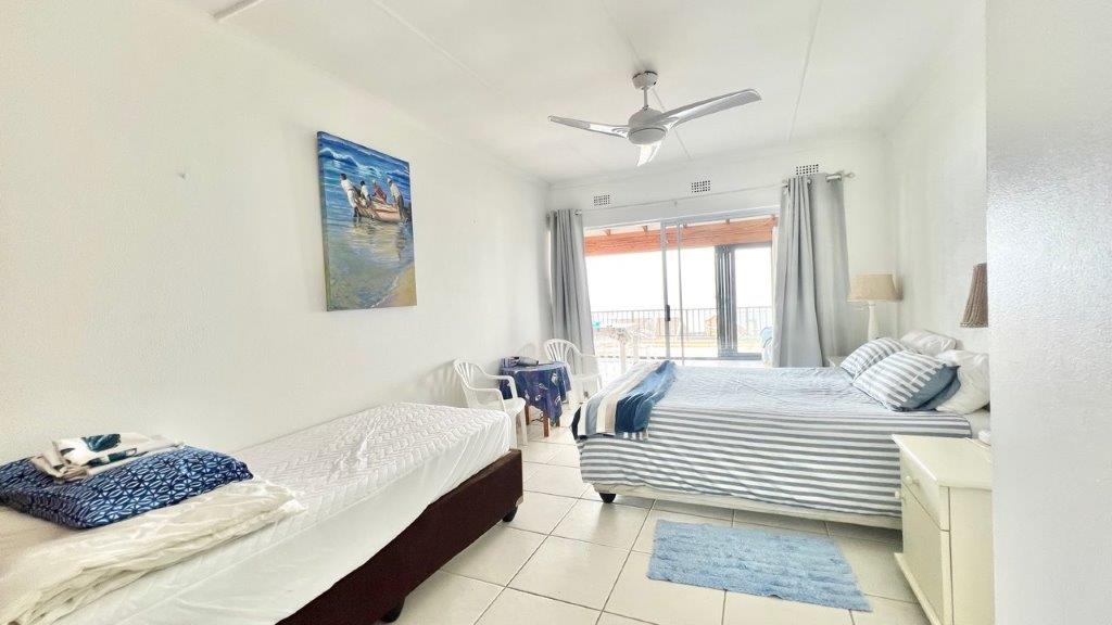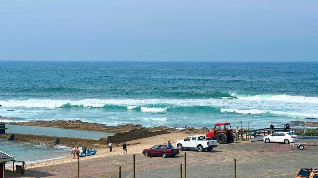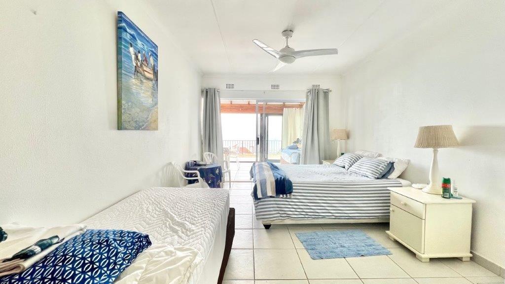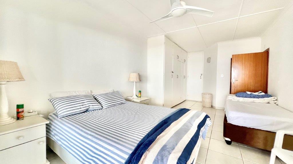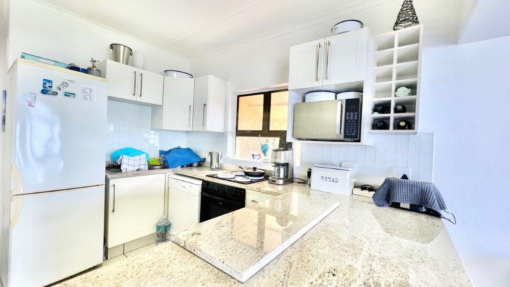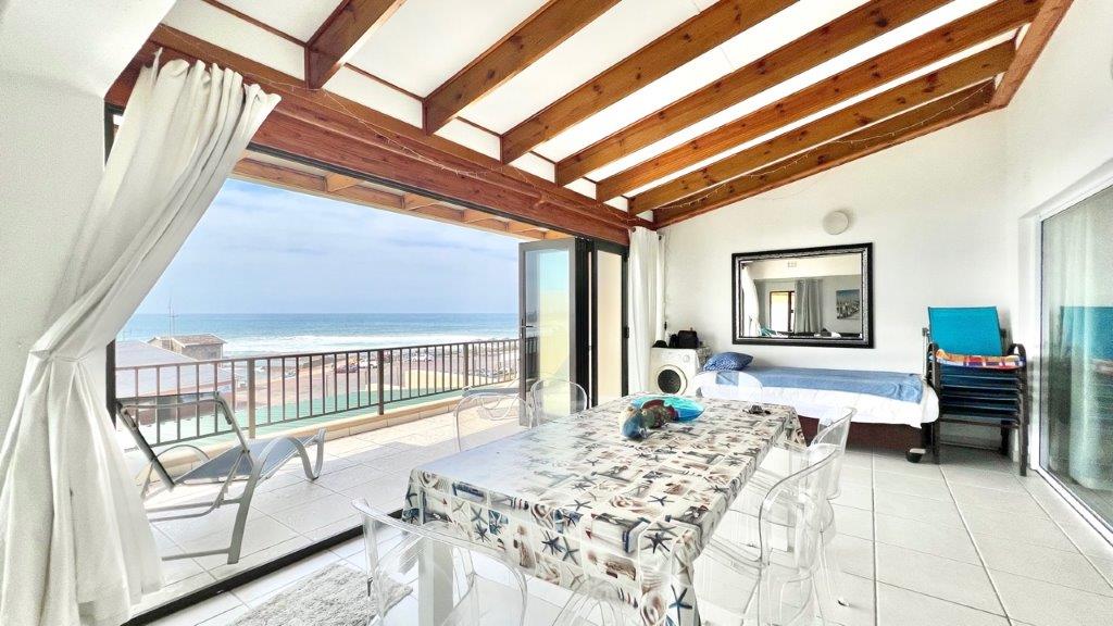 This lovely 131 square apartment with spectacular sea-views boasts an open plan kitchen with granite tops, breakfast counter and ample cupboard space, this leads into the lounge and into the dining room area which opens up onto the balcony with gorgeous sea-views, there you can also enjoy the free entertainment of watching all the action on Shelly Beach.