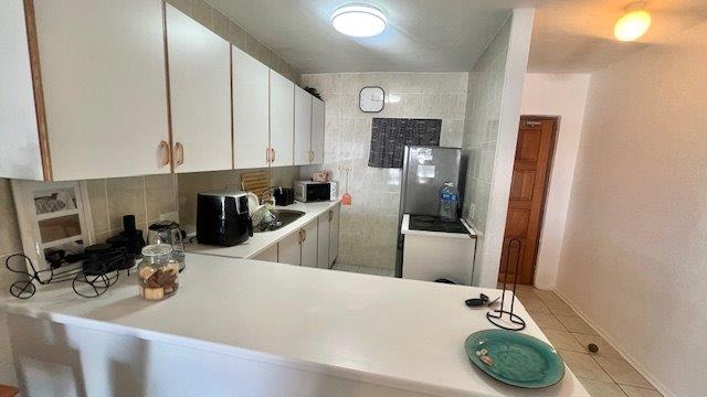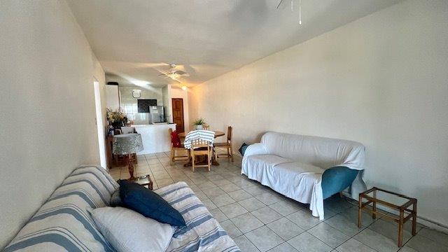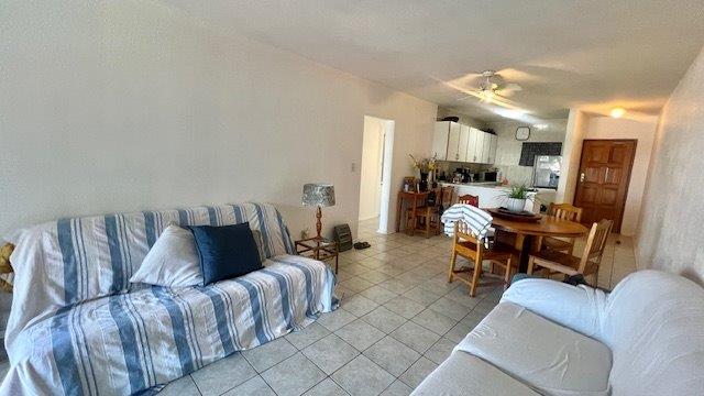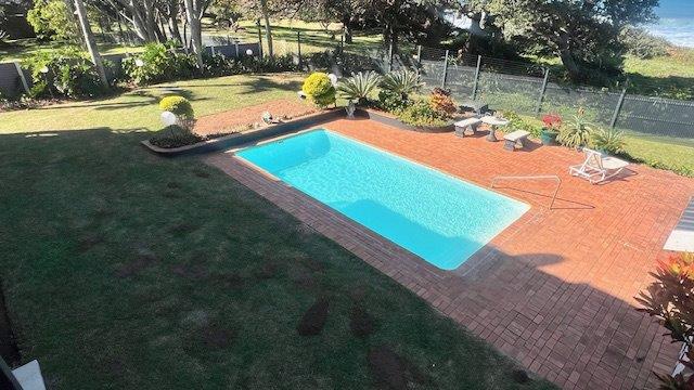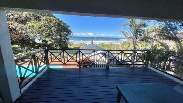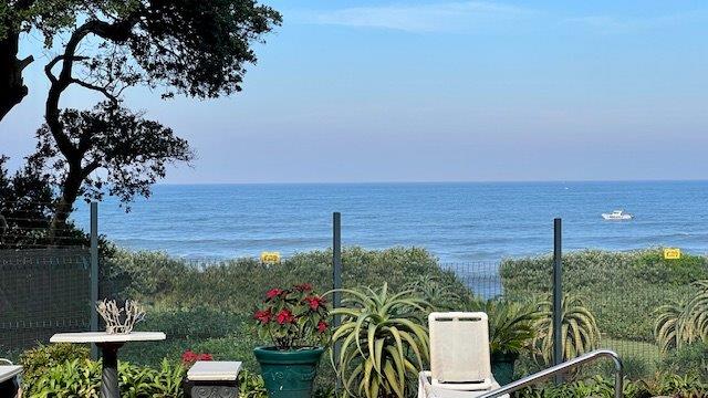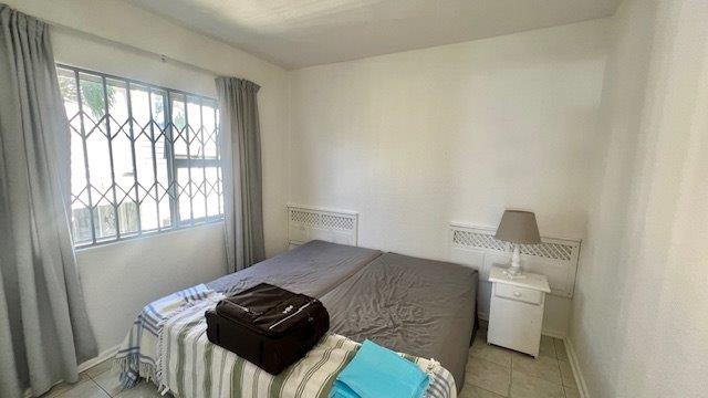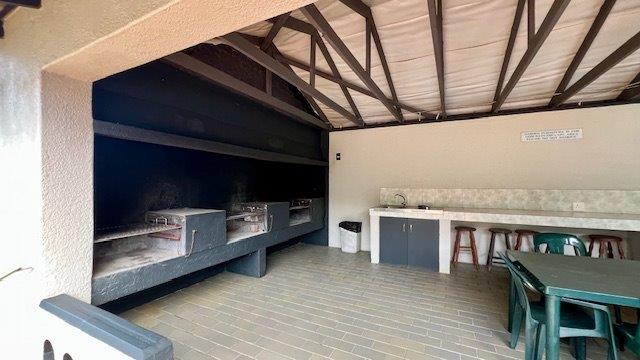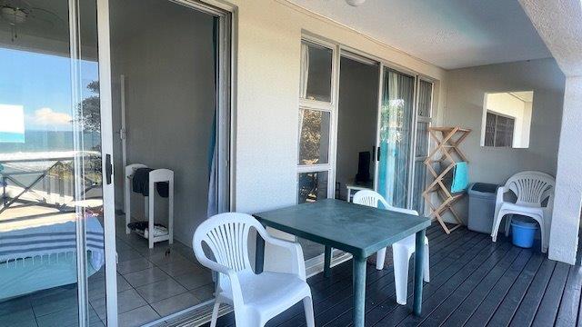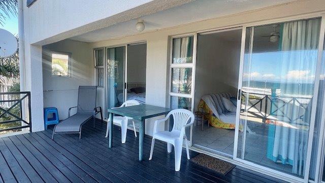 The open-plan layout connects the kitchen, lounge, and dining area seamlessly, spilling out onto a covered patio—ideal for sundowners, braais, or simply soaking in the sea breeze. The complex offers direct access to a communal braai spot, a sparkling pool, and the beach just a few steps away.