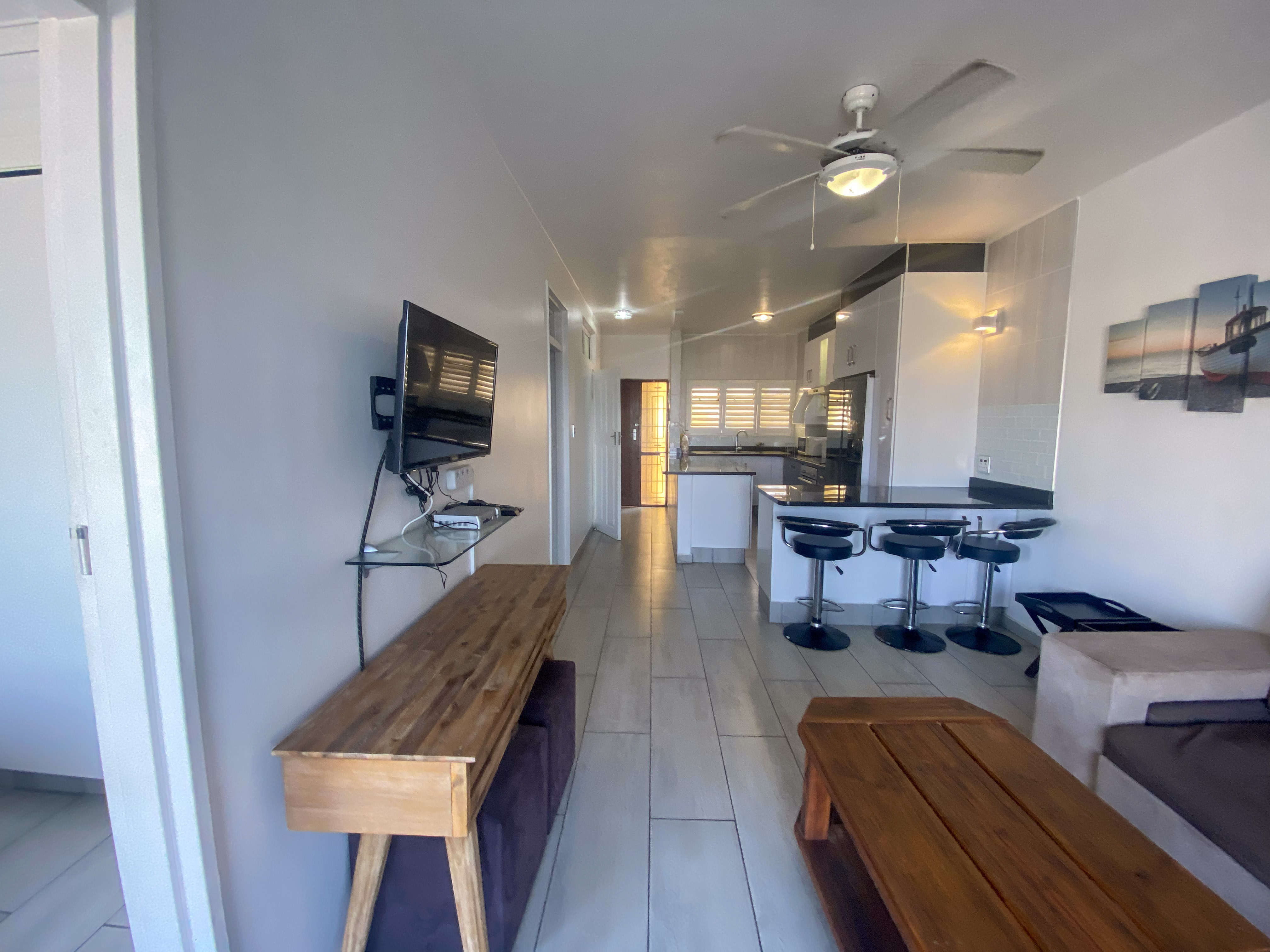 This beautifully renovated, move-in-ready apartment offers the ultimate seaside lifestyle. Perfectly positioned on the pristine Blue Flag beach of St Michaels on Sea — one of the South Coast’s most beloved family hotspots — this home delivers a rare combination of style, comfort, and unbeatable location. Whether you’re dreaming of a holiday escape or seeking permanent coastal living, this apartment offers everything you could hope for and more. Property Features 2 Elegant Bedrooms Fitted with modern mirrored sliding-door cupboards Designed to maximise space, light, and comfort 2 Stylish Bathrooms Main en-suite: luxurious corner bath, walk-in “magazine-style” shower, and double vanity Guest bathroom: sleek, modern design with a spacious walk-in shower Gourmet Open-Plan Kitchen Beautiful granite countertops Breakfast nook ideal for casual dining Fully fitted with quality finishes and all the extras needed for easy living Light & Airy Lounge Seamless flow onto the private balcony Perfect for entertaining or relaxing with a view Private Balcony with Gas Braai Designed for effortless outdoor living Enjoy sunset braais, coastal breezes, and unforgettable seaside evenings Panoramic Indian Ocean Views Watch dolphins play and admire breathtaking sunrises from the comfort of your home Complex & Location Benefits Direct Beach Access — step from your apartment onto soft sand and into the warm tidal pool Secure Living — gated complex with controlled code access and an excellent safety reputation Back-Up Water Tanks — ensuring reliable water supply year-round 1 Covered Parking Bay for convenience and protection Why Clover Bay? Situated in a sought-after, meticulously maintained beachfront complex Immediate access to St Michaels beach, tidal pool, lagoon, and popular surf spot Walking distance to restaurants, cafés, and local conveniences Minutes from South Coast Mall, Shelly Beach Ski-Boat Club, diving hotspots, and excellent fishing waters A prime lock-up-and-go investment with high holiday-let demand Your slice of paradise awaits. Whether you want an exceptional investment, a coastal holiday home, or a permanent beachfront lifestyle, Clover Bay ticks every box. Don’t miss this opportunity — call today to view this beachfront gem!