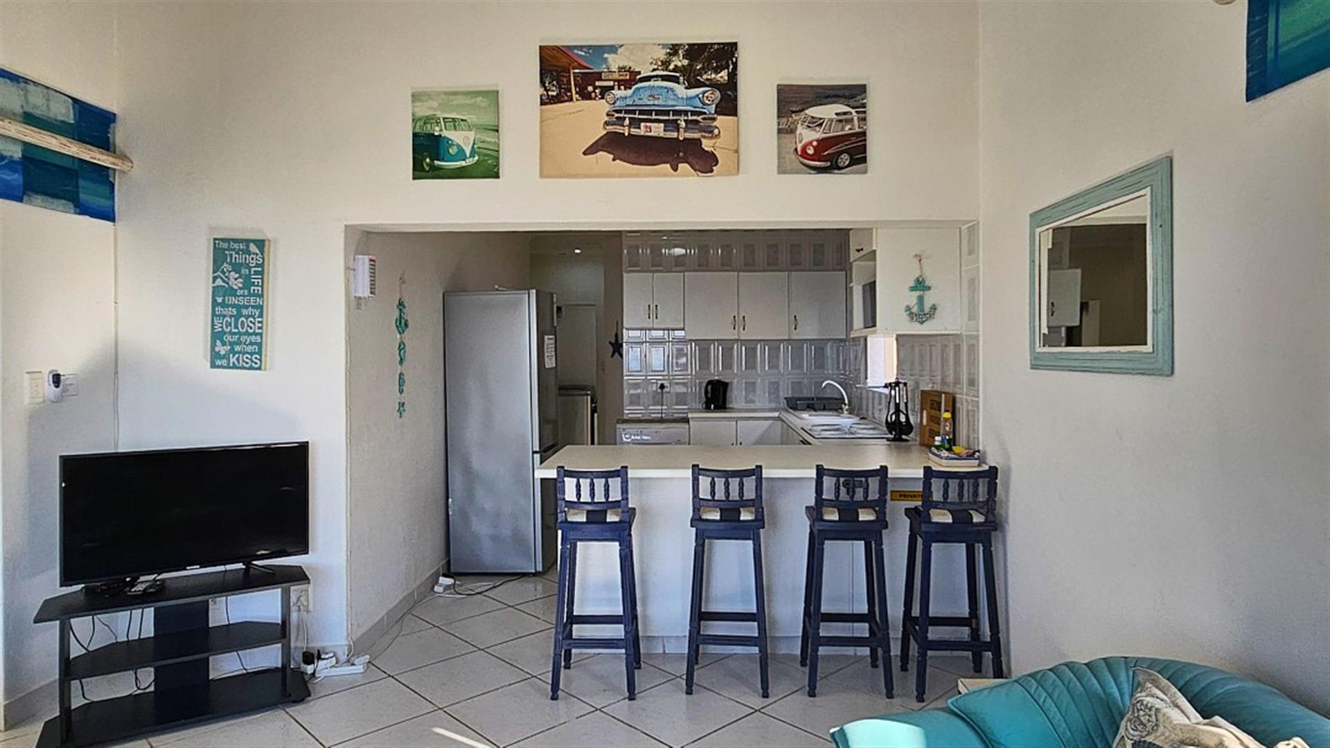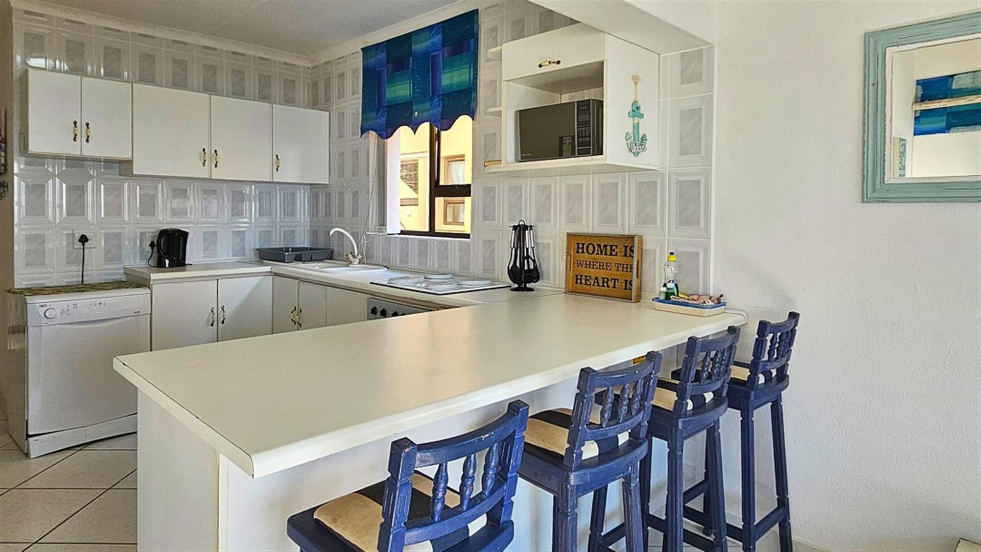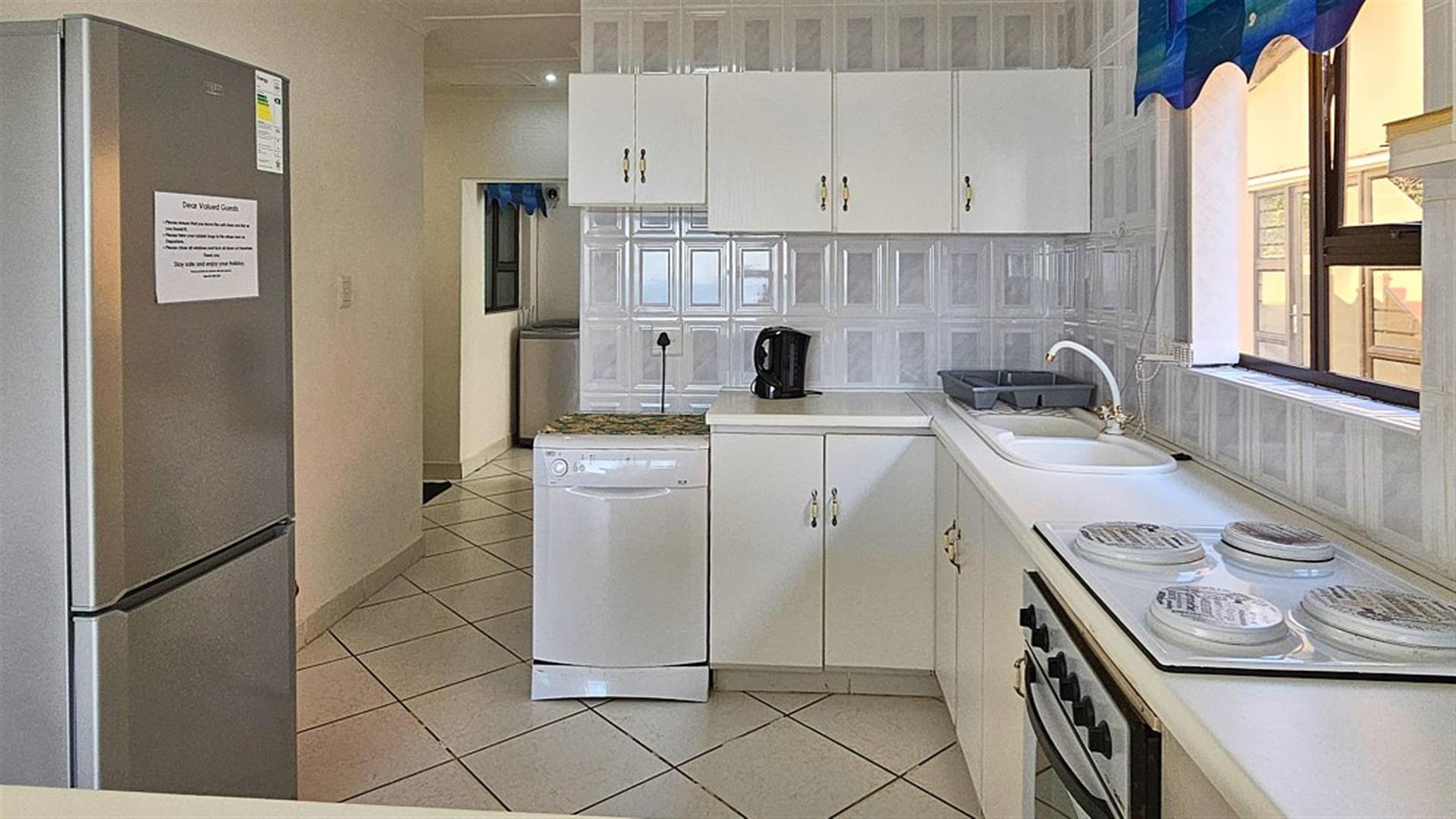 The 2 bedrooms are spacious with the main bedroom en-suite to a full bathroom. the second bedroom makes use of the second bathroom with a bath. This is THE PERFECT LOCK-UP AND GO!! There is a washing machine and a dryer for getting those outfits clean and dry for the next fishing session. Whether you are a fisherman or a beach baby, everything is sooo close to the complex. A short walk to the Shelly Beach Mall, overlooking the ocean. Once here, you actually don`t need to drive again until you leave for home. Park your car, and most of the amenities are close by. The complex is beautifully maintained and secure. There is even secure parking for your boat near the entrance inside the complex. There is a large, sparkling blue communal pool with braai areas, from where you can still be enchanted by overwhelming views of the ocean and it`s magnificence. The apartment comes with one undercover parking. There are parking available for visitors. There is a more private braai area close to your apartment. All the furnitute and appliances are negotiable. THE ULTIMATE BEACH BARGAIN!! GIVE ME A CALL.....