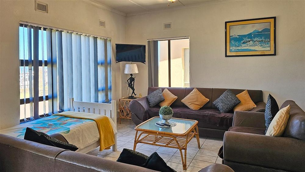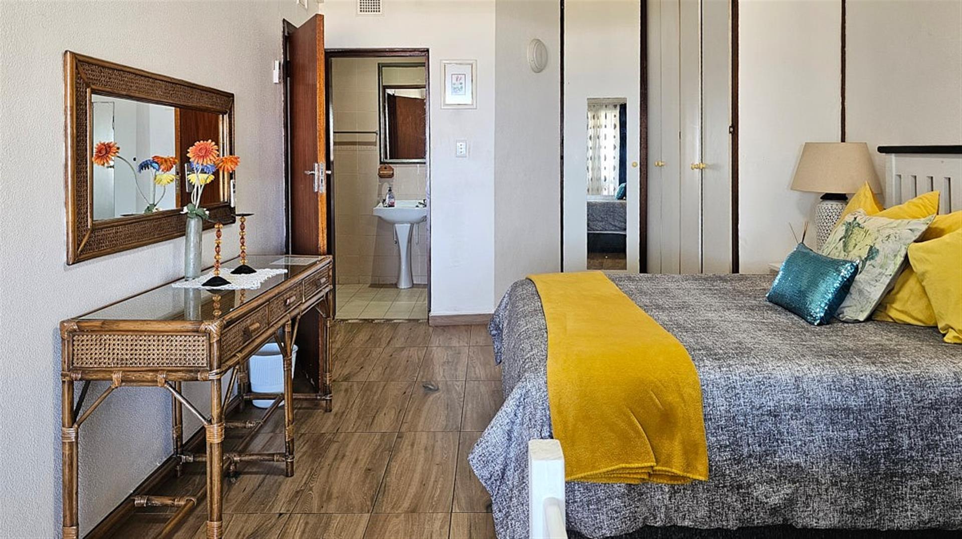You can enter the apartment from a side door, into the entrance hall, that serves well as a separate laundry, as you would normally be entering from the front sliding doors. It makes more sense, as you will be parking on the same level. The apartment is one of the few in the complex that is wheelchair friendly... big bonus! The apartment is being sold fully furnished.. move in READY! The two welcoming bedrooms are also spacious, with the main bedroom en-suite to a full bathroom. The bedrooms both have air-conditioning and laminated floors, while the rest of the apartment is tiled. The second bathroom has a bath and both bathrooms are tiled from floor to ceiling. The complex has an attractive, communal swimming pool that has amazing sea views that you can enjoy whilst having a braai.. .The complex is fully fenced (palisade)/ walled and the apartment comes with one undercover parking. Plenty parking parking for visitors. There is an area to the right of the top gate where boats can be parked. A short walk to the Shelly Beach Mall, overlooking the ocean. Once here, you actually don`t need to drive again until you leave for home. Park your car, and most of the amenities are close by. LIVE THE OCEAN... give me a call!!