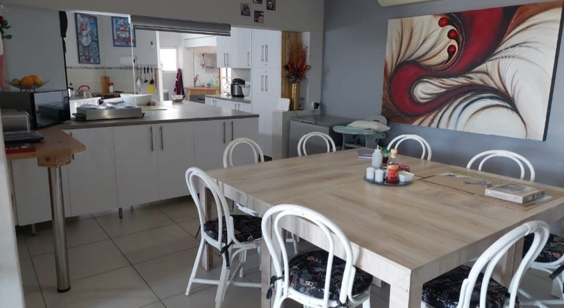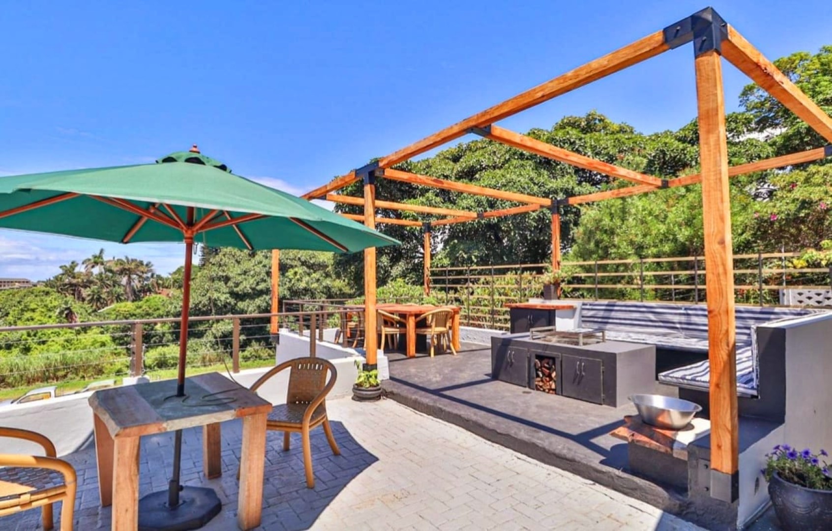 The second level consists of the spacious reception area and 7 modern bedrooms all with en-suite bathrooms. There is also a very modern kitchen and dining area, as well as the large deck with sitting areas and built in braai. A great place for entertaining and taking in the amazing sea views.