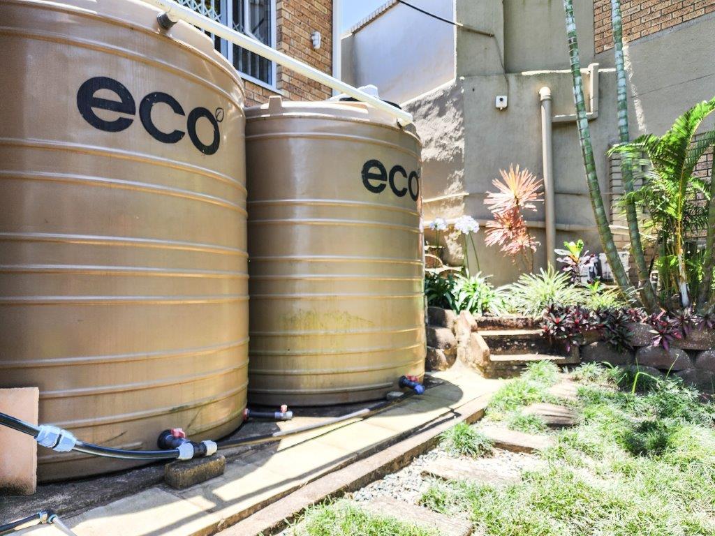 The swimming pool area is private and secured from the wind and also has an enclosed braai area. The home has three Jojo tanks with water filters as well as a full solar system.